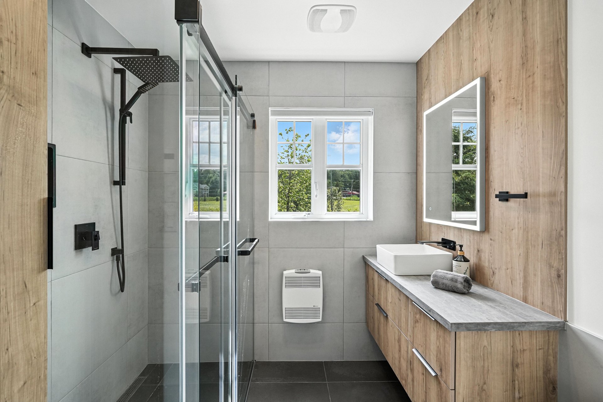 - Shower, heated floor