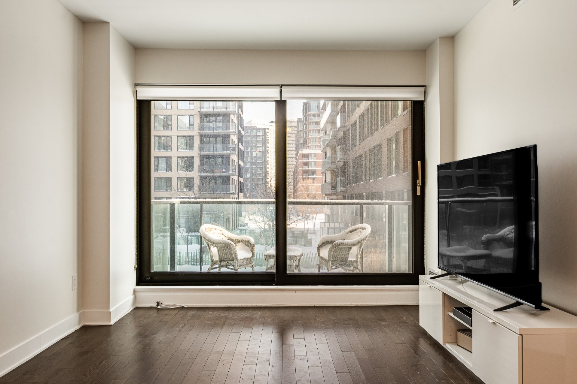 Bright and modern one-bedroom condo offering exceptional privacy, with no neighboring unit along the bedroom wall for a truly restful night's sleep. The open-concept kitchen and living area showcase clean, contemporary finishes and a seamless flow for everyday living. Enjoy the convenience of side-door access, allowing you to bypass the elevator for quick outings to the canal or street. A quiet and comfortable urban retreat in a highly sought-after location.