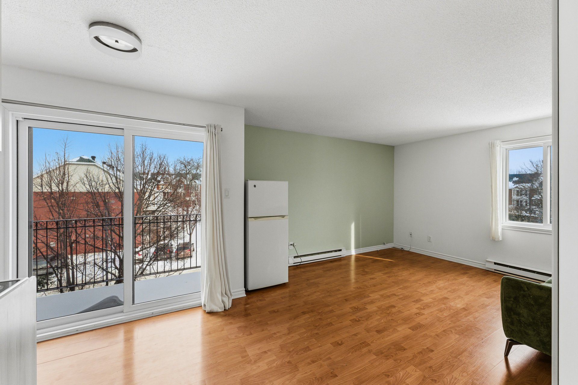 - Bright living room with patio door providing access to the balcony