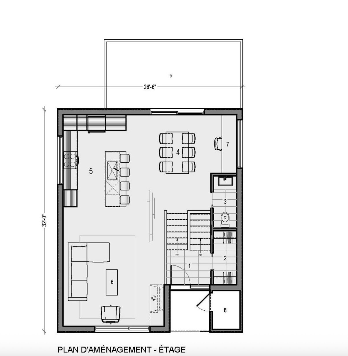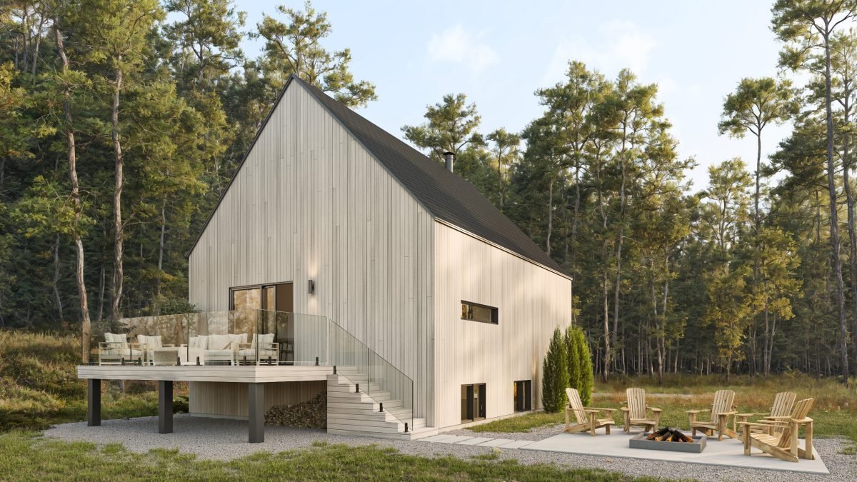 Canopée Project - Ste-Brigitte-de-Laval - explore this new Scandinavian single-storey plan by Talo! No compromise on the architectural line; the style, the windows maximizing the view of the wooded environment. Spacious open area allowing the integration of an office space. The fully finished basement offers 3 bedrooms, a bathroom, a washer-dryer area and a storage space. Plans can be customizable. Custom design also possible! All benefiting from Chabot Construction quality!