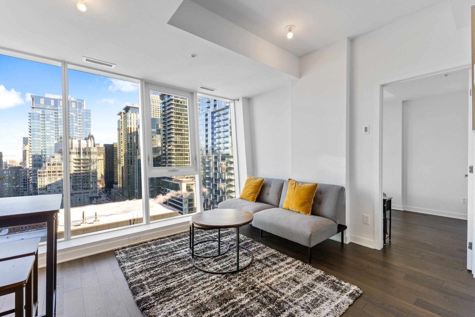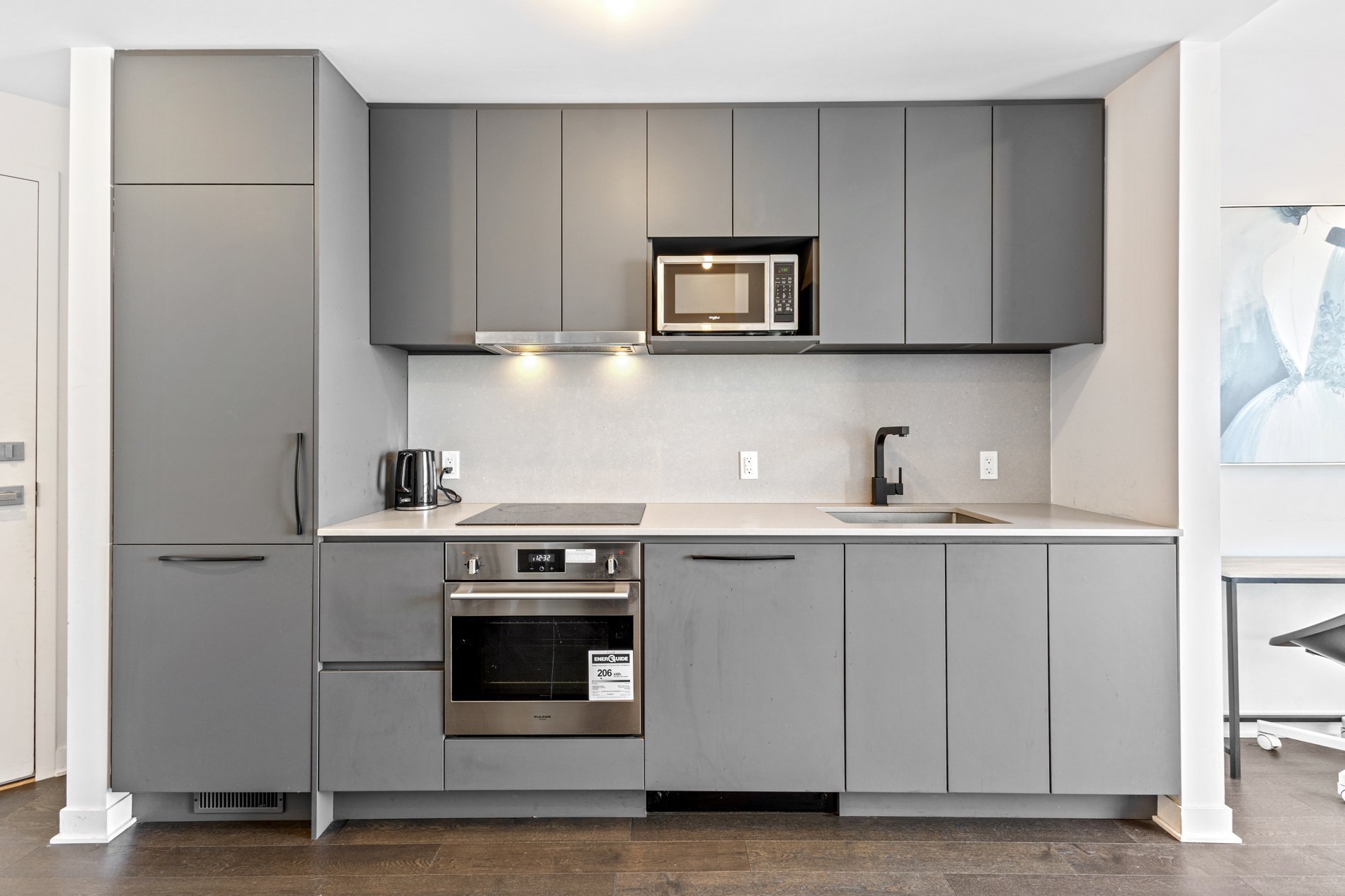Welcome to Enticy! Located ideally in the heart of Downtown Montreal. This 1 bedroom unit features an open concept living/dining/kitchen ideal for entertaining. In close proximity to public transportation, restaurants, cafes, boutiques, McGill and Concordia University. Parking and Lockers available with additional monthly fee. Enjoy the common amenities including the rooftop terrace with BBQs and exceptional views, lounge area, outdoor heated swimming pool, and exercise room.