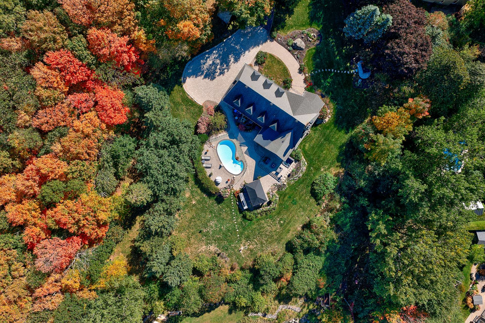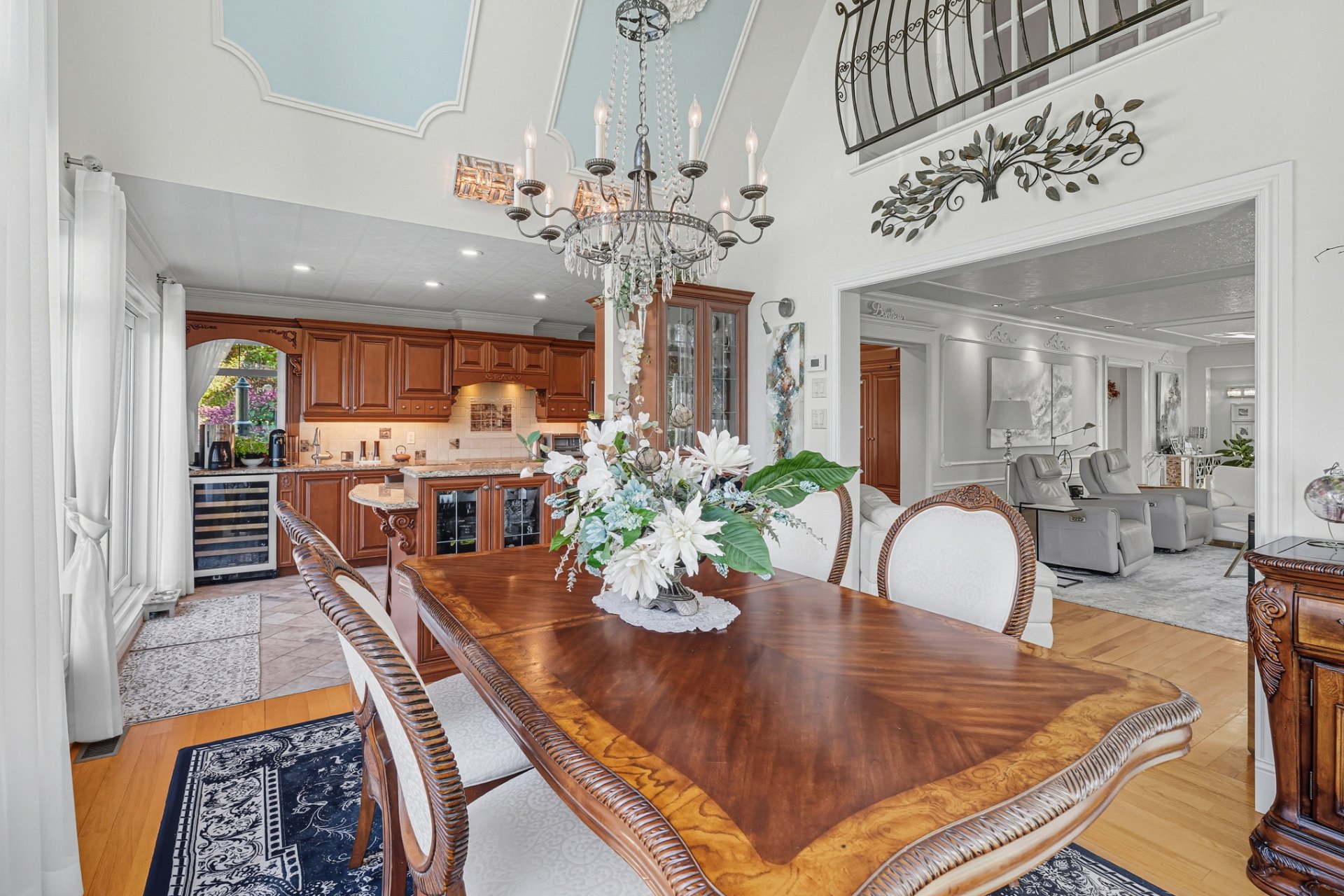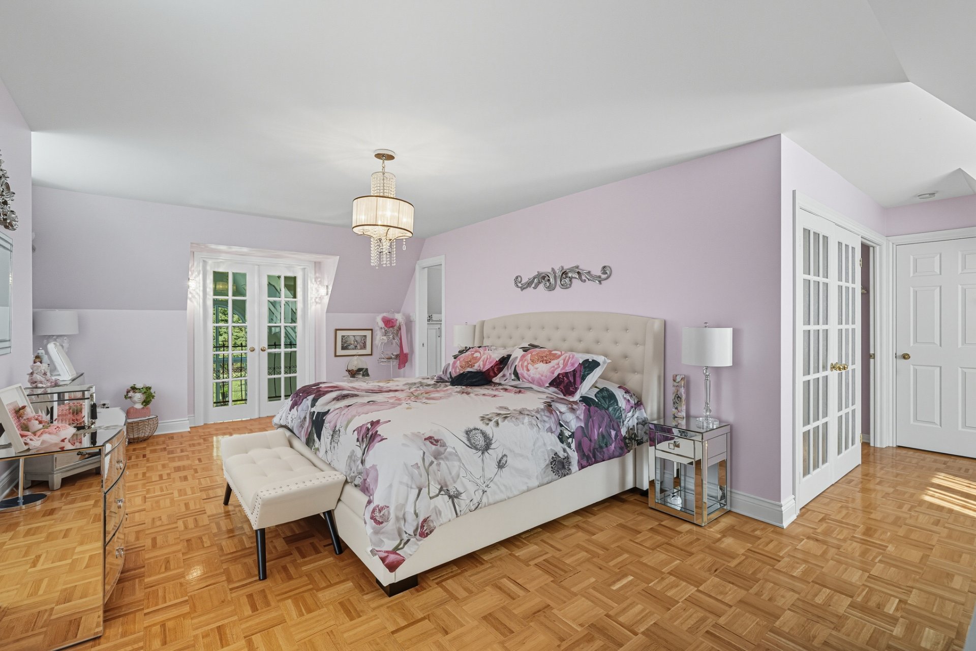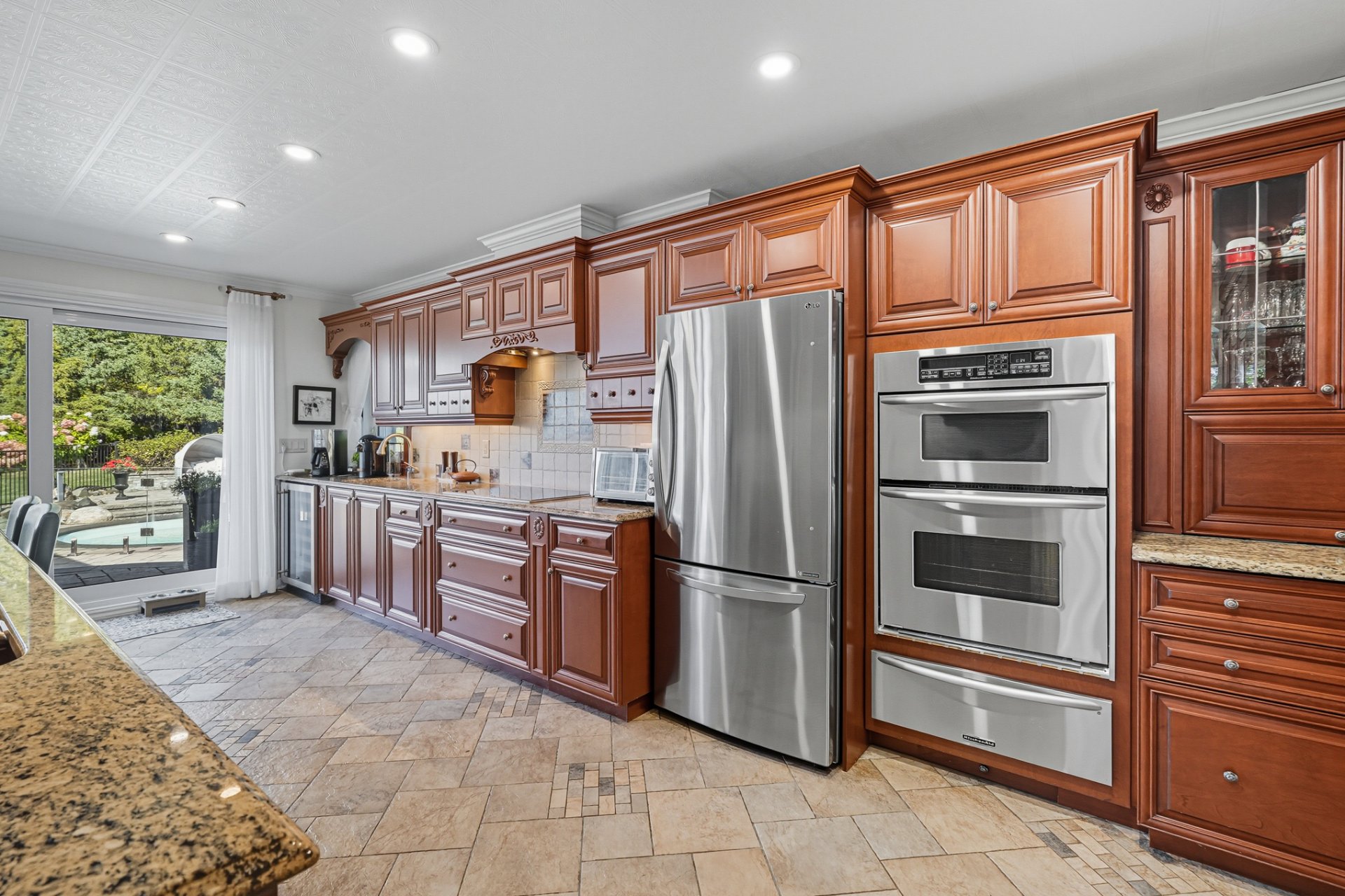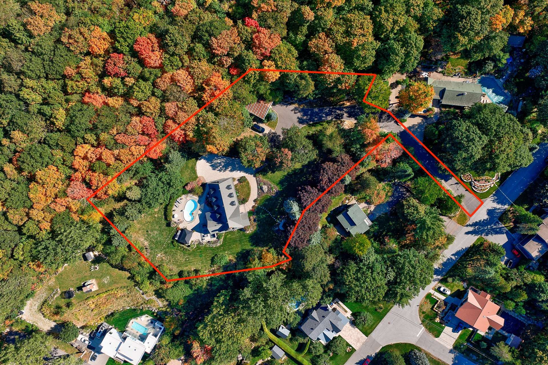 The backyard is a surefire favorite. Lined with mature trees and colorful throughout the seasons, it offers complete privacy and a breathtaking setting. The outdoor space has been designed to combine elegance and relaxation: an inviting pool, impeccable paving stones, a dining area under a gazebo for summer evenings, and several areas ideal for relaxing. In addition, there's a detached garage that can hold six cars on the ground floor, with the option of installing lifts for a possible nine-car capacity.