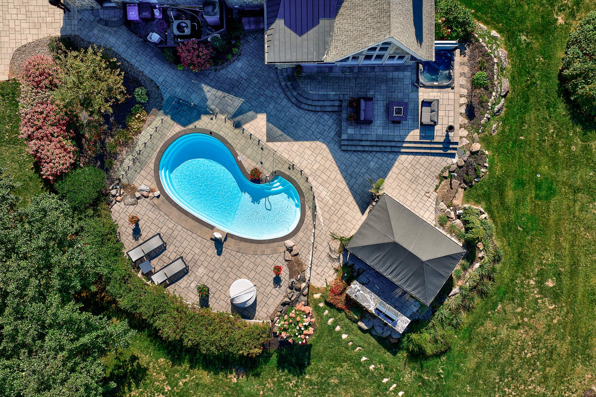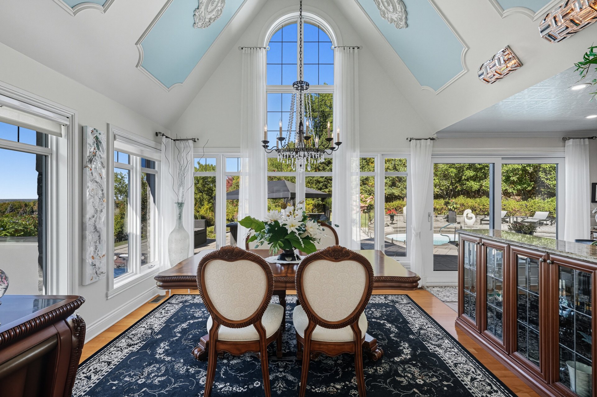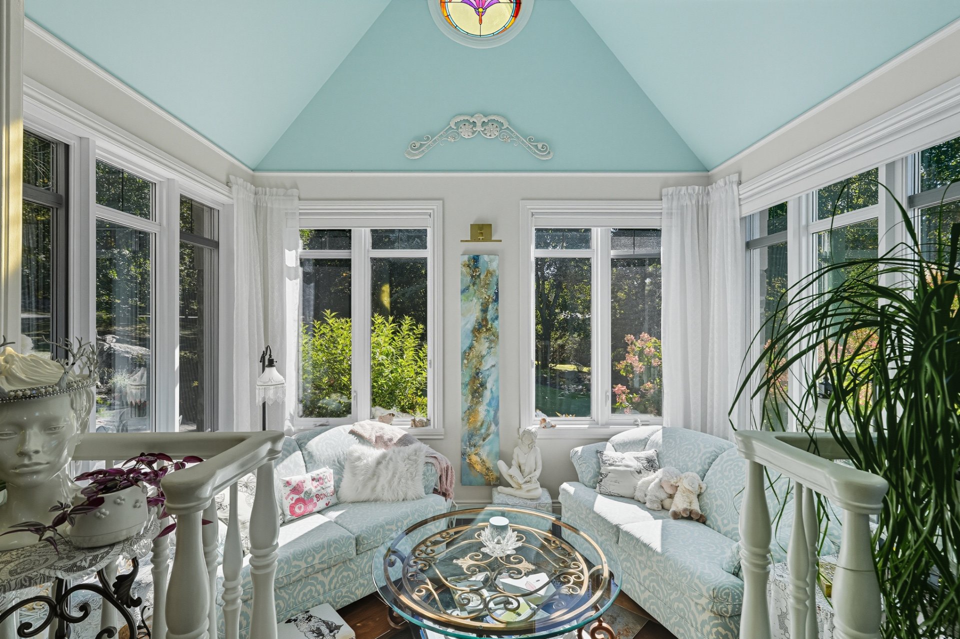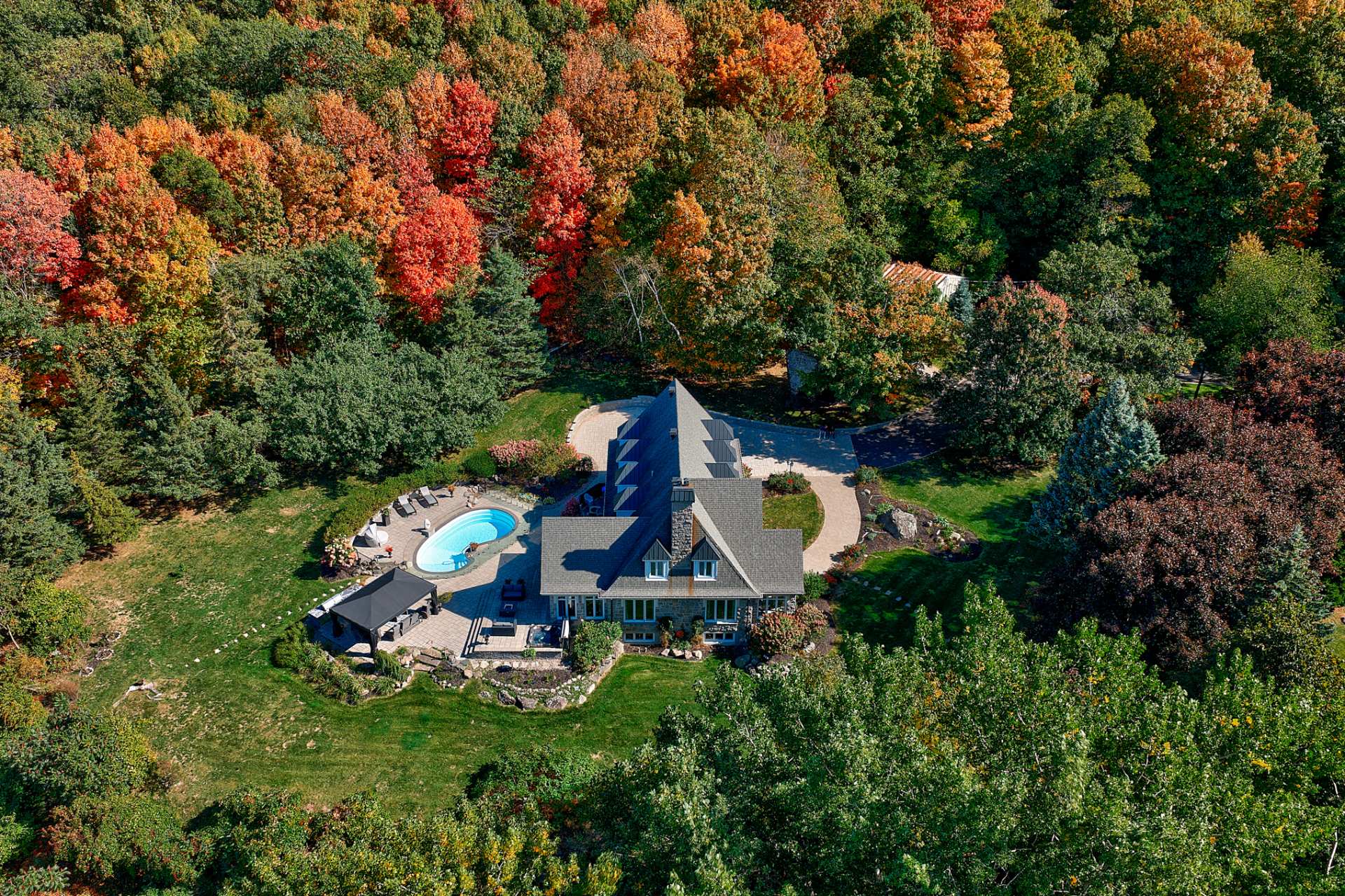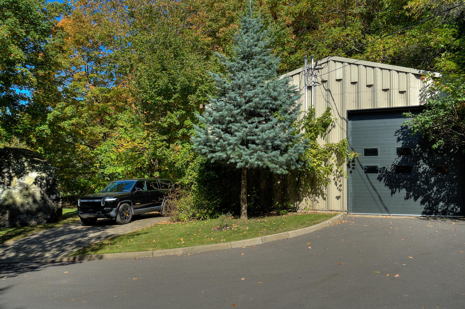 The backyard is a surefire favorite. Lined with mature trees and colorful throughout the seasons, it offers complete privacy and a breathtaking setting. The outdoor space has been designed to combine elegance and relaxation: an inviting pool, impeccable paving stones, a dining area under a gazebo for summer evenings, and several areas ideal for relaxing. In addition, there's a detached garage that can hold six cars on the ground floor, with the option of installing lifts for a possible nine-car capacity.