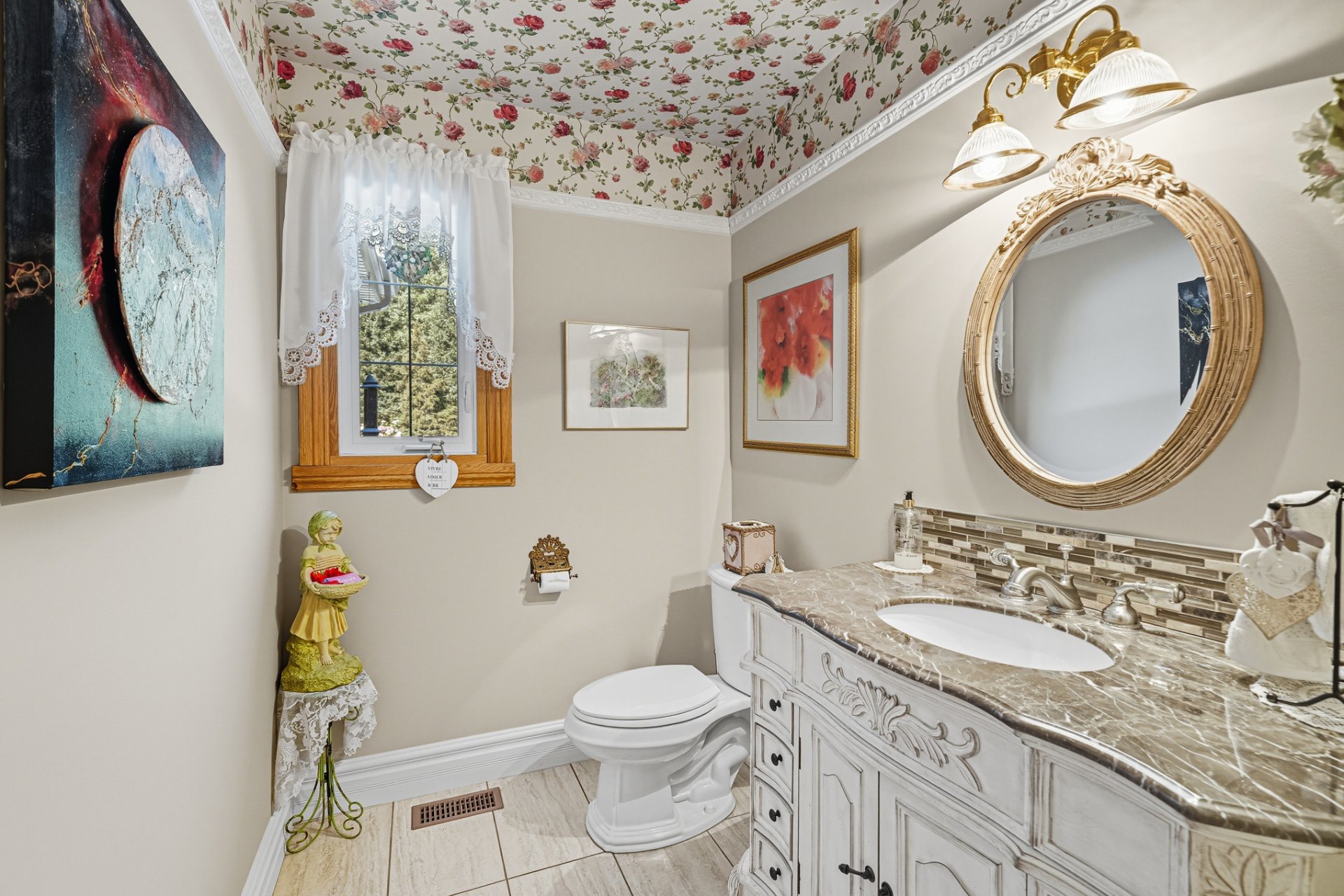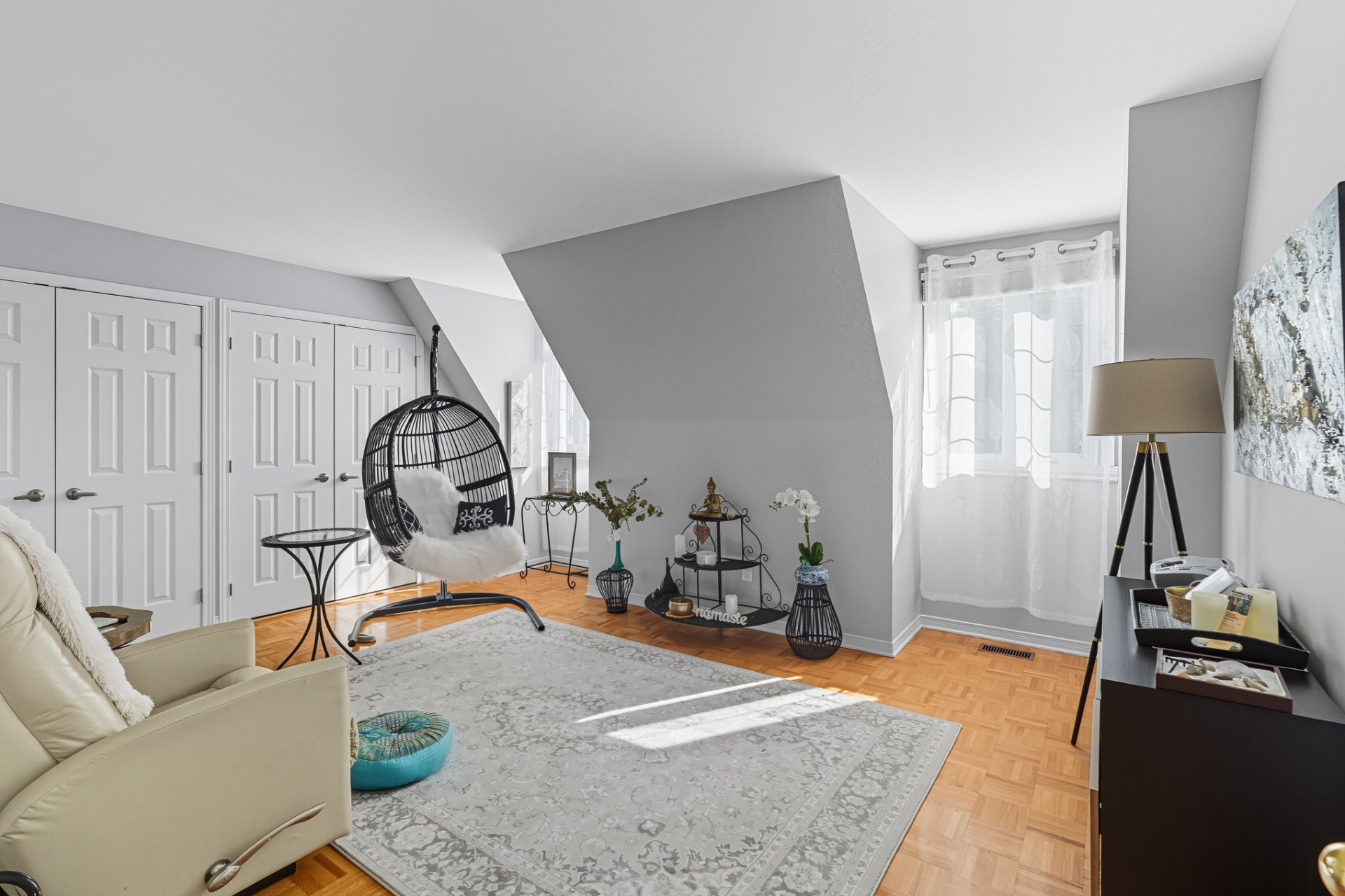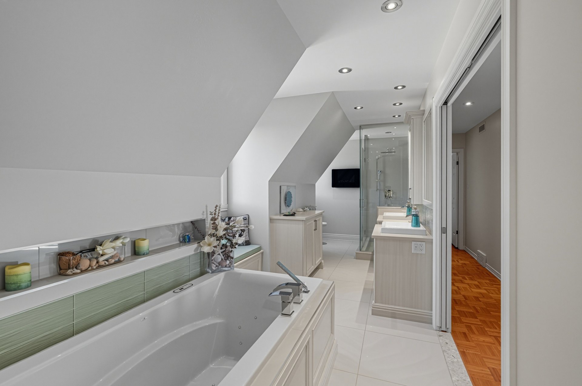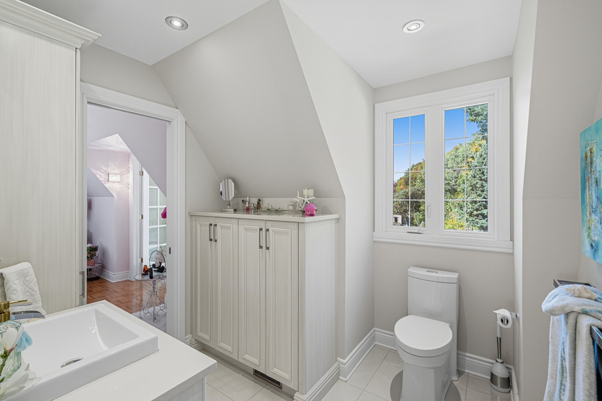 Upstairs, the master bedroom impresses with its brightness and comfort, featuring an en-suite powder room and a large bathroom with a whirlpool tub and separate shower. Two other generously sized bedrooms, one with two full closets, complete this level, perfect for families.