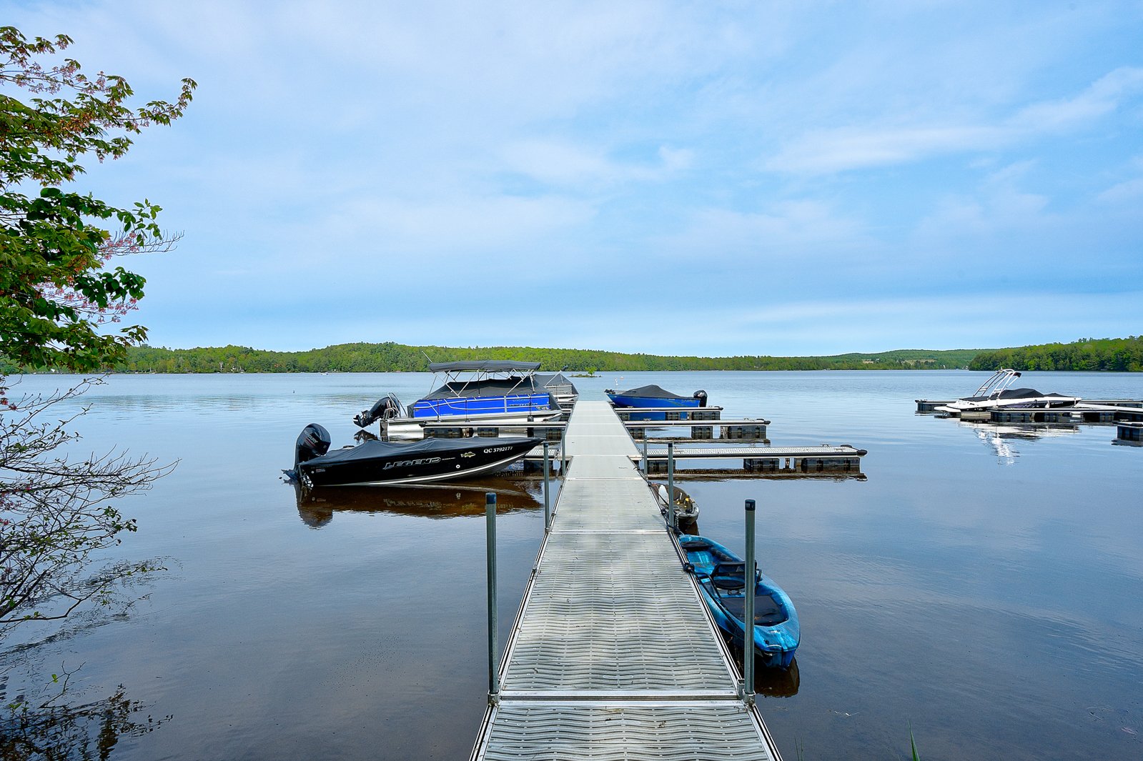 Exceptional address on Lake Lovering. This contemporary residence with refined architecture is set on a triple lot offering privileged access and a dedicated space at the marina dock, a truly rare asset. It features 10-foot ceilings on the main floor, a spectacular 22-foot-high living room, gourmet kitchen, elegant primary suite, and a 3-season veranda with a full kitchen. High-end features include heated floors, generator, and heated garage. The landscaped exterior offers a heated in-ground pool, concrete terrace, covered bar, and ample parking. A property where design, privacy, and prestige meet.