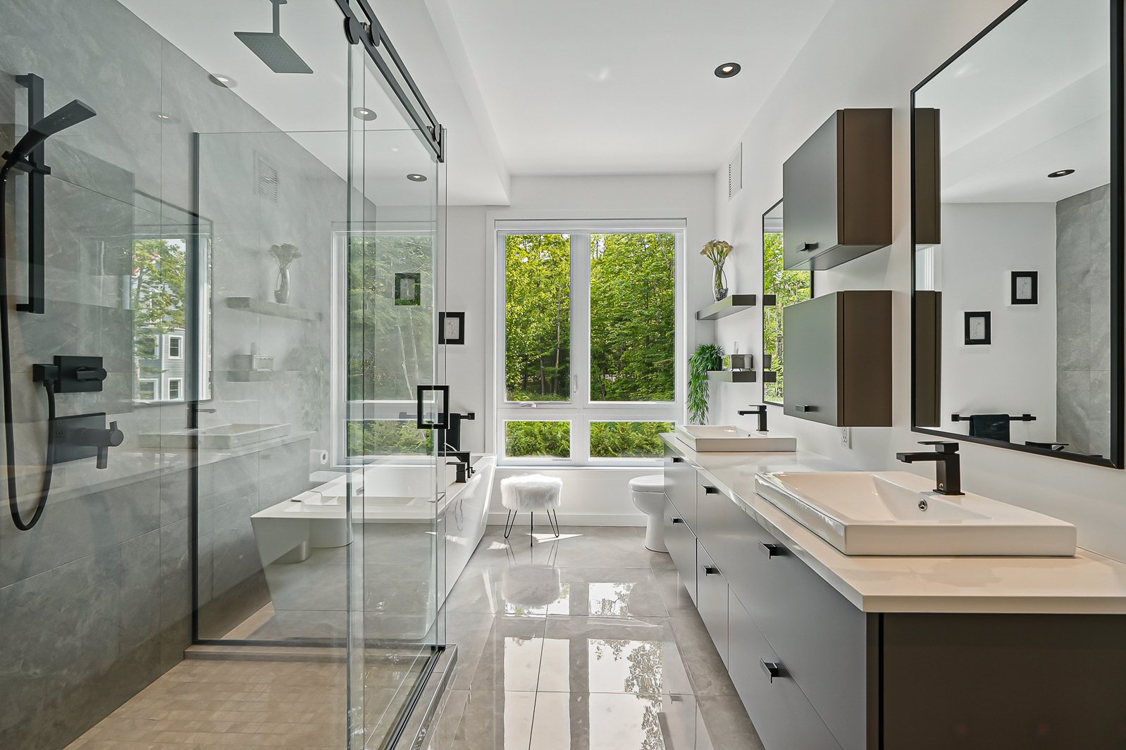 The oversized double garage (21'11" x 31'5") with heated ceramic floors completes this exceptional property, where every detail reflects a lifestyle that is modern, luxurious and deeply serene.