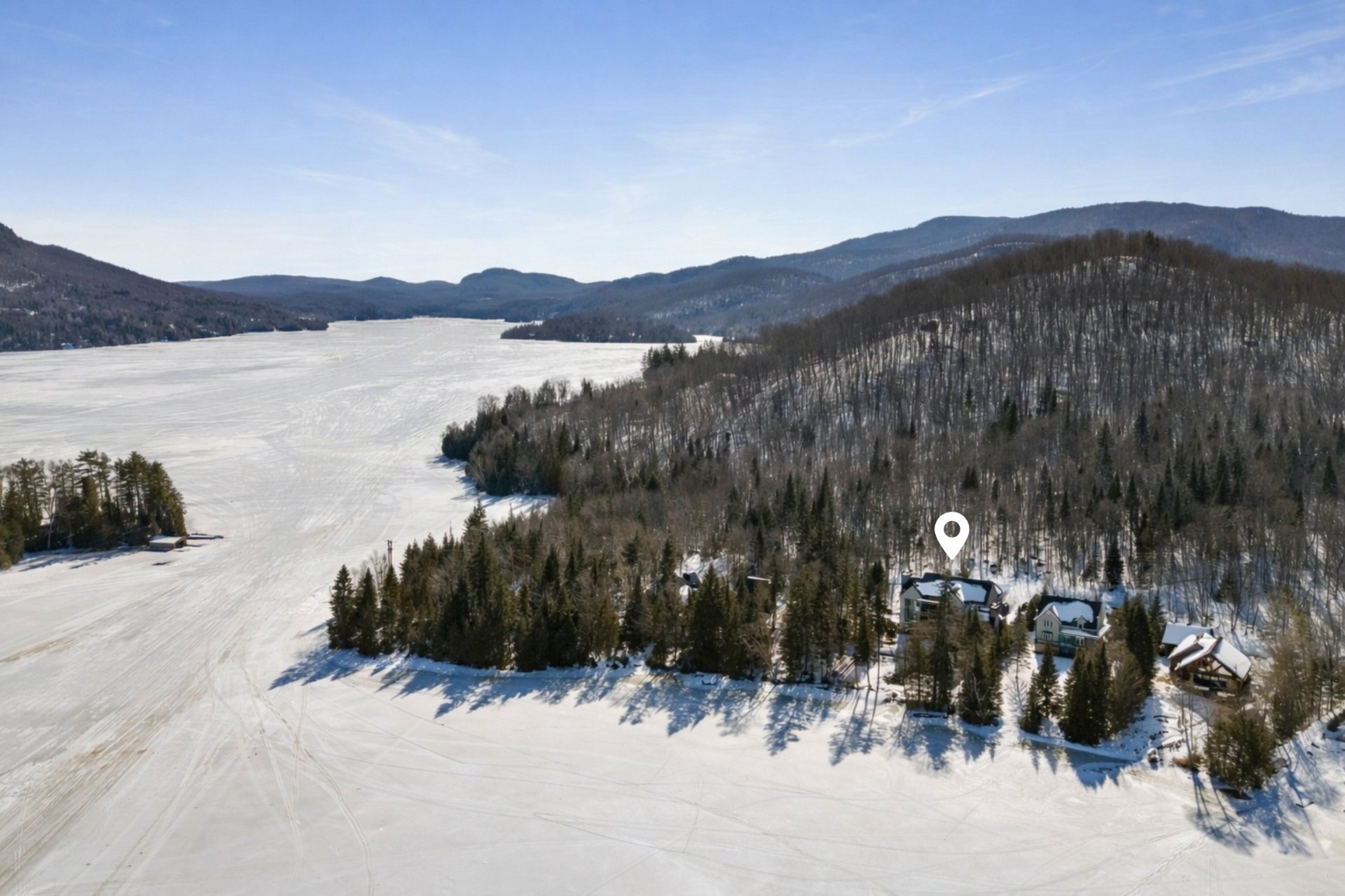Located in a peaceful bay of Lake Archambault in Saint-Donat, this exceptional property offers a spectacular natural setting where lake, mountains, and preserved nature meet, in one of the region's most sought-after areas.