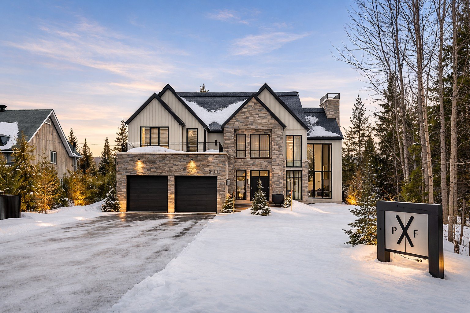 Nestled in a peaceful bay of Lake Archambault in Saint-Donat, this exceptional residence built in 2024 offers a spectacular natural setting between lake and mountains. Its timeless architecture and design highlight a living space entirely oriented toward the water, featuring cathedral ceilings, natural stone, and exposed beams. High-end kitchen with back kitchen, three-season veranda with fireplace, and terrace with outdoor kitchen. Landscaping inspired by Scandinavian spas with sauna, firepit, and dock with boat lift. Triple garage with heated epoxy flooring.