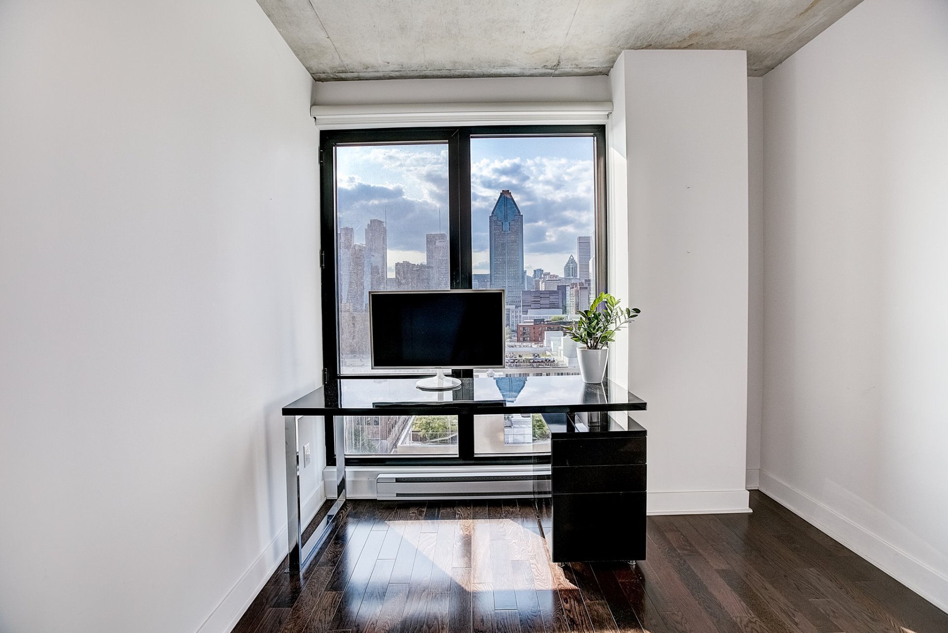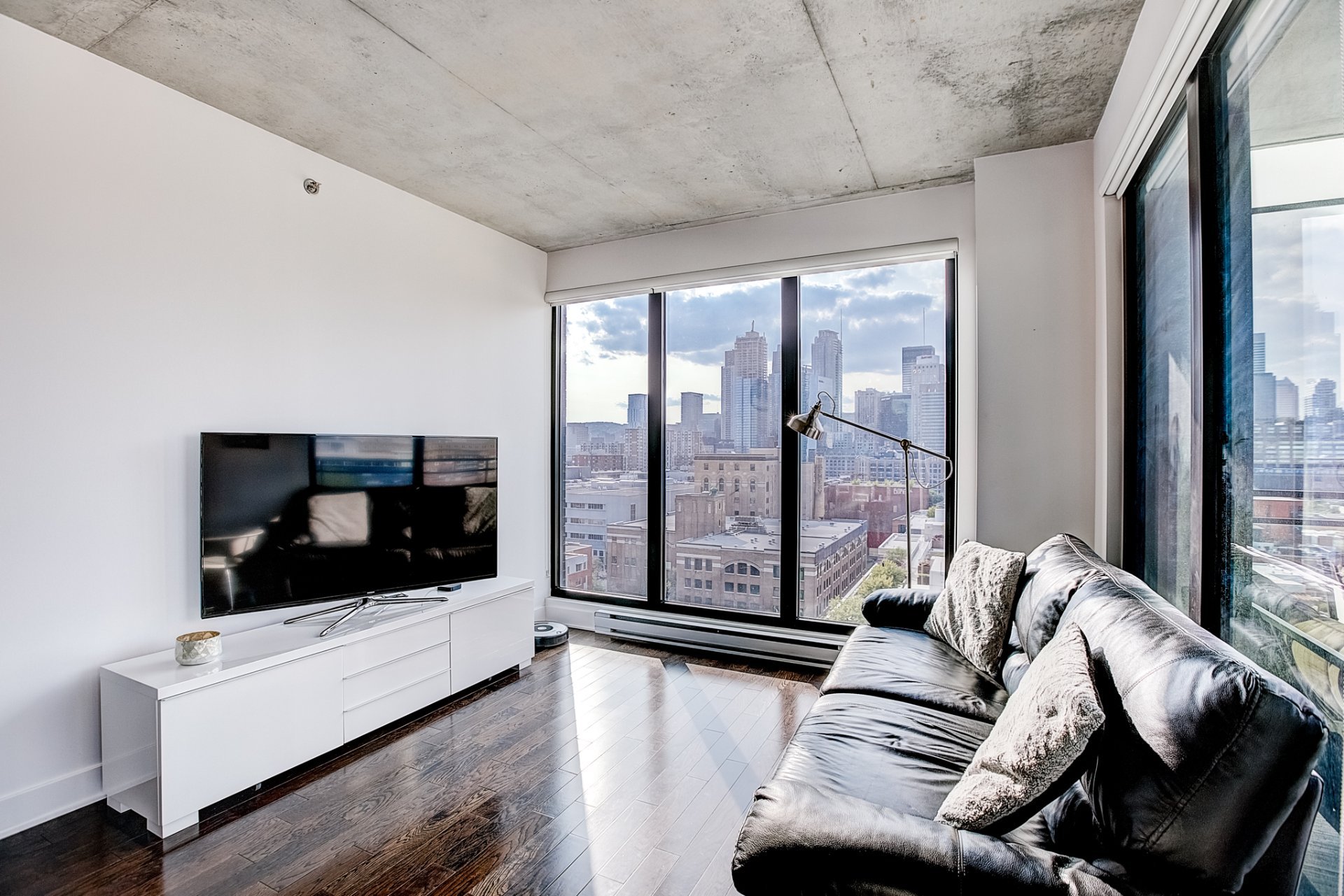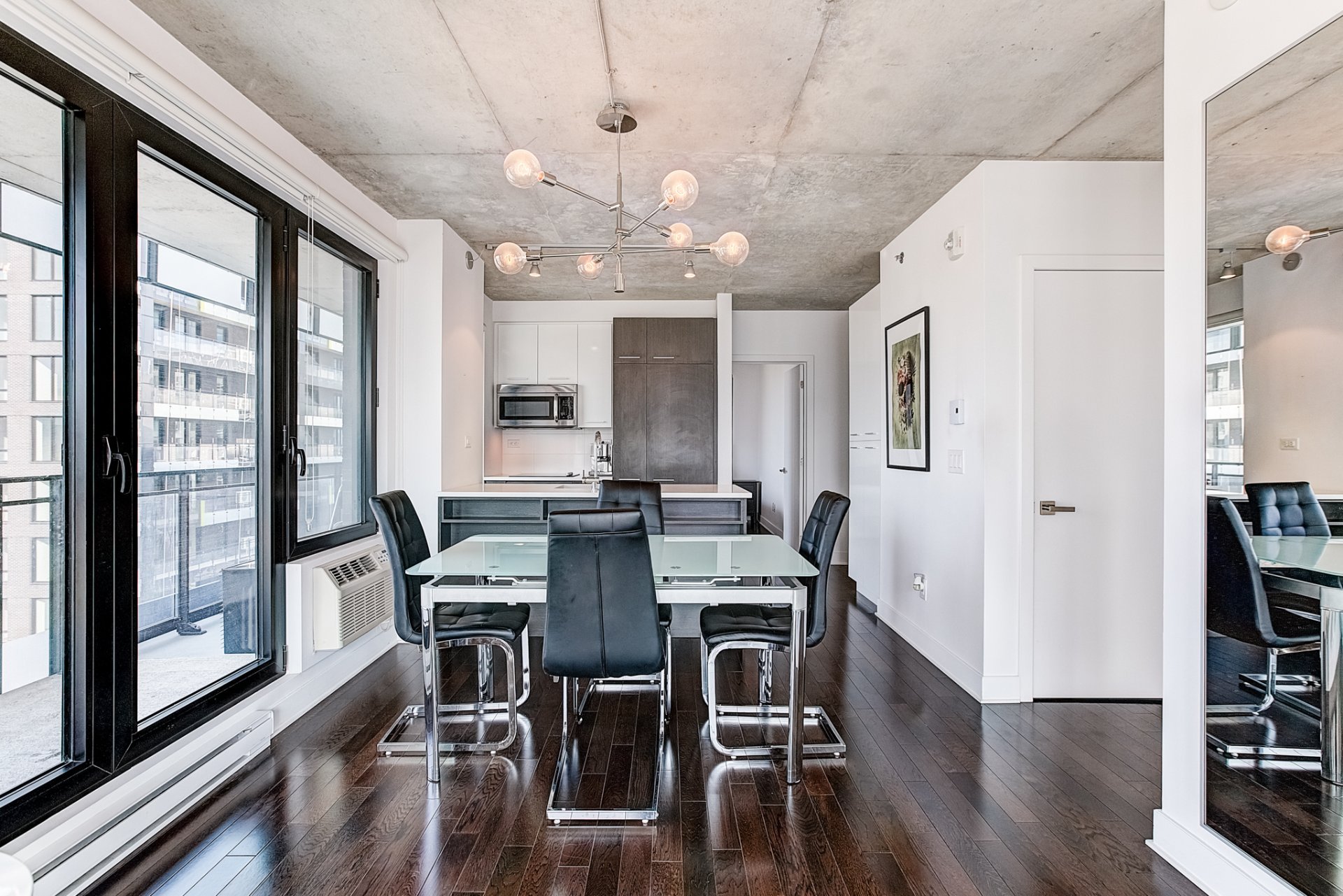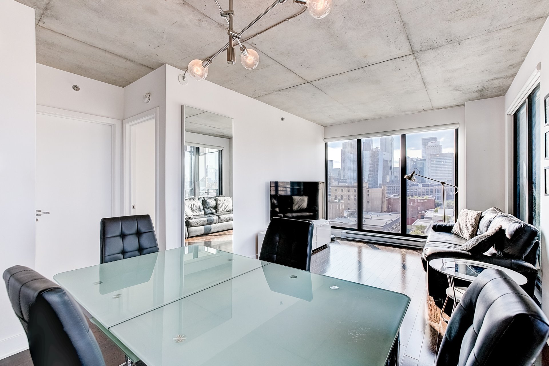 FURNISHED - Beautiful open concept condo located on the 16th floor offering breath taking view of Downtown Montreal. Two toned kitchen with quartz counter tops flows effortlessly to the living/dining room with a direct access to the large balcony. Floor to ceiling windows allow for an abundance of natural light to bathe the entire space.