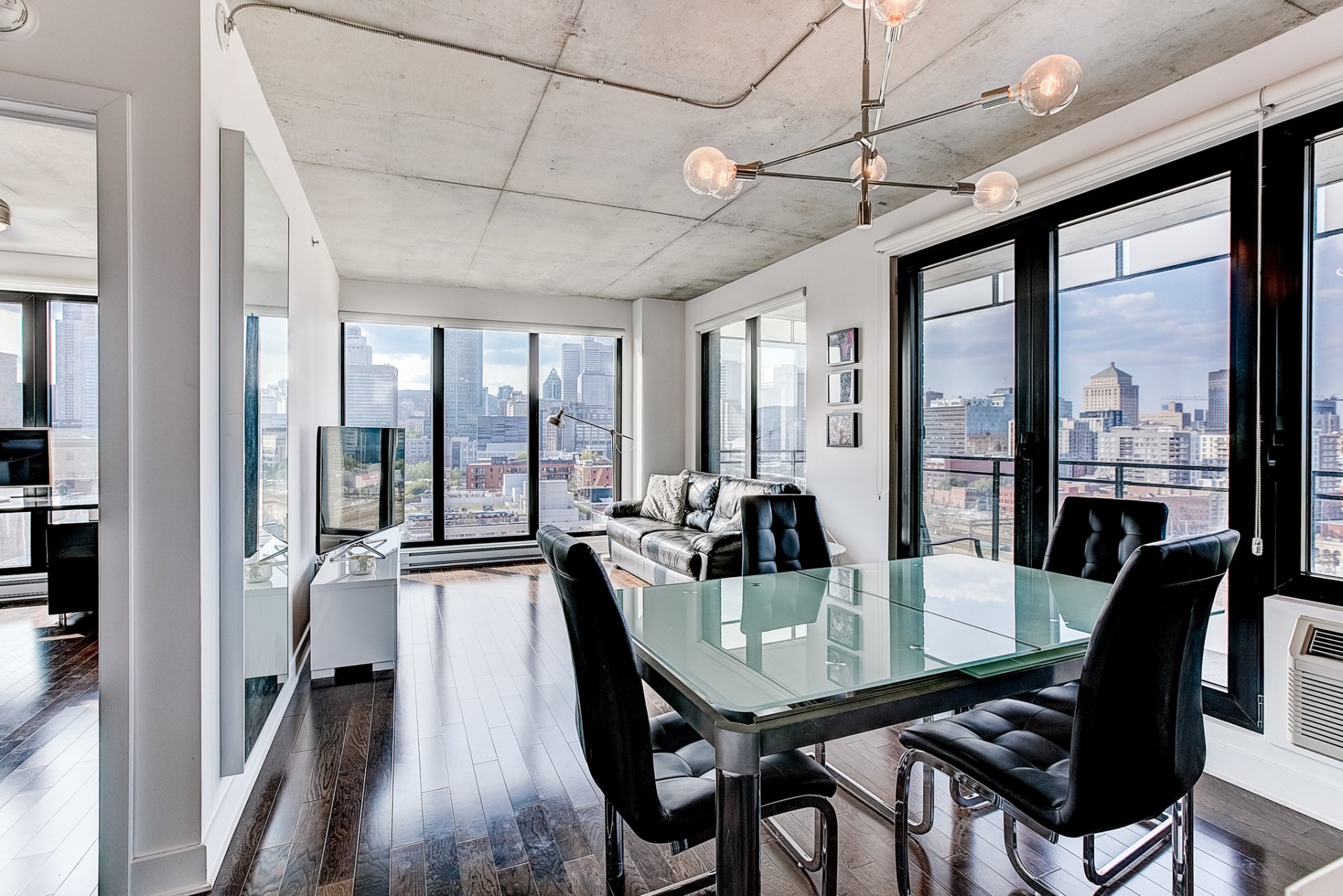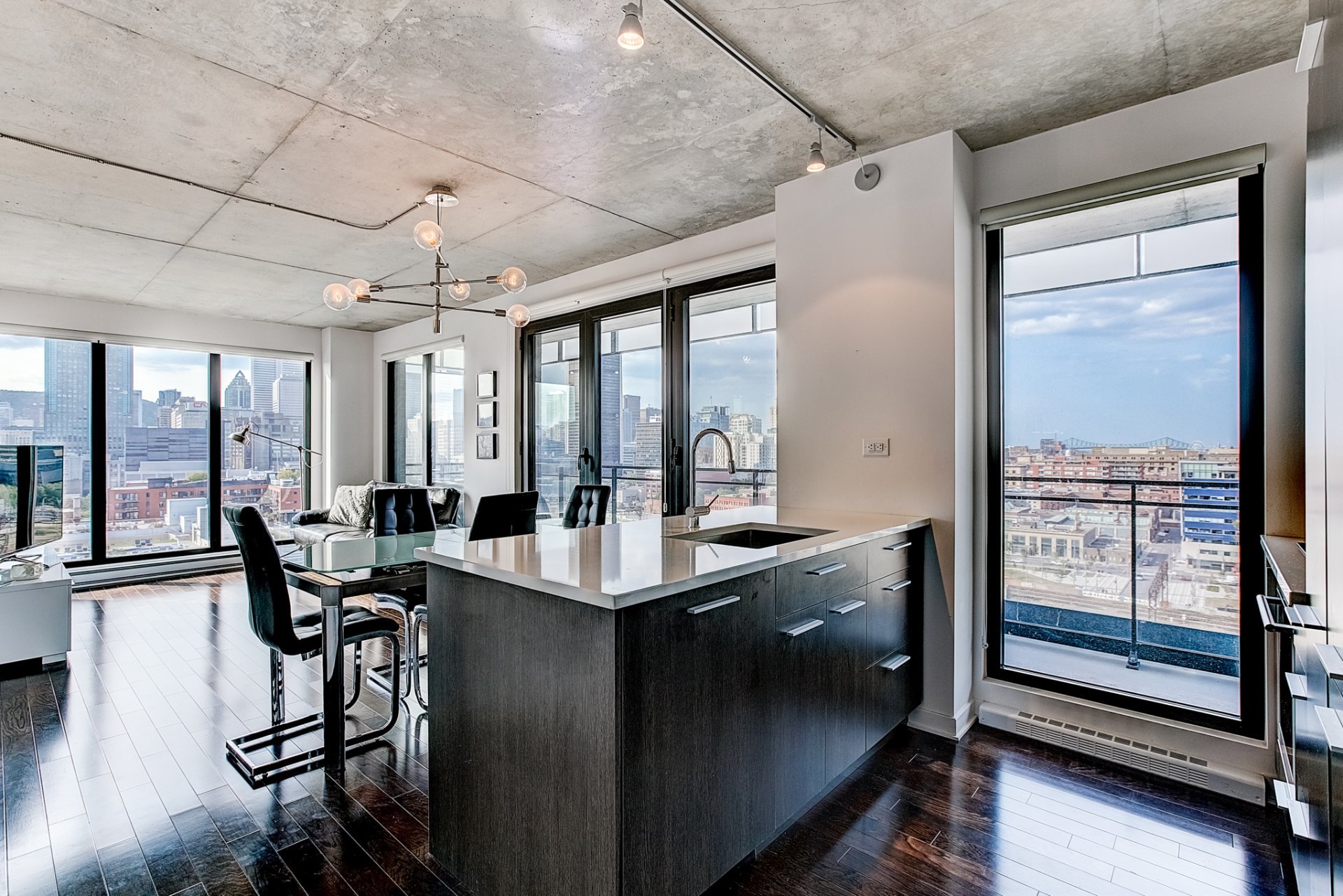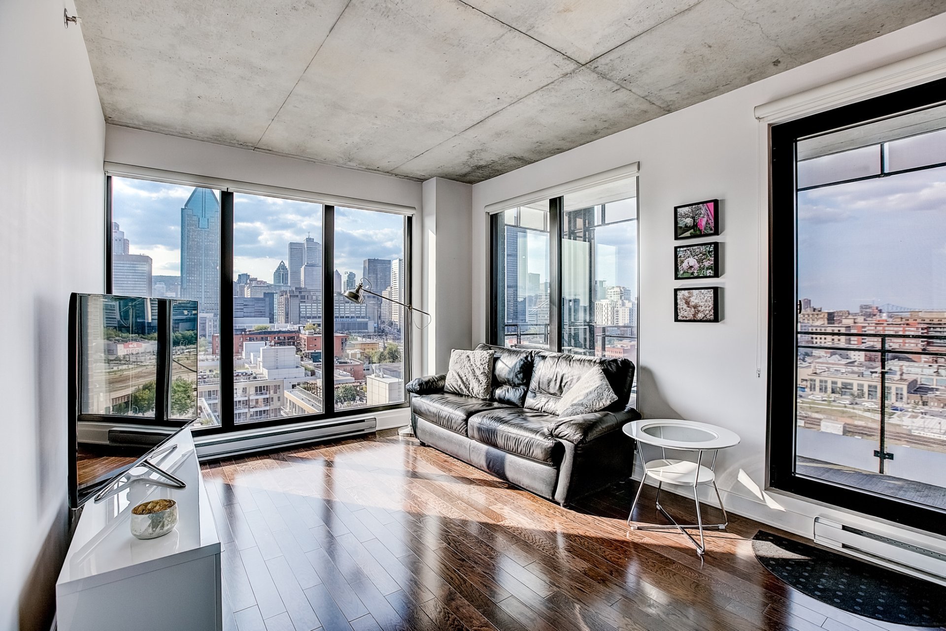 FURNISHED - Beautiful open concept condo located on the 16th floor offering breath taking view of Downtown Montreal. Two toned kitchen with quartz counter tops flows effortlessly to the living/dining room with a direct access to the large balcony. Floor to ceiling windows allow for an abundance of natural light to bathe the entire space.
