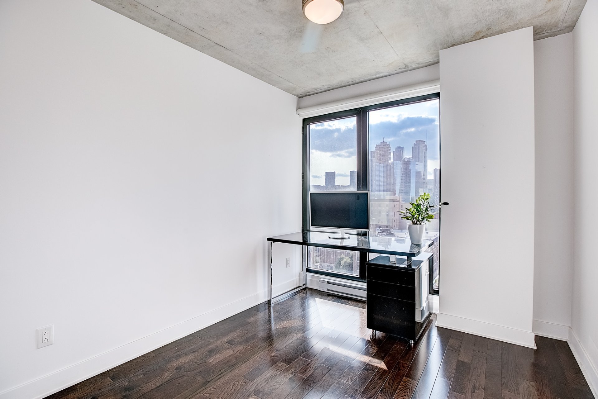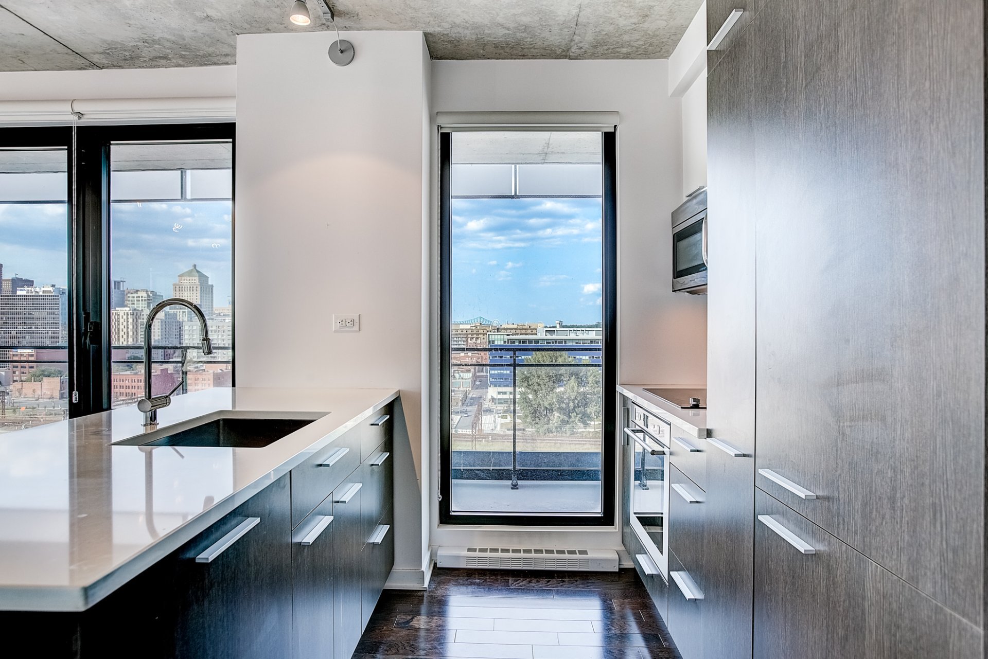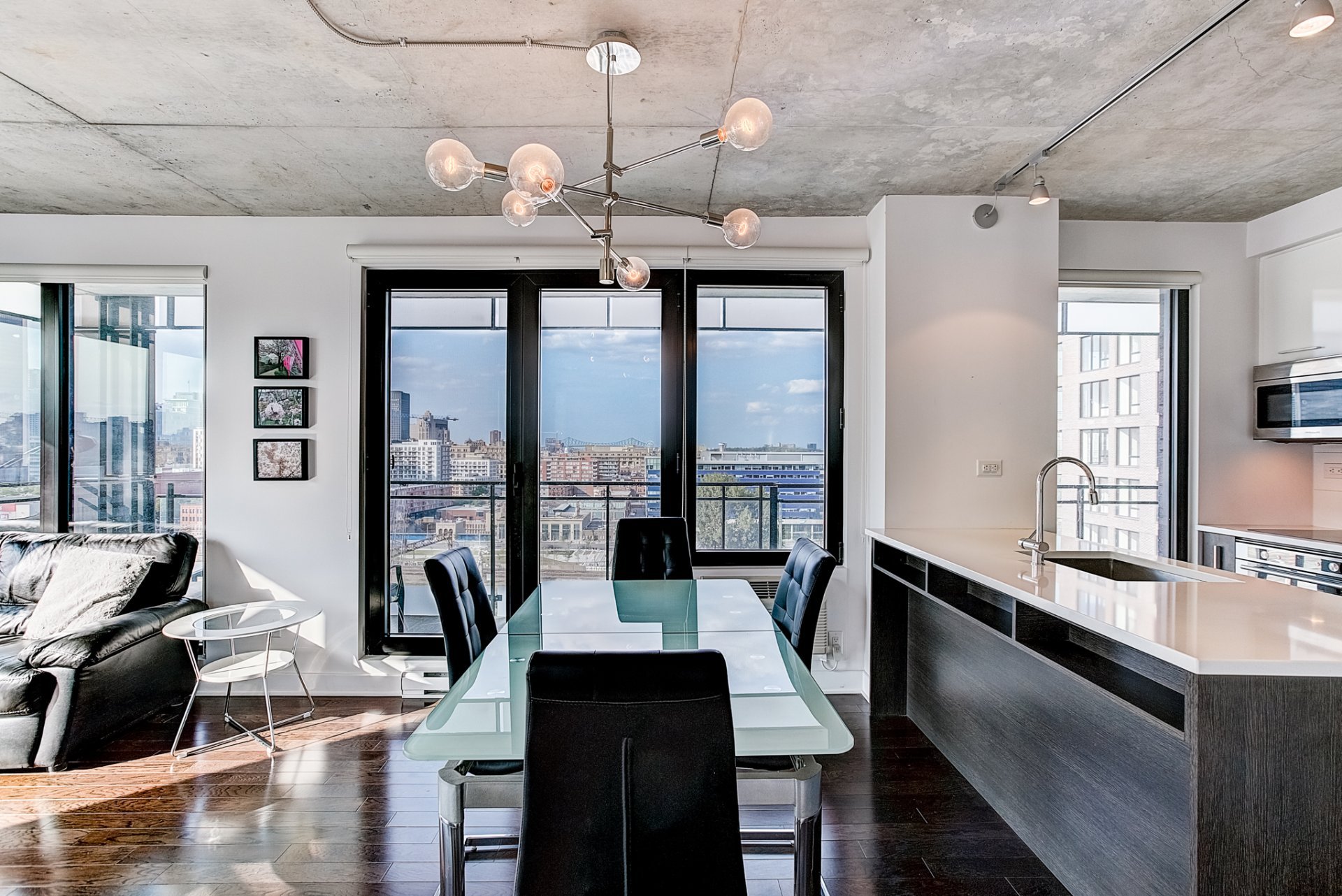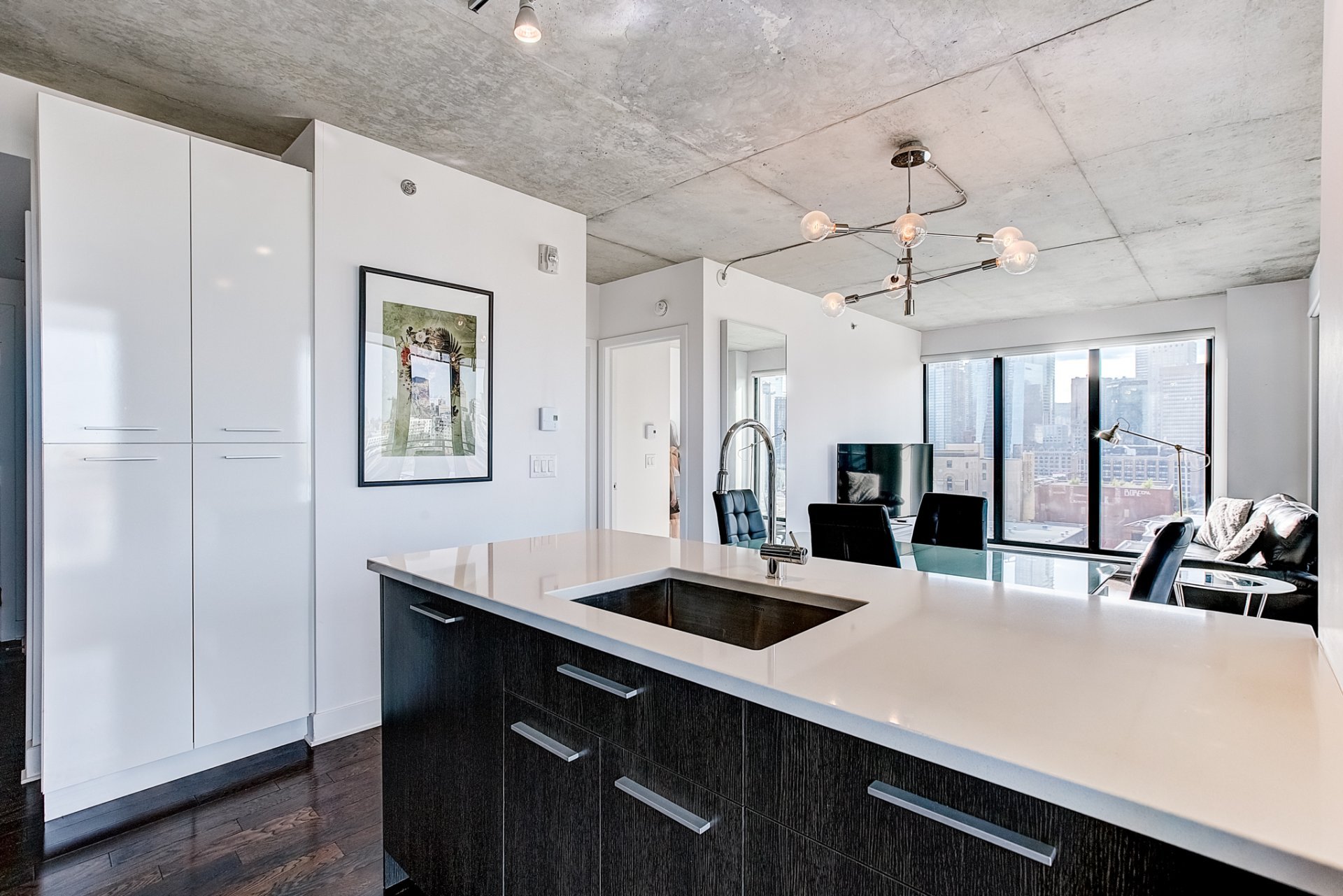 FURNISHED - Beautiful open concept condo located on the 16th floor offering breath taking view of Downtown Montreal. Two toned kitchen with quartz counter tops flows effortlessly to the living/dining room with a direct access to the large balcony. Floor to ceiling windows allow for an abundance of natural light to bathe the entire space.