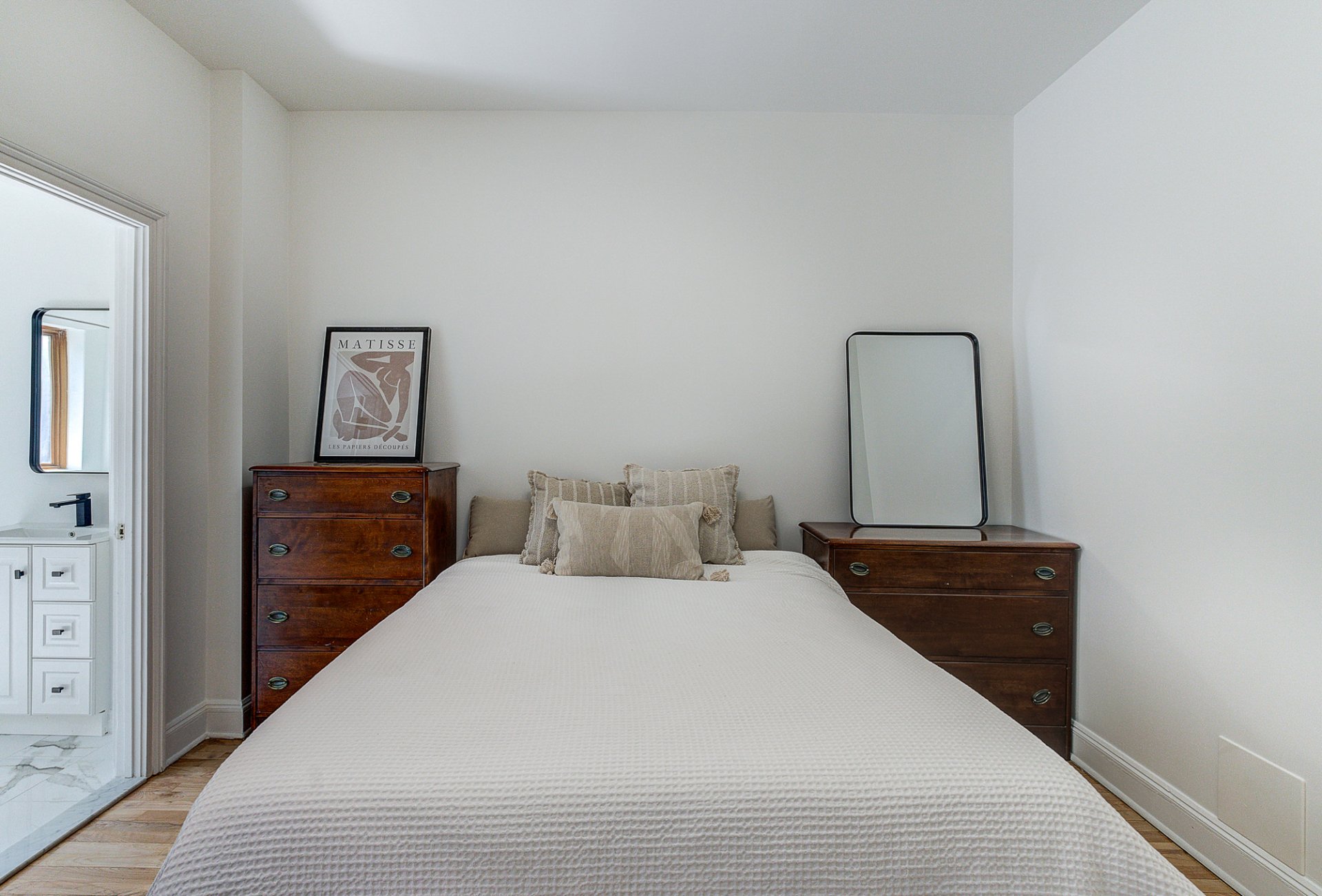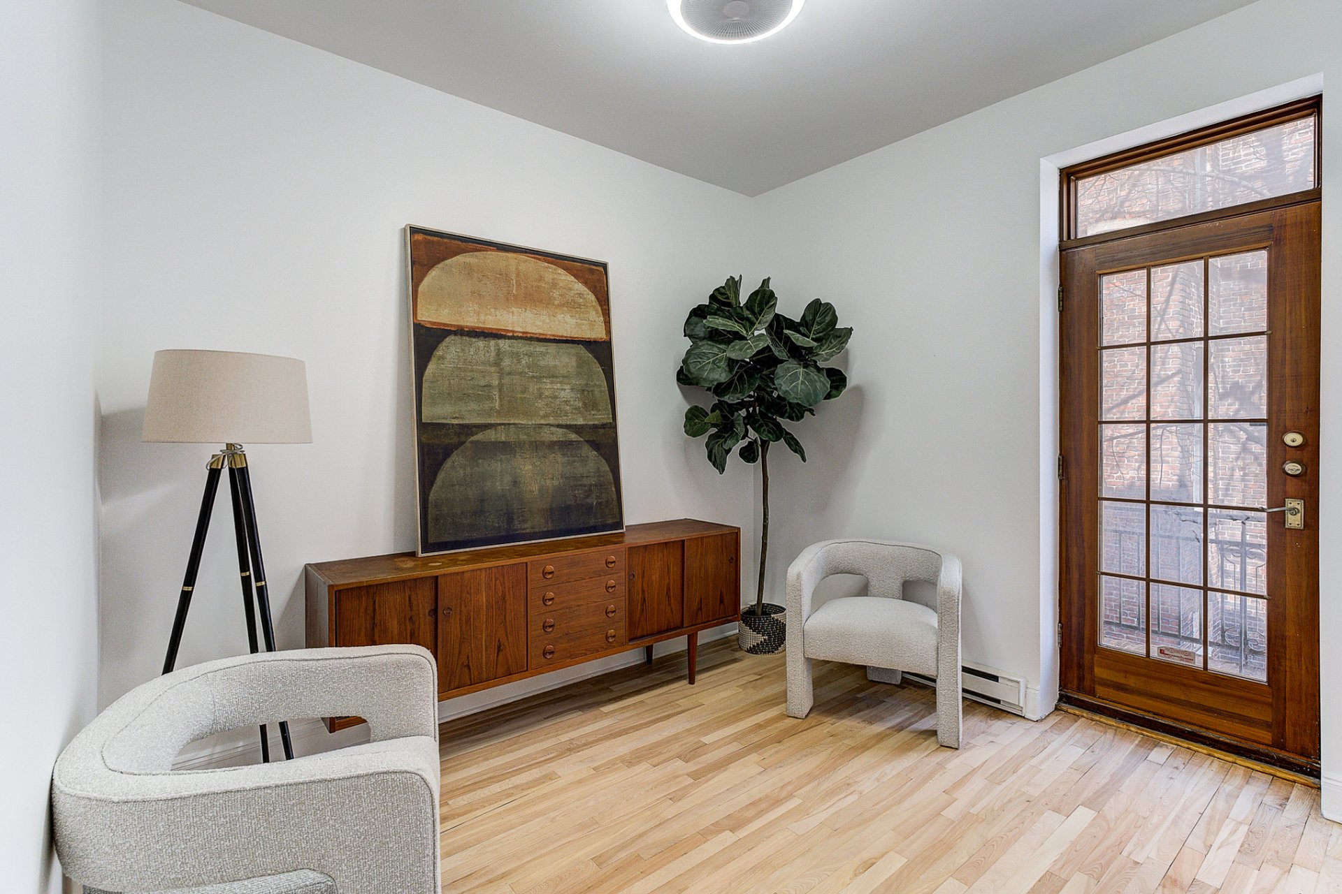 Nestled in the heart of downtown Montreal, this beautifully appointed 2-bedroom, 2-bathroom condo offers the perfect blend of modern comfort and classic charm. Located on the second floor of a well-maintained triplex, the space features a bright, open-concept layout with natural light pouring in from large windows and elegant French doors.