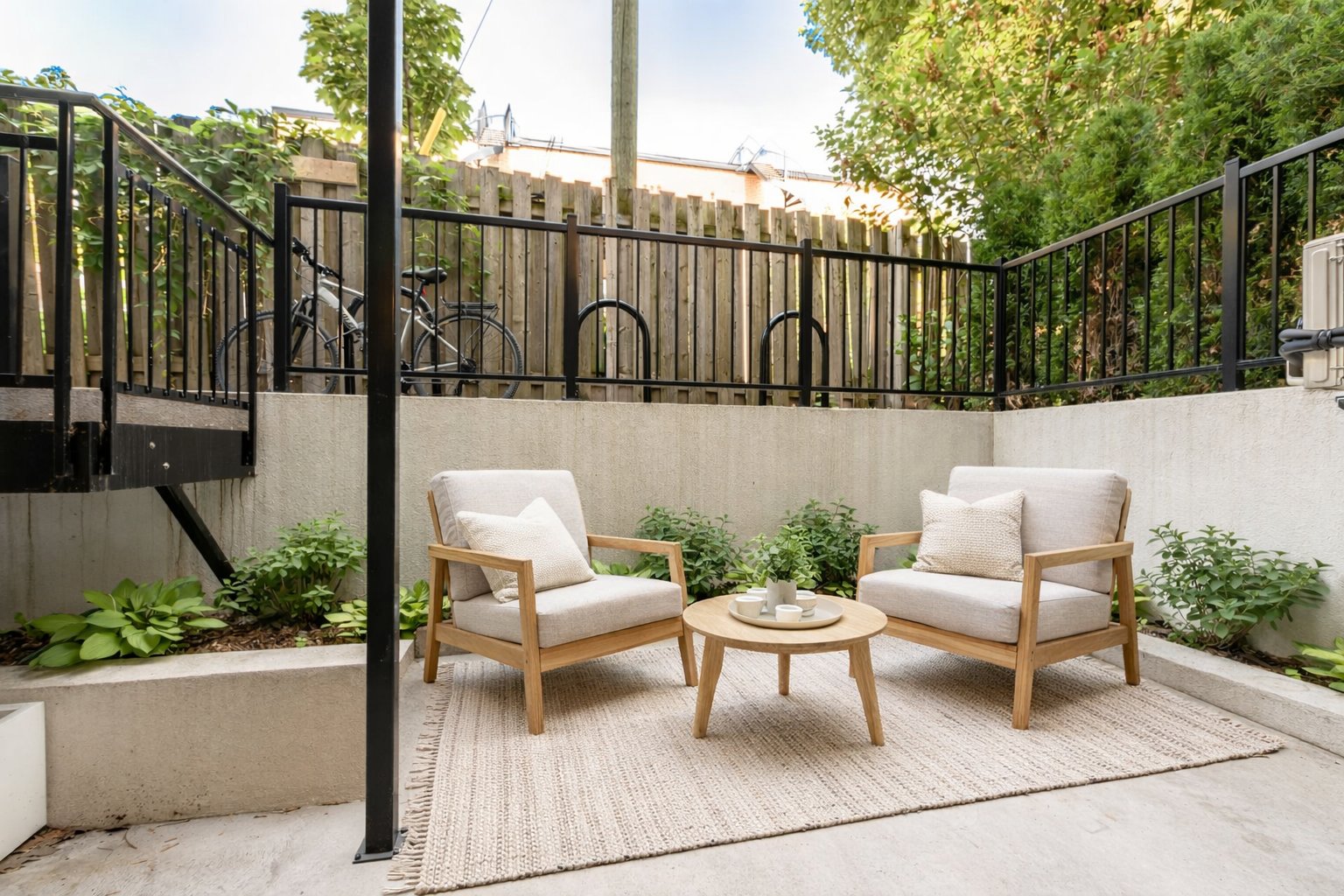 Bicycle racks in the backyard with secure access