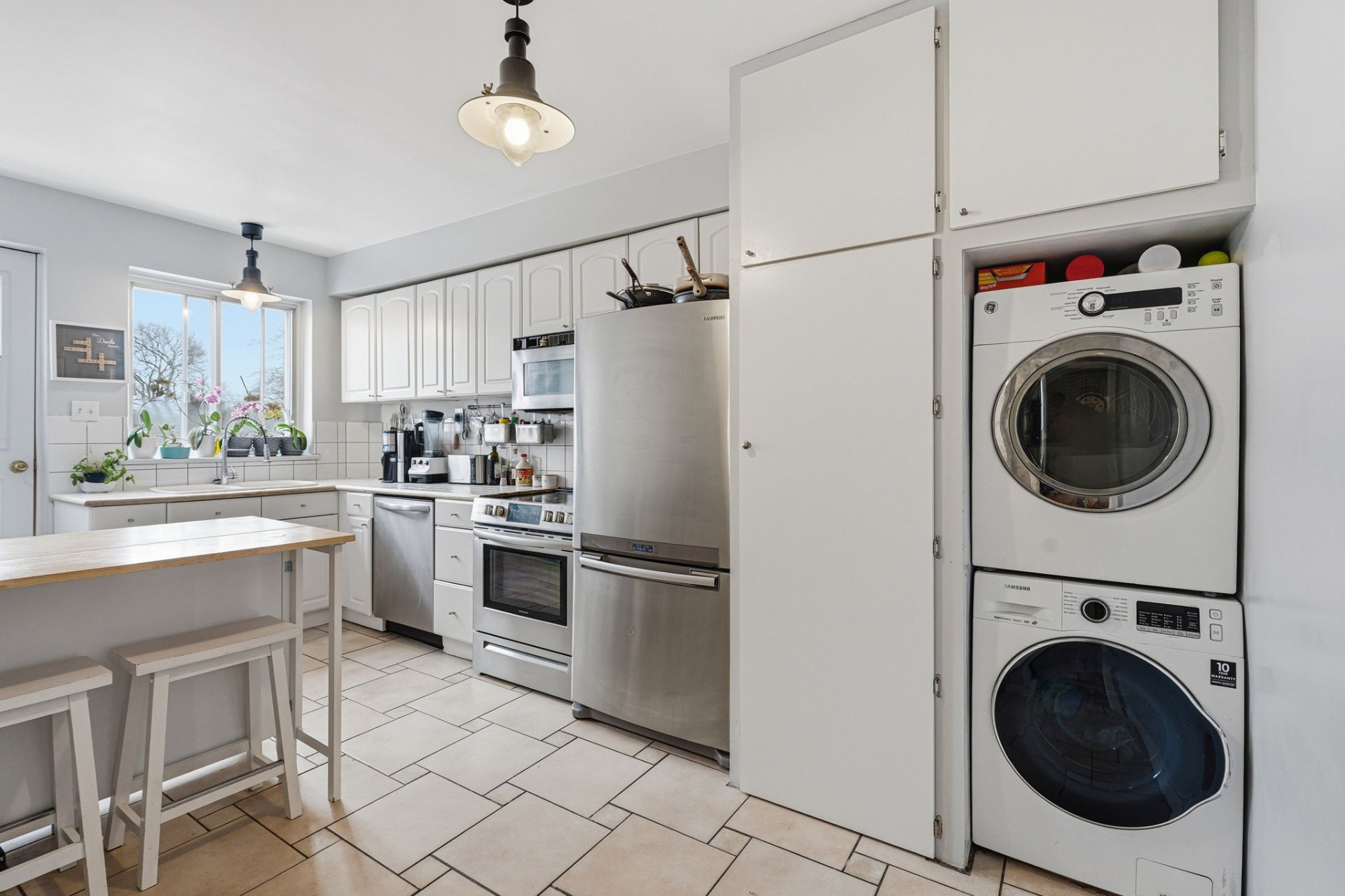 - #2066 (2nd floor unit): Washer and dryer. #2068 (ground floor unit): Range, refrigerator, microwave, washer and dryer. Private storage areas are provided for each unit.