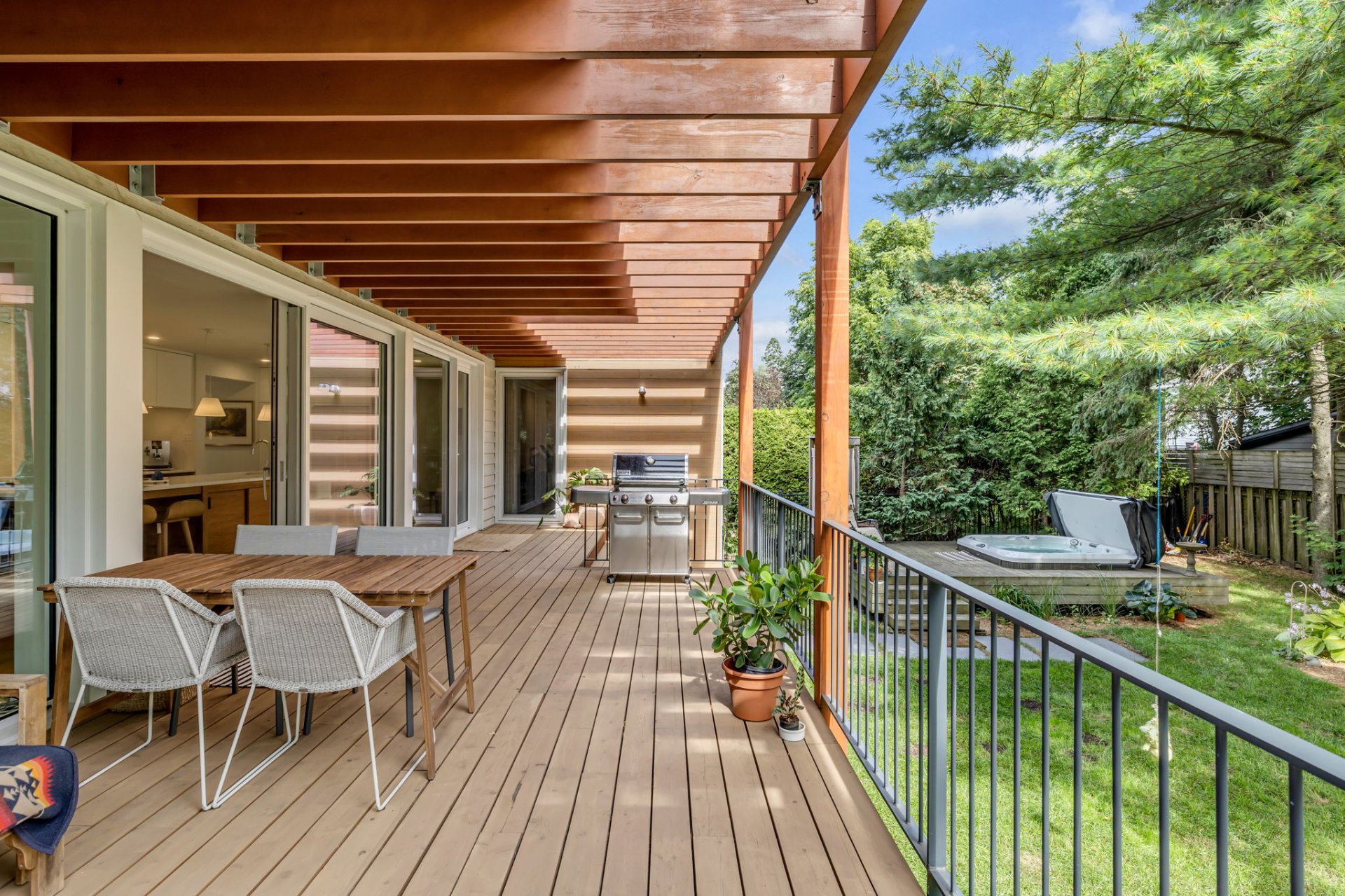 On prestigious Bois Joli Street, one of Sillery's finest addresses, discover this rare Pierre Thibault creation, fully renovated to highlight natural light and rich wood finishes. This exceptional home features 4 spacious bedrooms, a gas fireplace, air conditioning, spectacular windows, and an oversized outdoor terrace covered by a permanent wooden pergola. Enjoy a beautifully landscaped fenced yard and integrated garage style storage with direct access. A flawless blend of outstanding architectural design and upscale comfort, steps from top rated schools, prime services, and coveted green spaces.