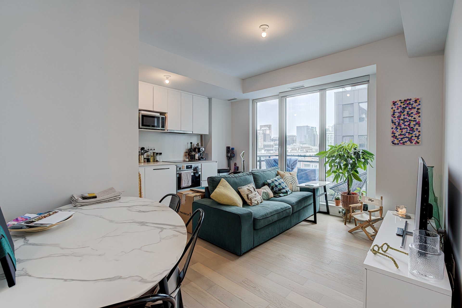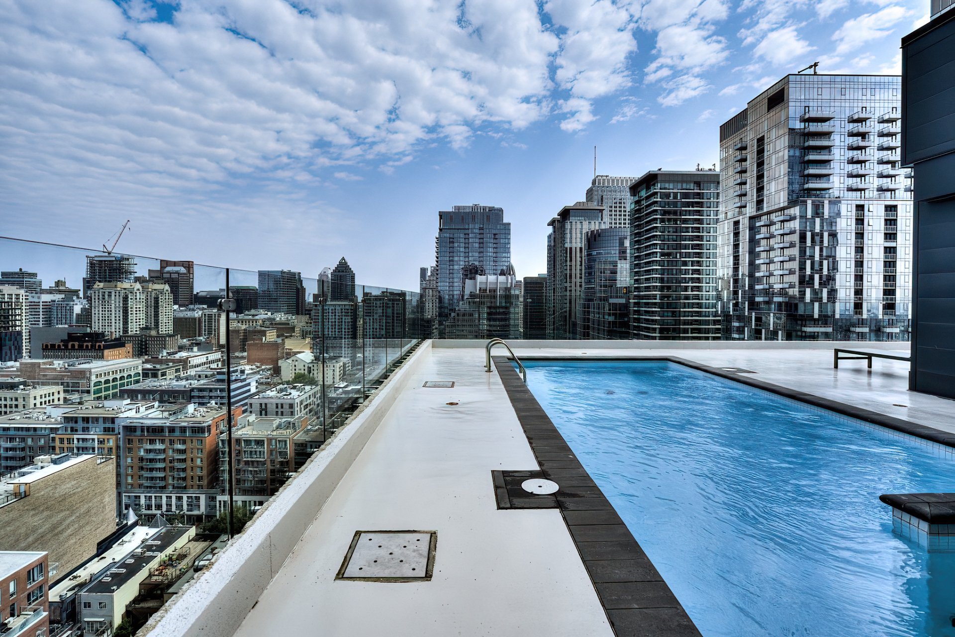 Upscale fully furnished condo located on the 14th floor of the prestigious ENTICY in the heart of downtown Montreal, including two bedrooms, one bathroom and a balcony with views of the city. Superb common areas: Outdoor heated pool, rooftop terrace with heated pool & BBQ, full gym, lounge, and shared workspaces. At walking distance from all services!