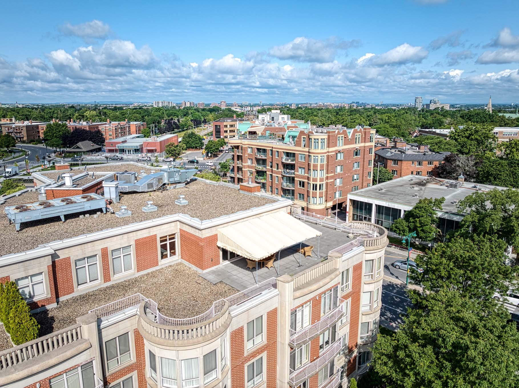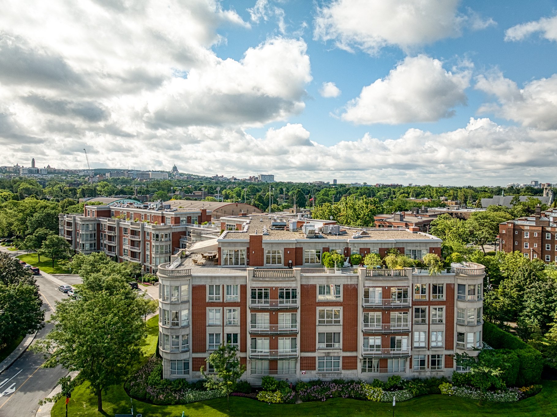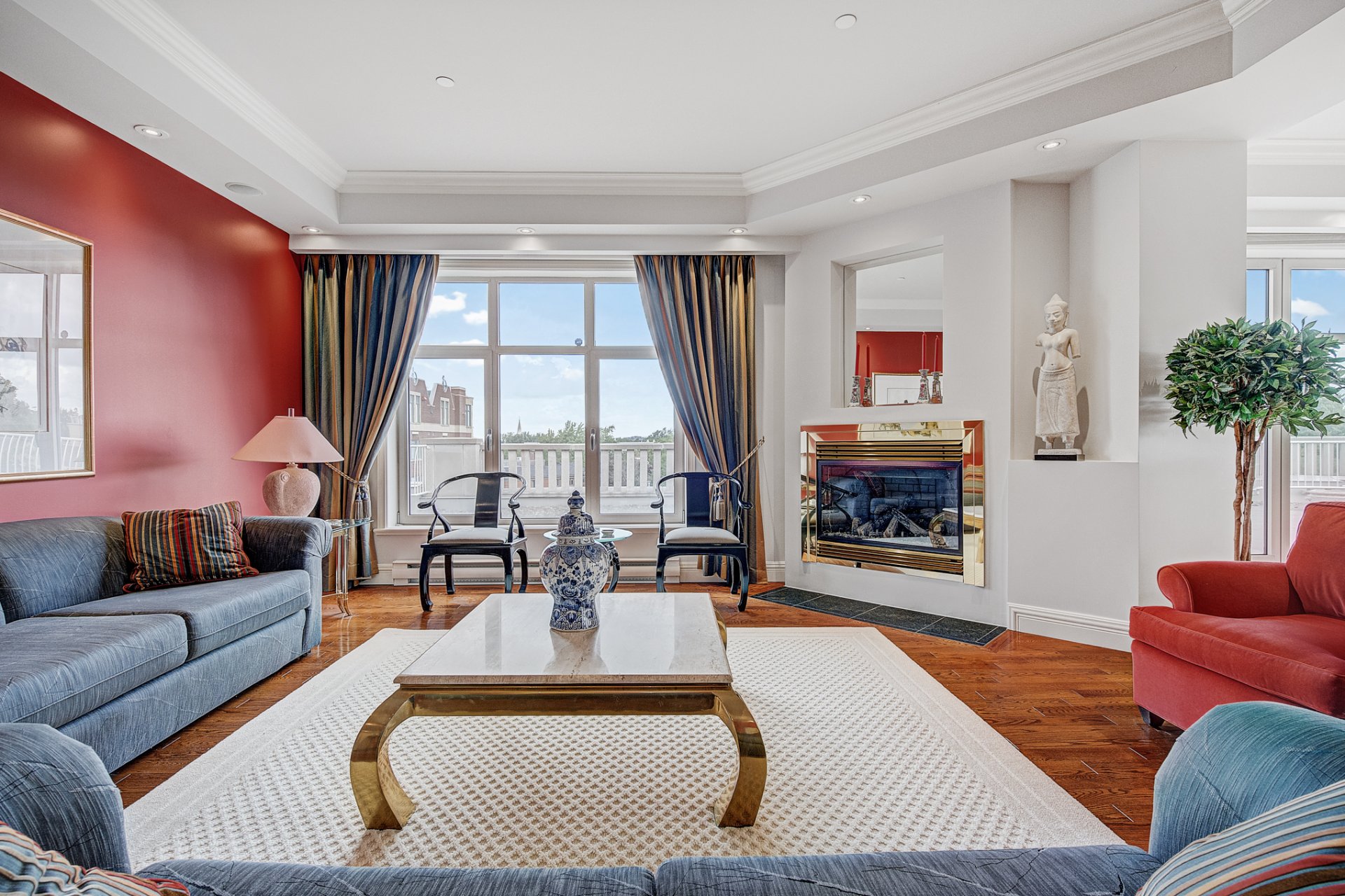 Unique opportunity to acquire an exceptional property with a huge private outdoor space which nearly doubles the size of the condo itself, an exclusive feature of the Pentouse units at The Crescent. This divided co-ownership stands out with the following elements: Spacious vestibule with granite floor, Large entrance hall leading to the living spaces as well as the bedrooms, Ceilings over 9 feet high, Living room with gas fireplace open to the dining room, Access to the terrace from the dining room, Access to the terrace from the kitchen, Impressive windows, Luxurious kitchen with granite countertops, Two bedrooms each with their own walk-in closet, Presence of a 3rd bedroom that can be used as a boudoir or office, Two huge bathrooms with high quality finishings, Two indoor parking spaces next to each other, Two storage spaces, Peaceful and secure building, 24-hour doorman, Prime location in the heart of the neighborhood, Exercise room, Community room, close to the REM leading to several strategic locations in the city as well as the airport, a few steps from Connaught Park. Welcome!