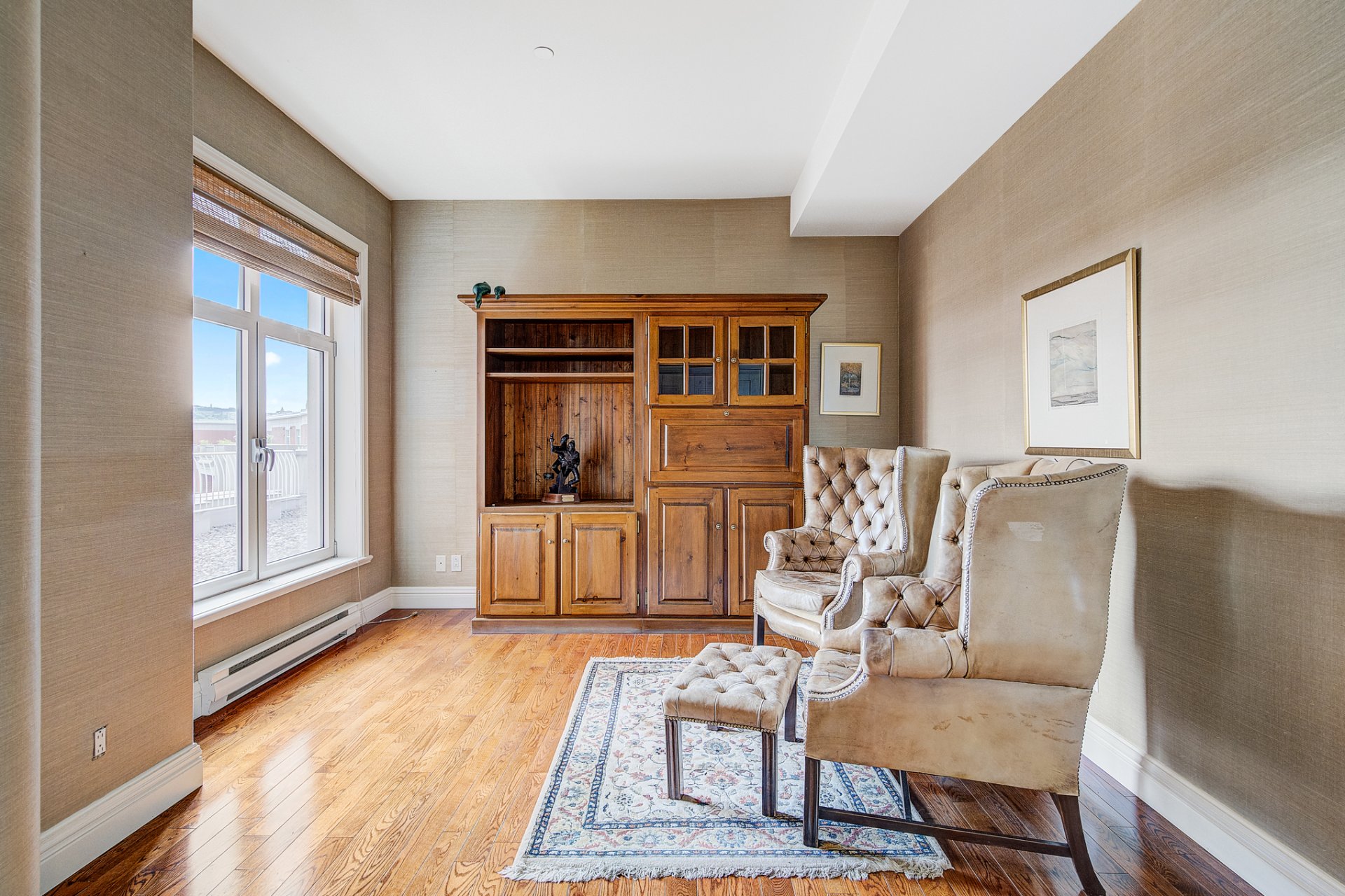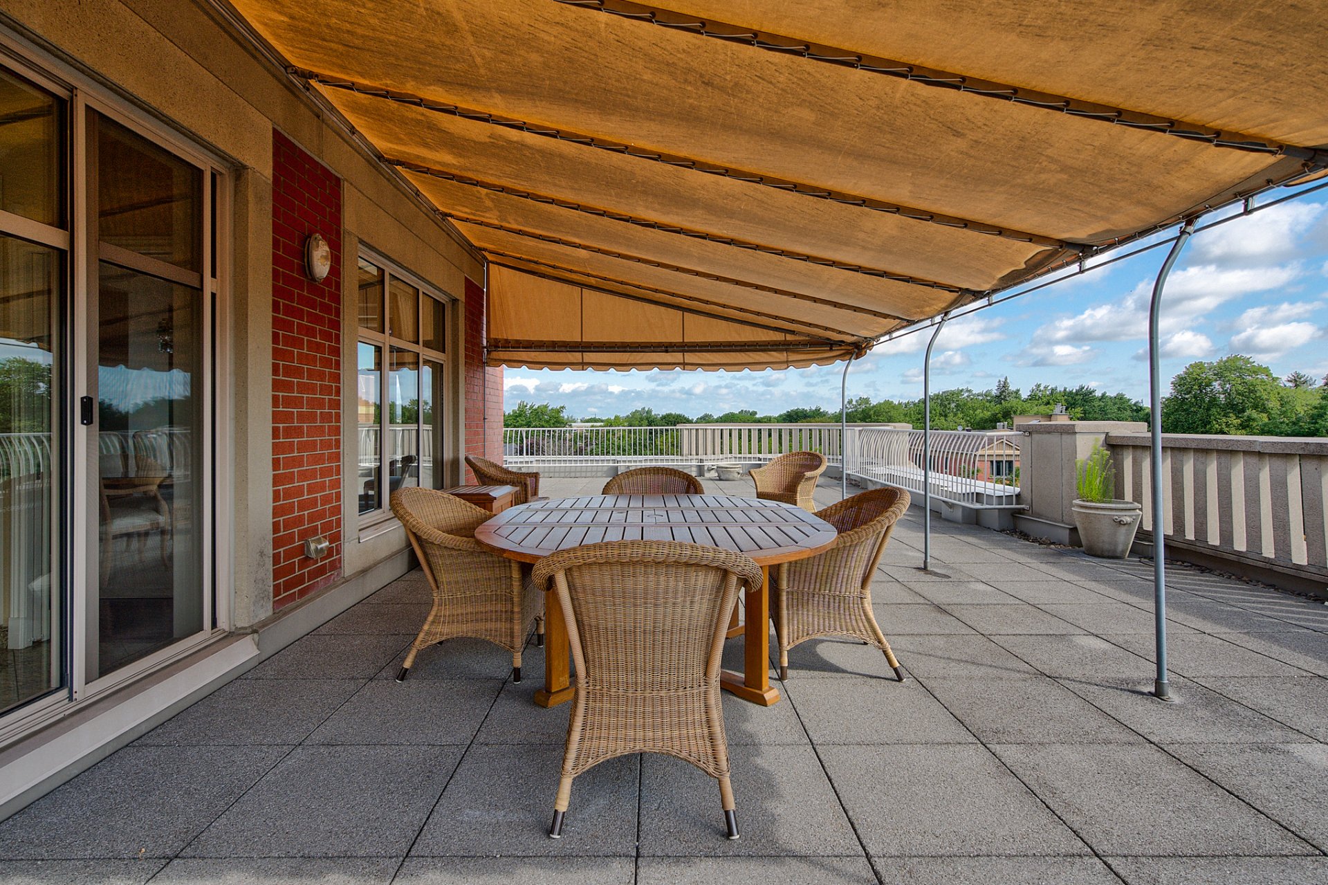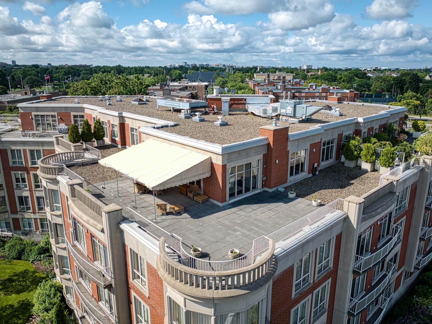 Unique opportunity to acquire an exceptional property with a huge private outdoor space which nearly doubles the size of the condo itself, an exclusive feature of the Pentouse units at The Crescent. This divided co-ownership stands out with the following elements: Spacious vestibule with granite floor, Large entrance hall leading to the living spaces as well as the bedrooms, Ceilings over 9 feet high, Living room with gas fireplace open to the dining room, Access to the terrace from the dining room, Access to the terrace from the kitchen, Impressive windows, Luxurious kitchen with granite countertops, Two bedrooms each with their own walk-in closet, Presence of a 3rd bedroom that can be used as a boudoir or office, Two huge bathrooms with high quality finishings, Two indoor parking spaces next to each other, Two storage spaces, Peaceful and secure building, 24-hour doorman, Prime location in the heart of the neighborhood, Exercise room, Community room, close to the REM leading to several strategic locations in the city as well as the airport, a few steps from Connaught Park. Welcome!