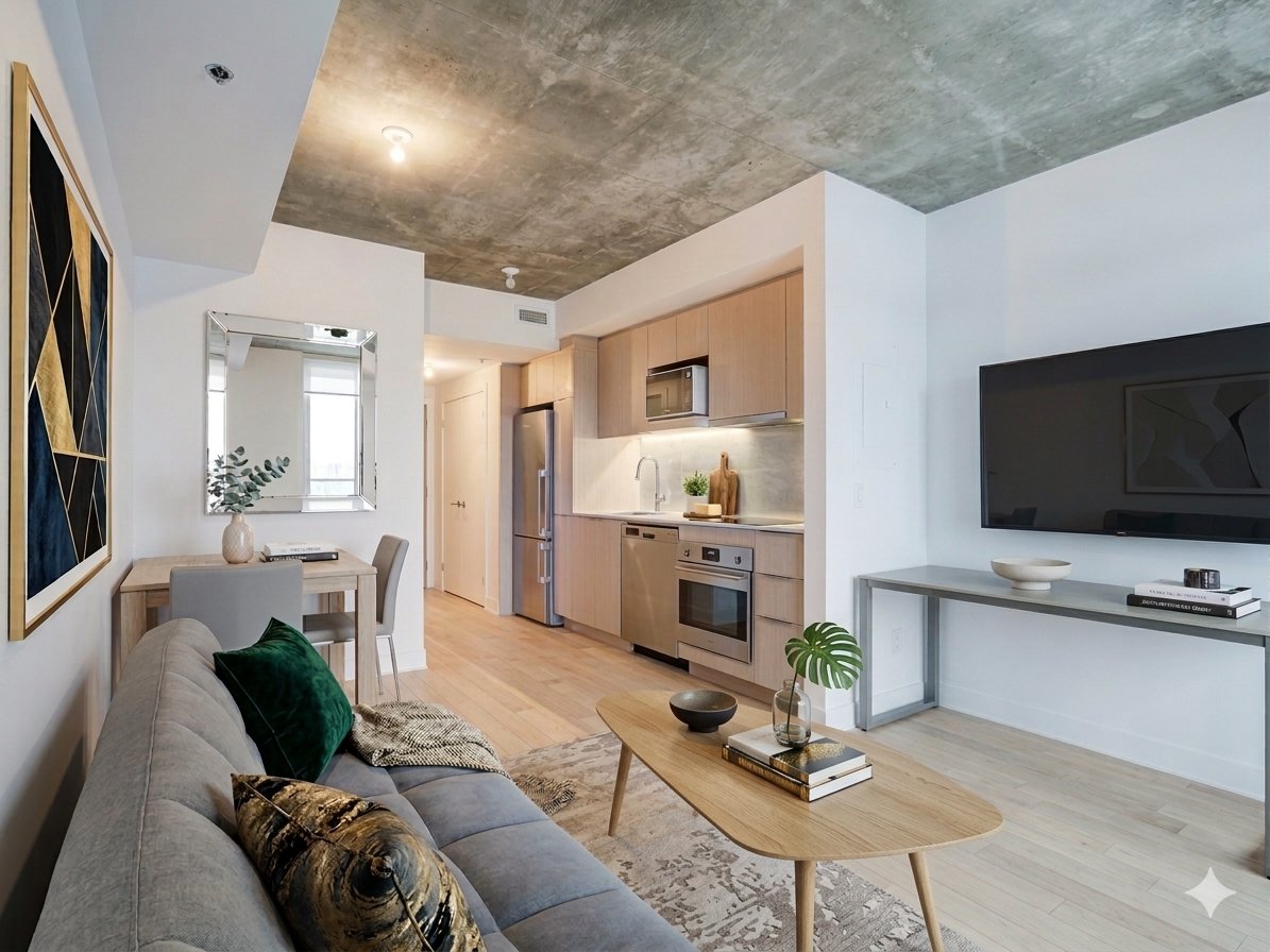 In the heart of Griffintown, you will be a stone's throw from the new REM station, 1km from the Bonaventure metro station, near Peel Street, the Atwater Market and two minutes from the Lachine Canal. Close to all services such as Adonis, Pharmaprix, SAQ and many trendy shops and gourmet restaurants!