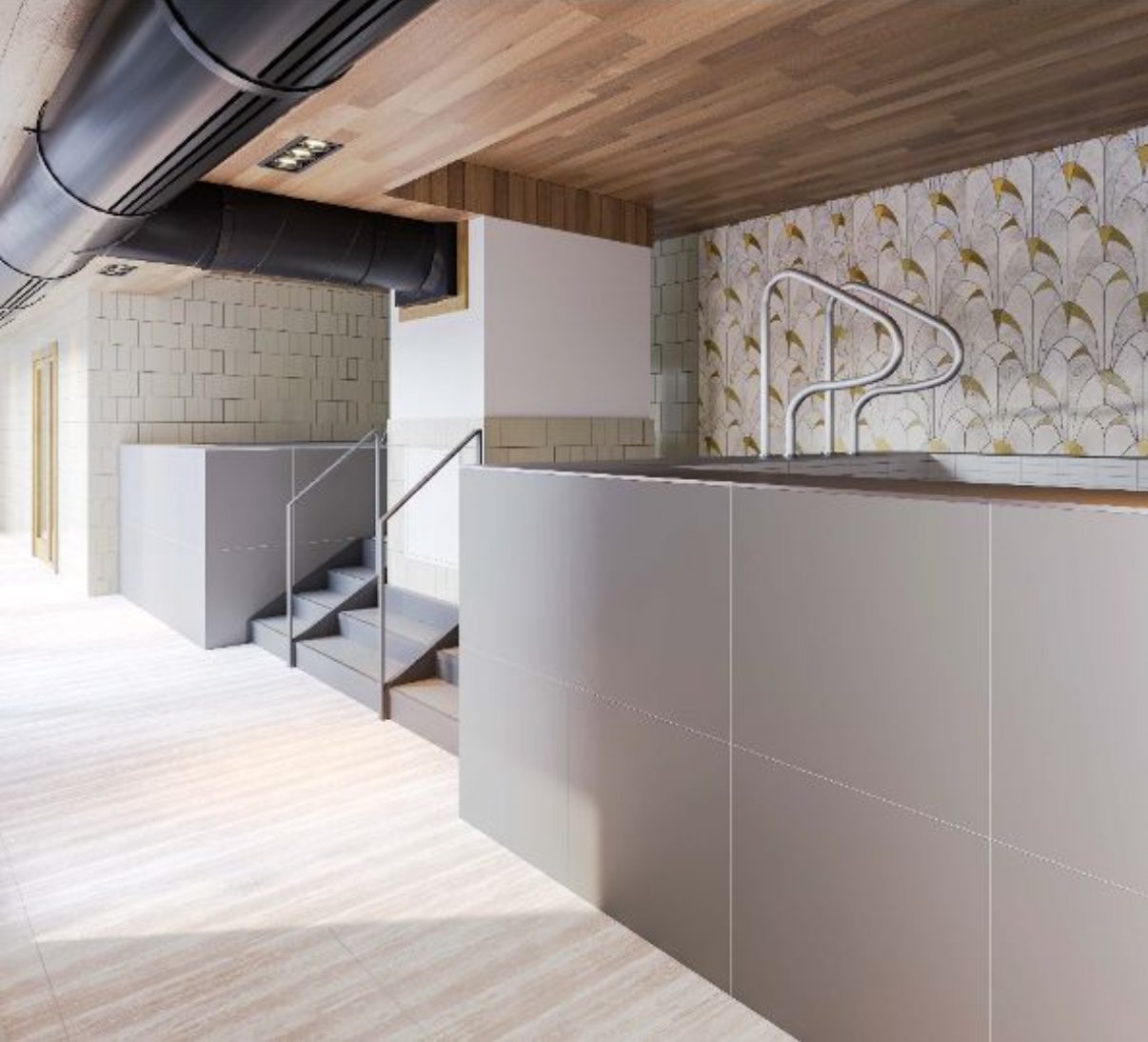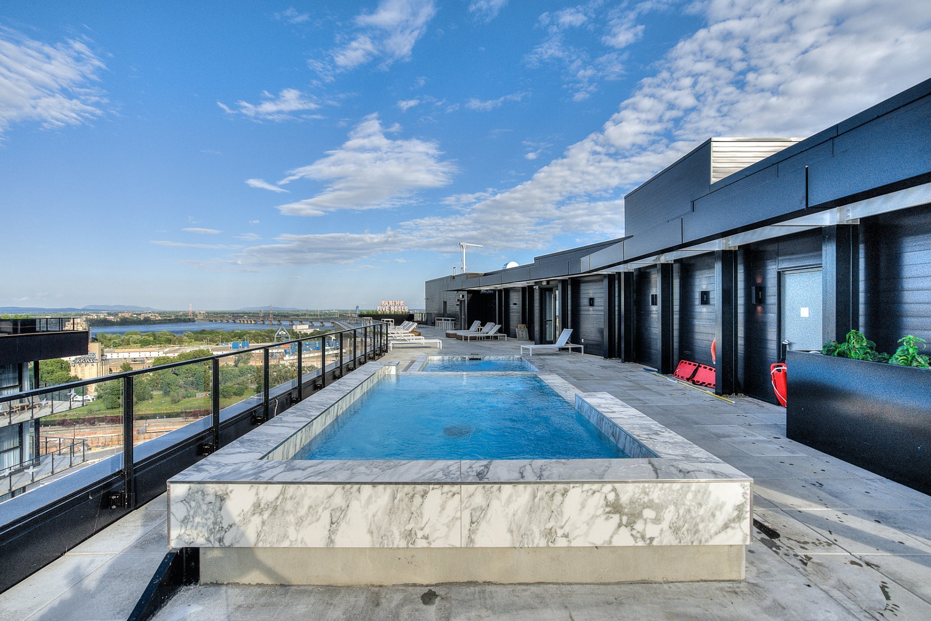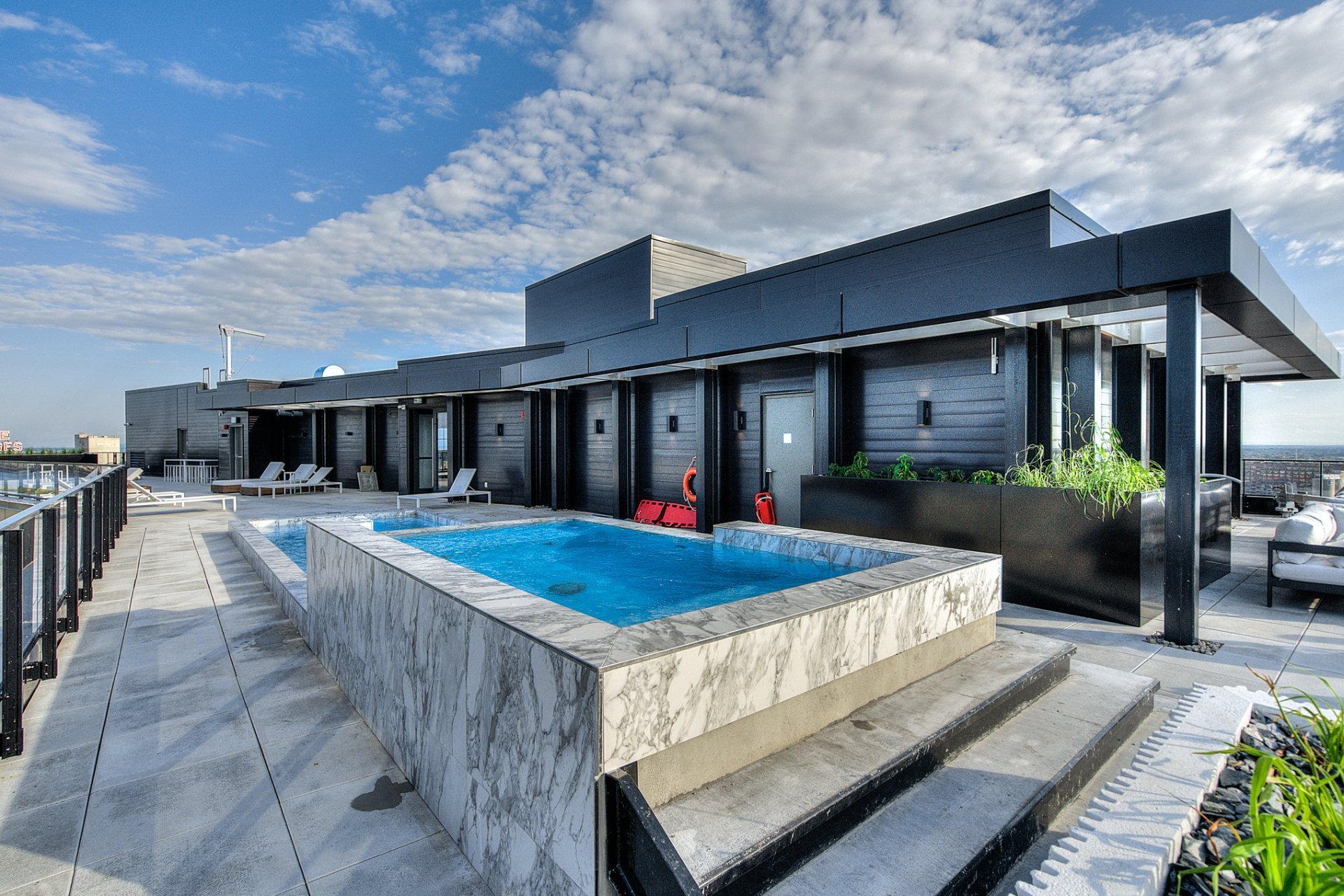 - Outdoor pool and relaxation areas on the roof