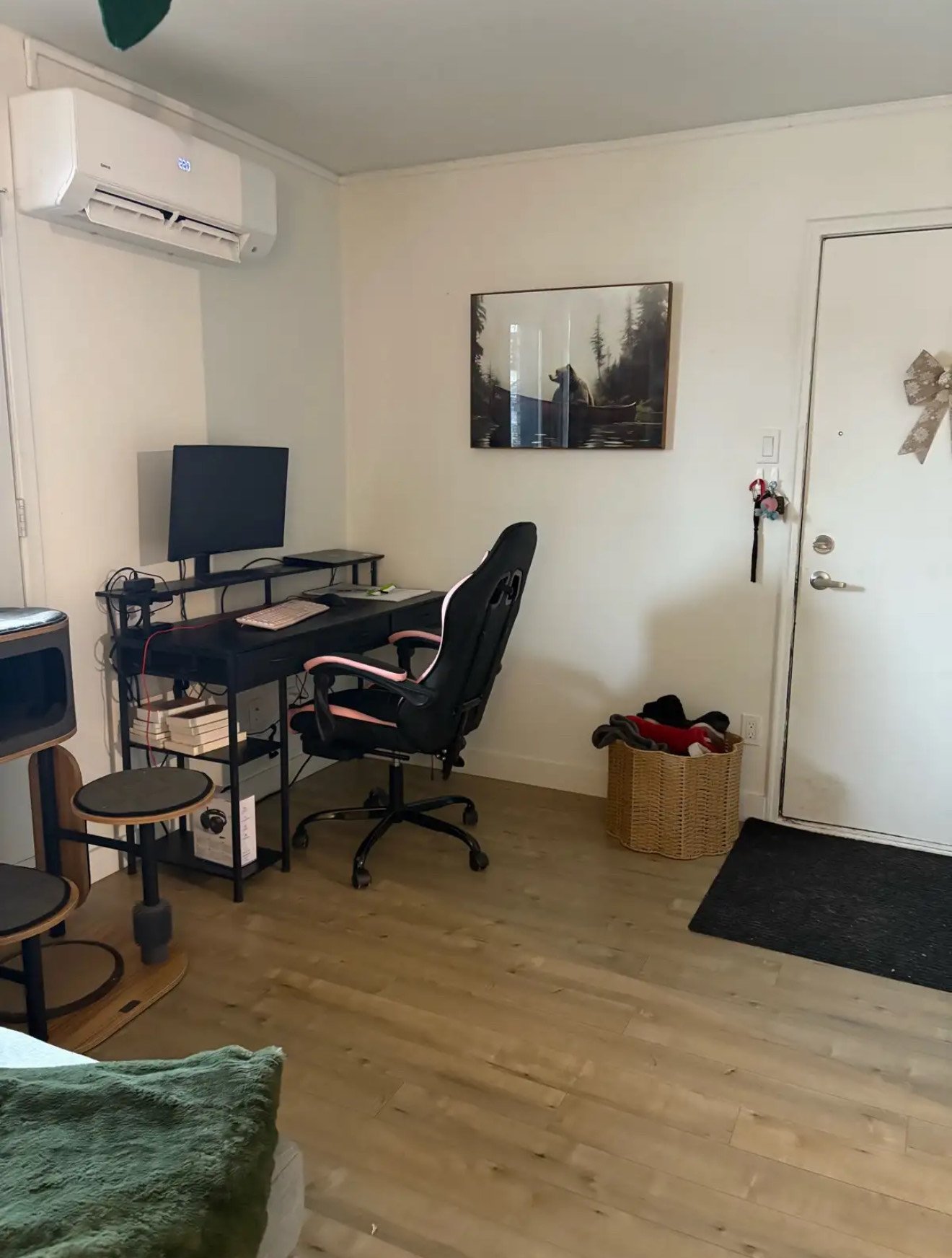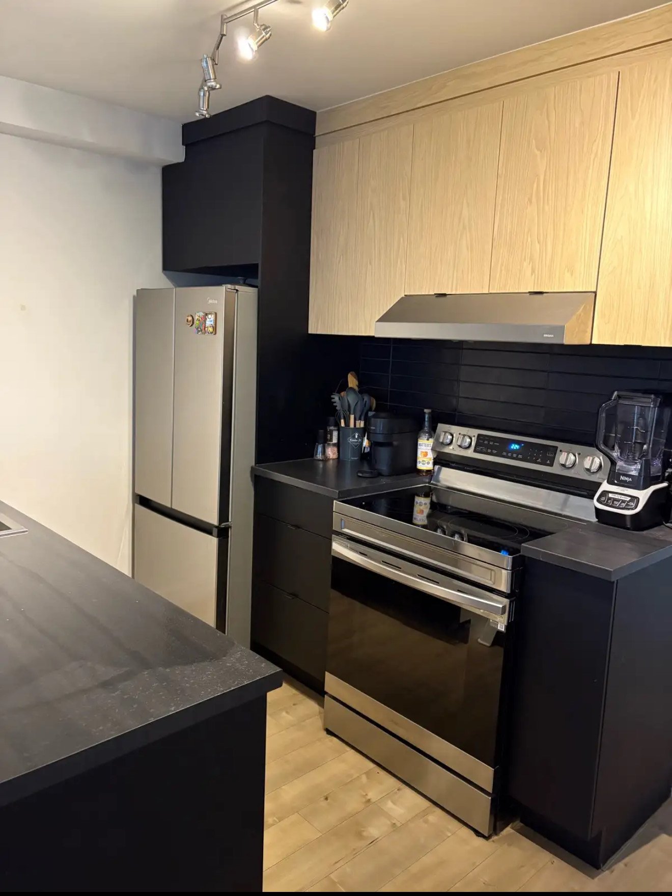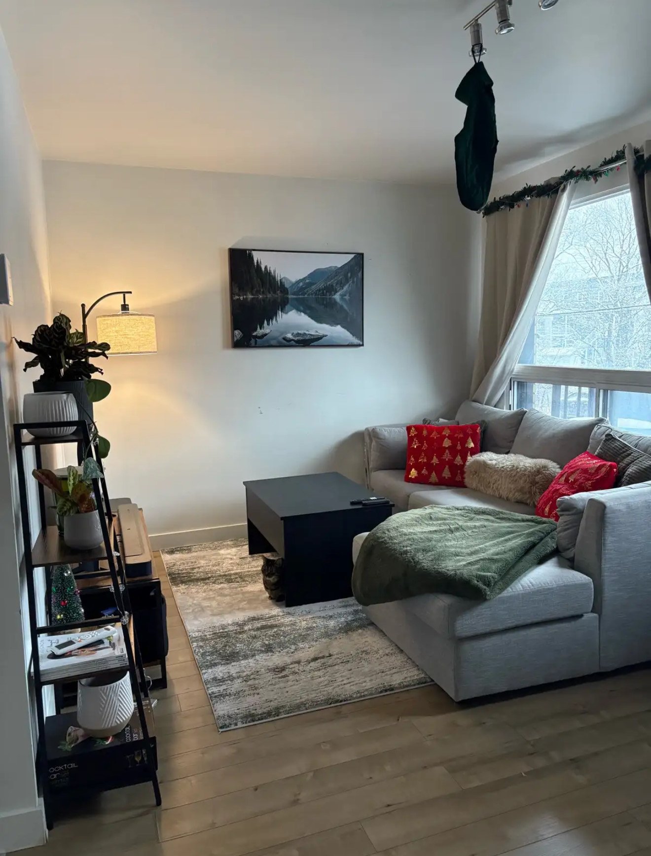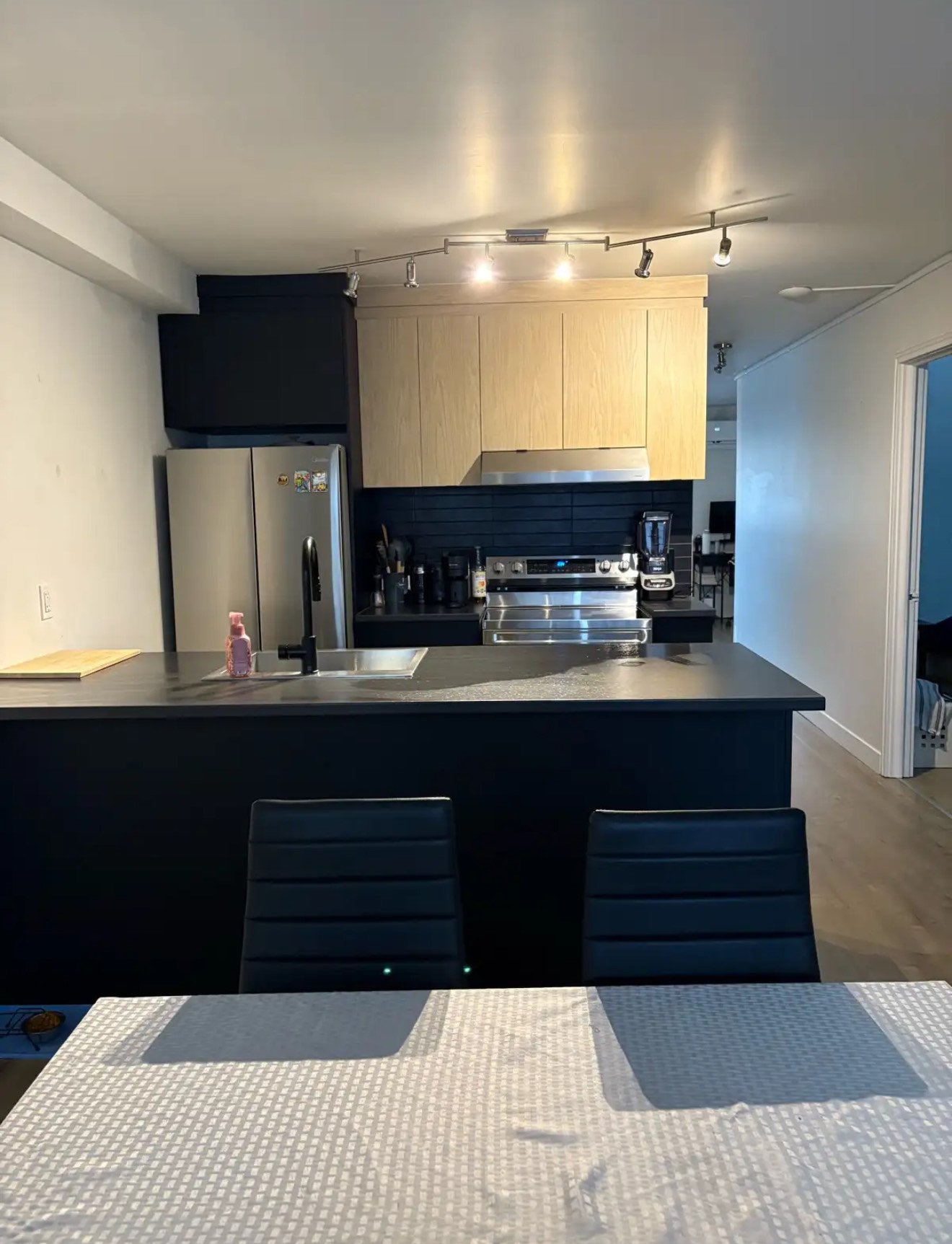 Lease transfer. Bright and well-designed 4½ apartment offering a comfortable living space. The unit features two generously sized bedrooms, a bathroom with washer and dryer hookups, and a functional kitchen with an island and dishwasher connection. Wi-Fi is included, along with a heat pump for year-round comfort. Storage space and one parking spot are included. Pets are permitted, including cats and dogs up to 25 lbs. Conveniently located near services and amenities, ideal for a balanced and practical lifestyle.