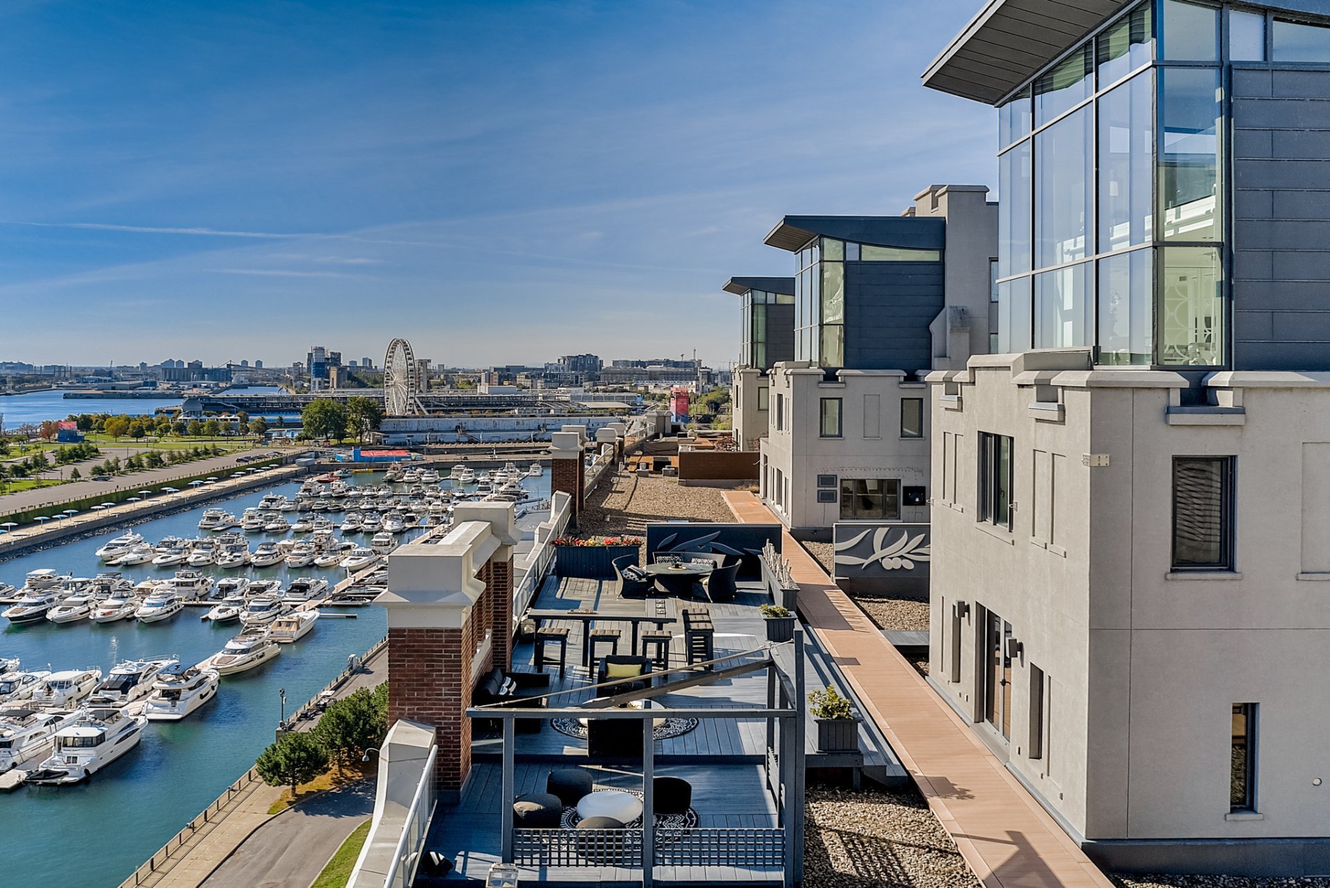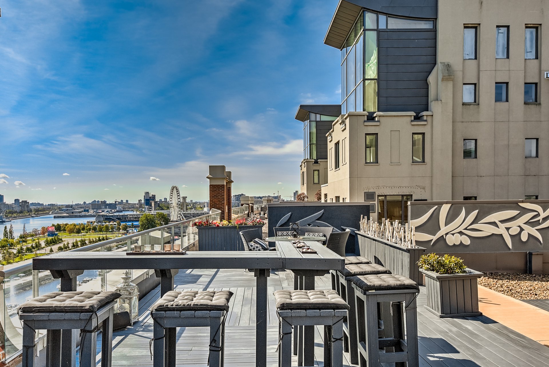 Unique penthouse atop the prestigious L'Héritage du Vieux-Port, offering spectacular views of the St. Lawrence River, the marina, and Mount Royal. Spanning five floors with a private elevator, it features an expansive private terrace and refined interiors, including a high-end kitchen, stainless steel appliances, and spa-style bathrooms. The property includes two distinct units with private entrances, providing a bi-generational option ideal for teenagers, parents, guests, or staff. Residents enjoy exclusive amenities: 24/7 security, fully equipped gym, saltwater pool, spa, steam bath, and billiards room--just steps away from the vibrant cafés and restaurants of Old Montreal.