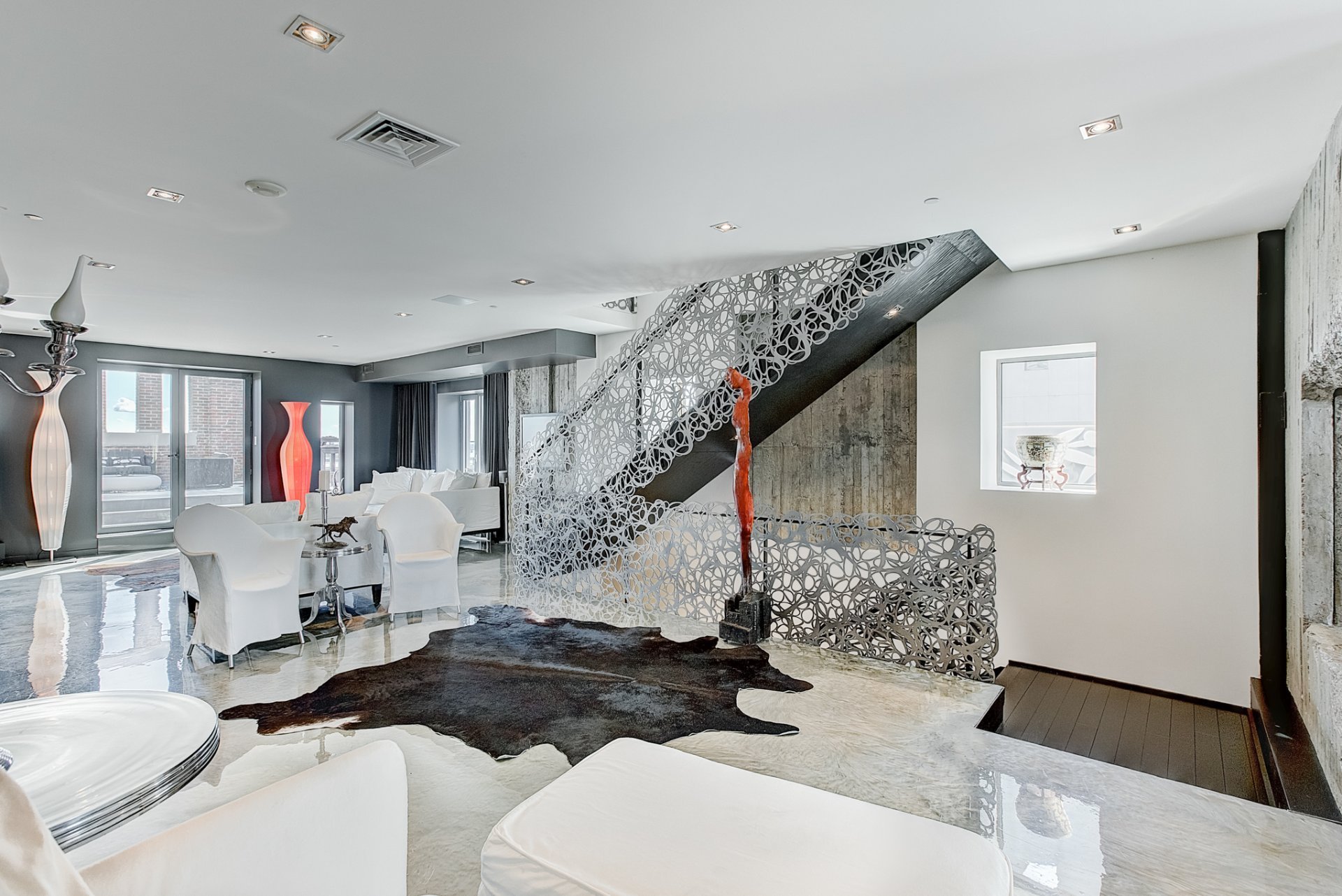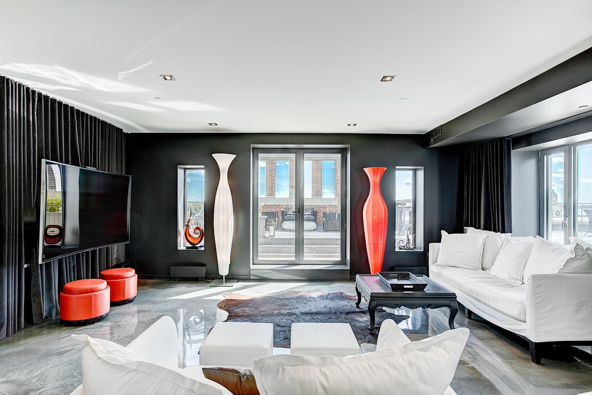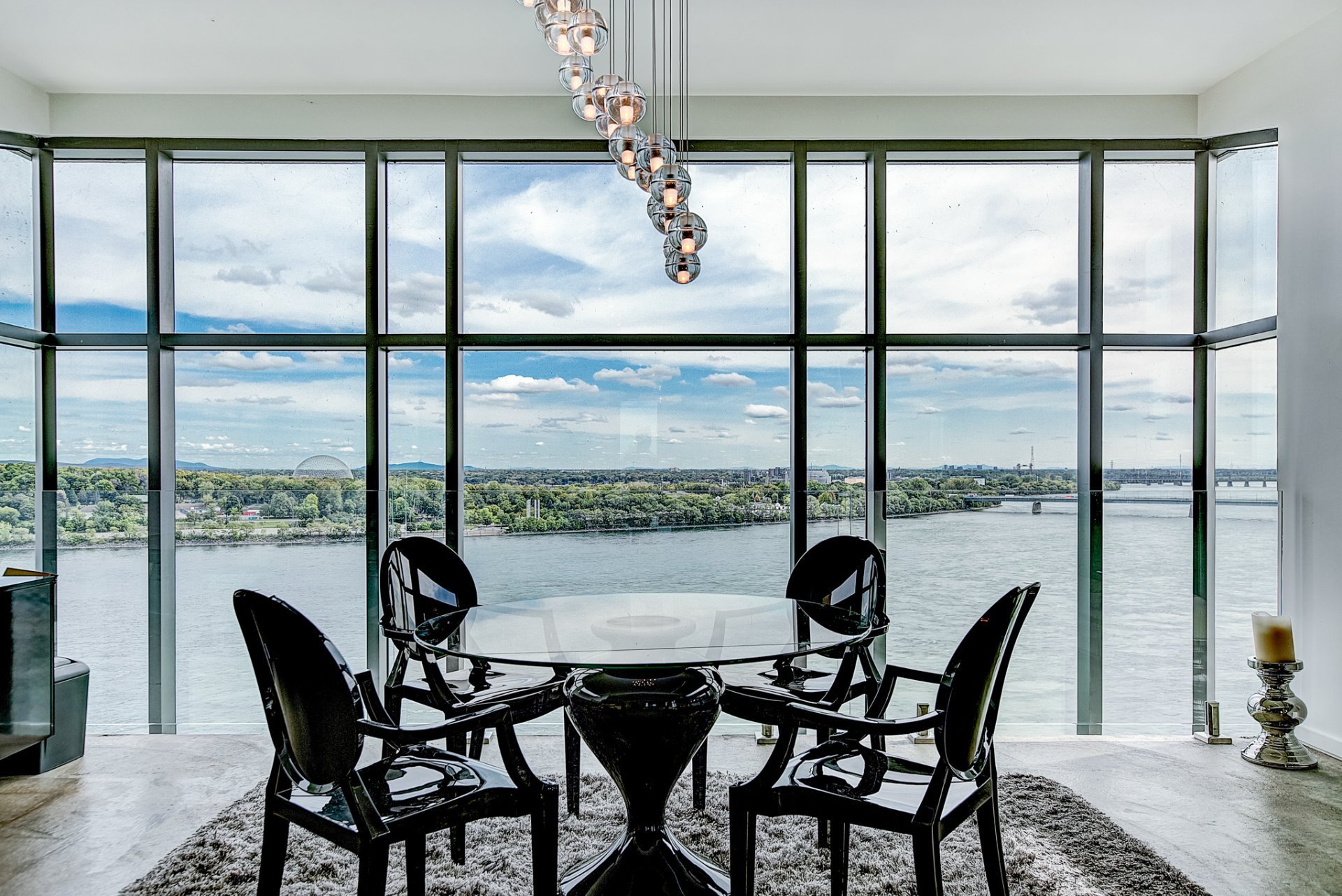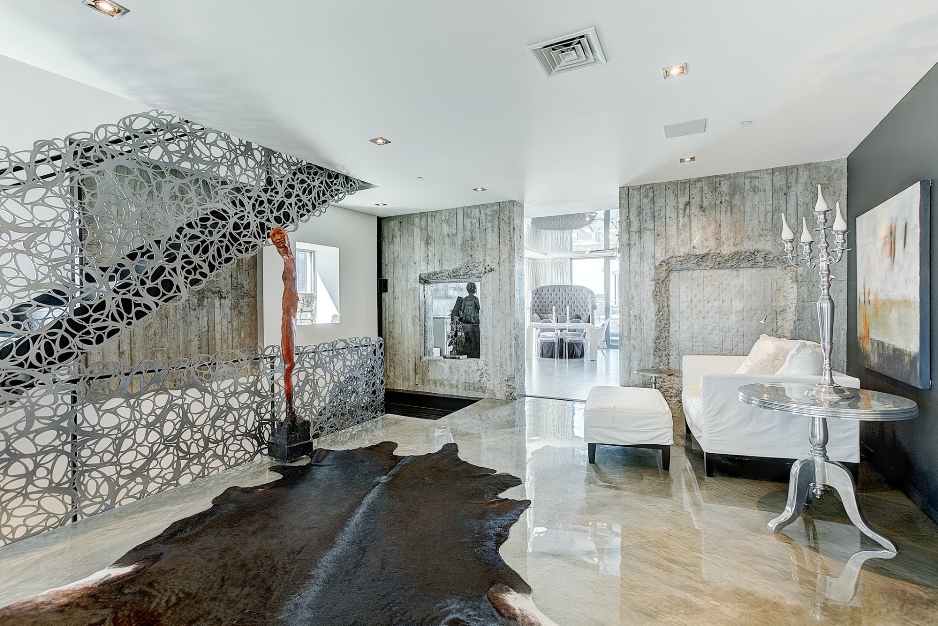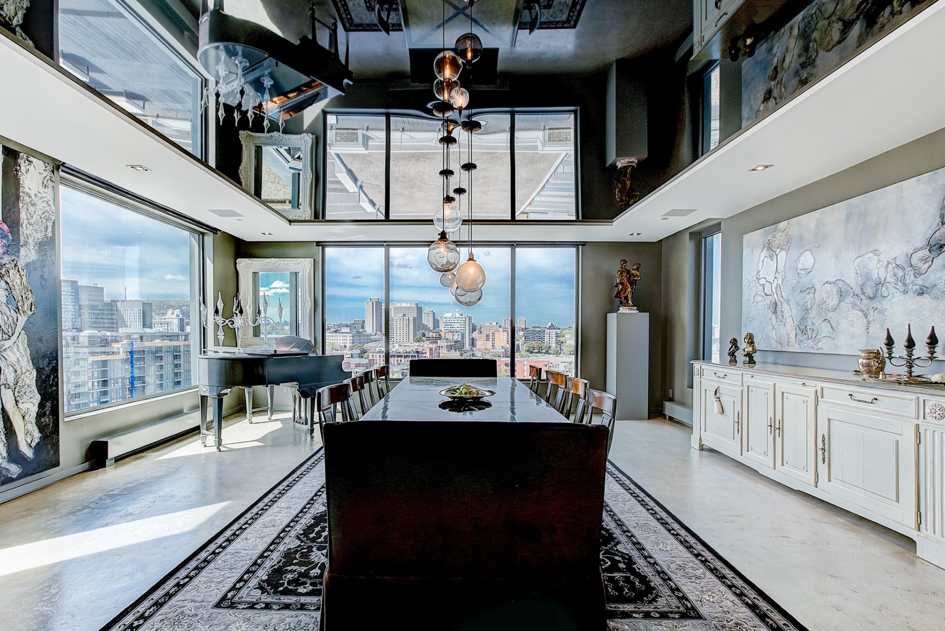 Discover an exceptional penthouse at the top of L'Héritage du Vieux-Port. Spanning five floors with a private elevator, it features a spectacular terrace offering panoramic views of the river, marina, and Mount Royal. The luxurious interior boasts a high-end kitchen and spa-style bathrooms. The property includes two distinct units with private entrances, offering a bi-generational option ideal for teenagers, parents, guests, or staff. Building amenities include a saltwater pool and spa. Ideally located in vibrant Old Montreal, with easy access to the airport.