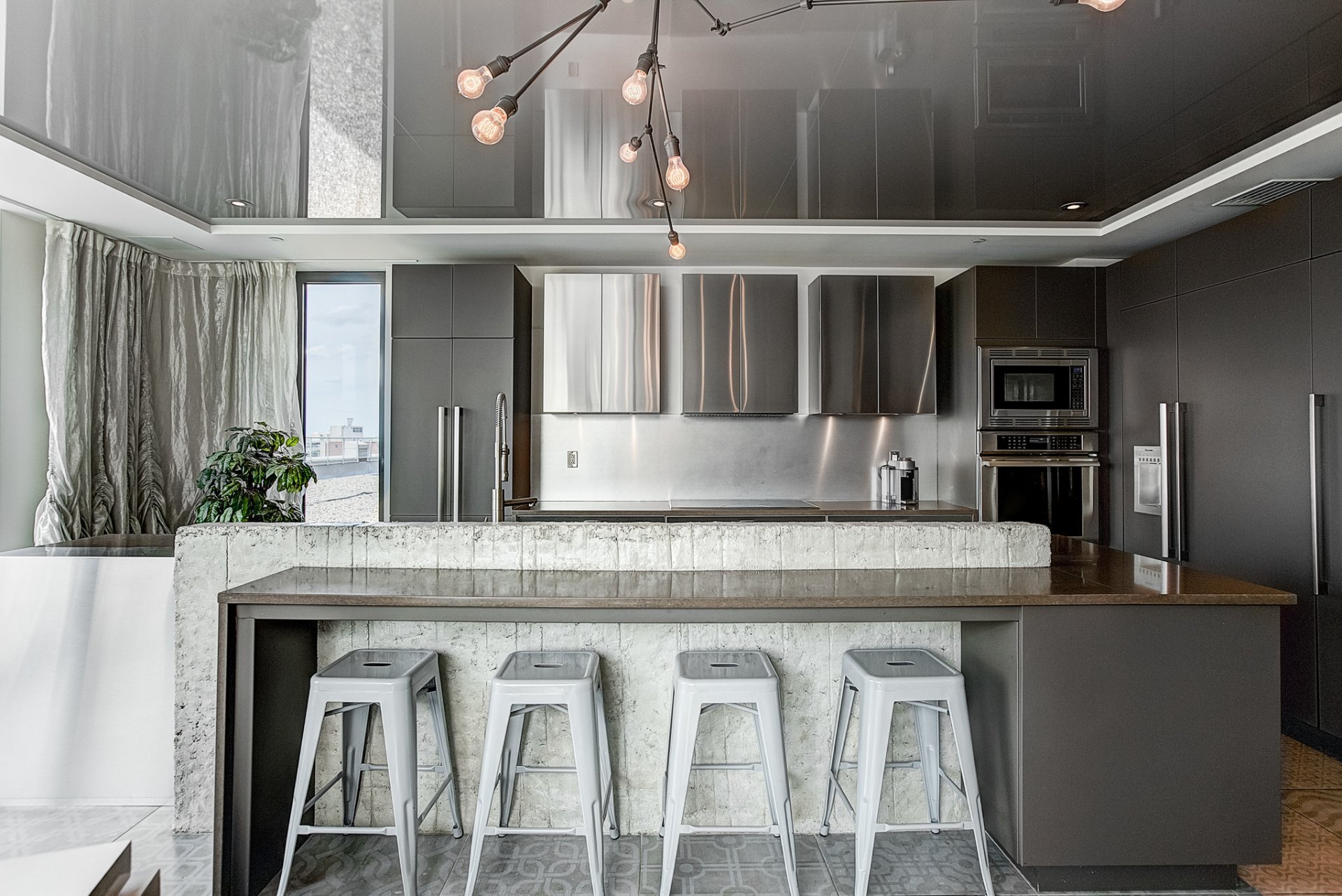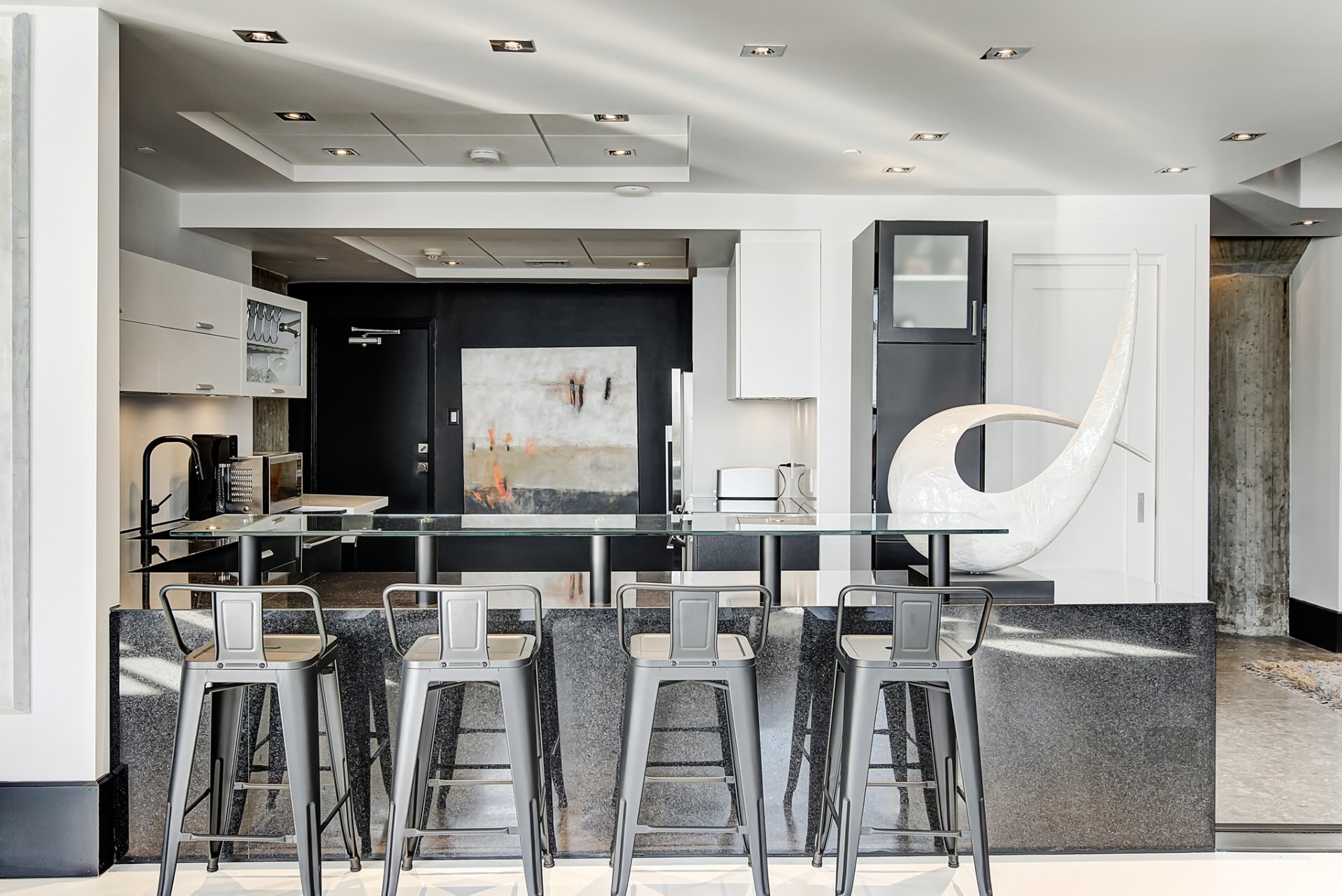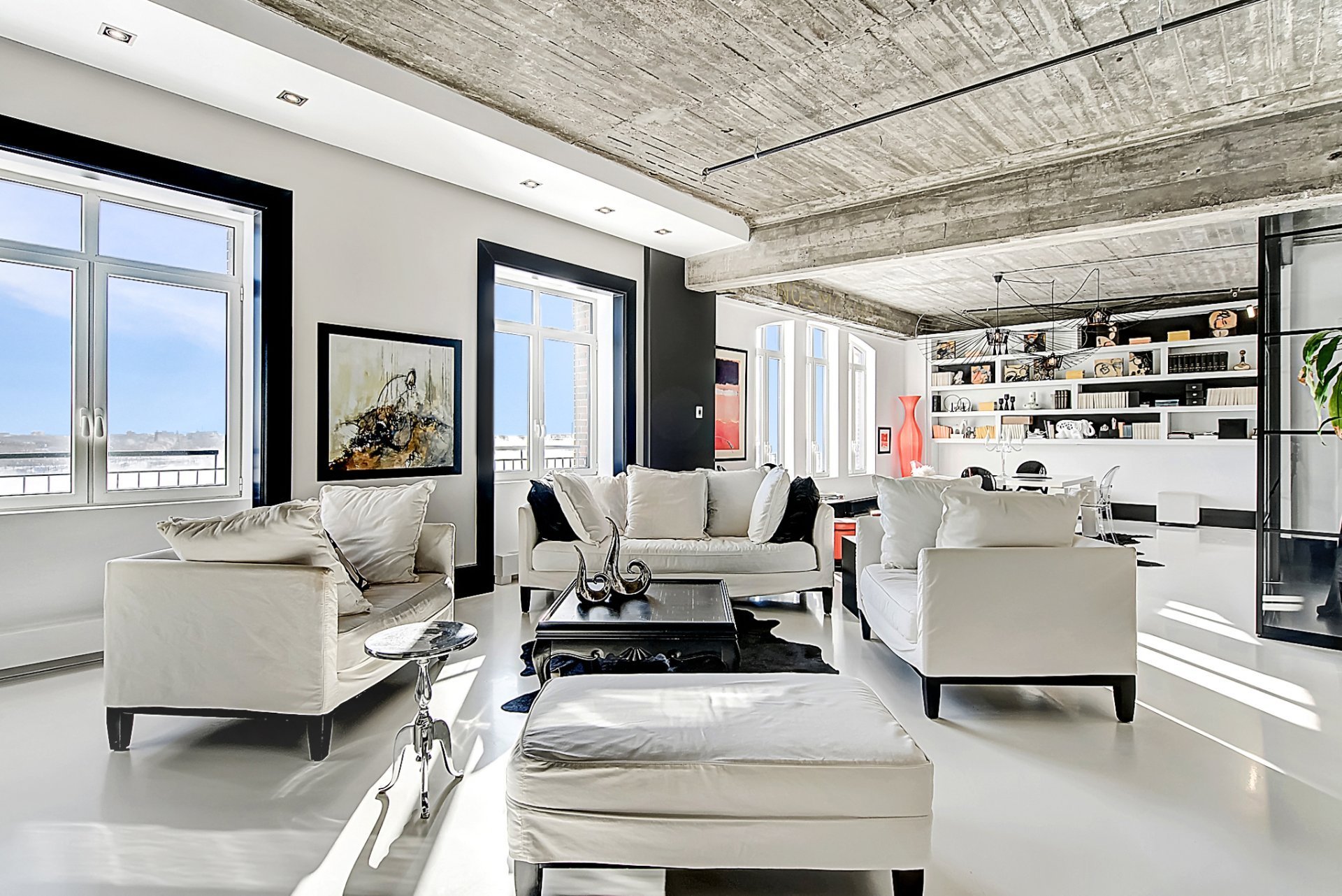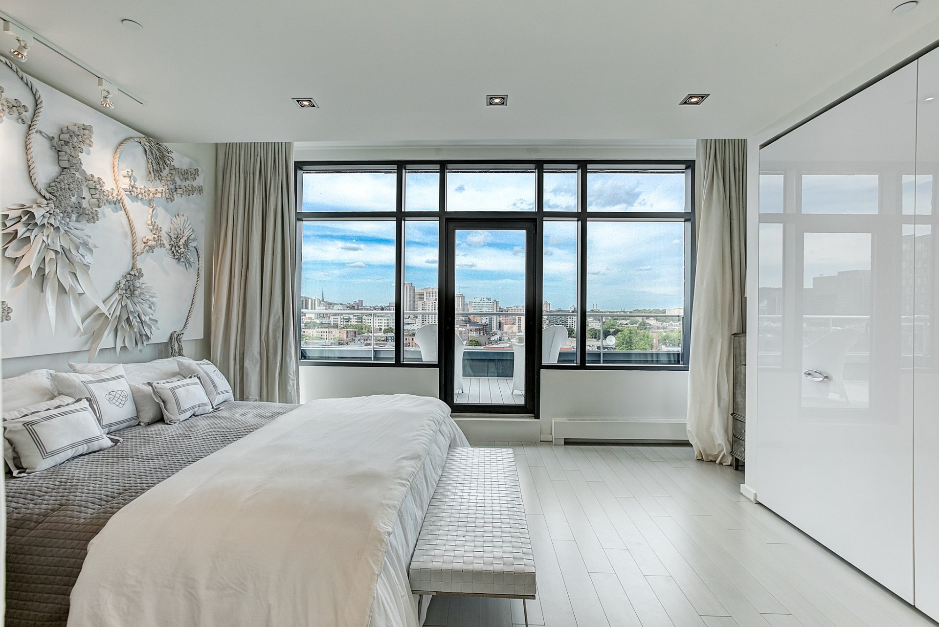 Discover an exceptional penthouse at the top of L'Héritage du Vieux-Port. Spanning five floors with a private elevator, it features a spectacular terrace offering panoramic views of the river, marina, and Mount Royal. The luxurious interior boasts a high-end kitchen and spa-style bathrooms. The property includes two distinct units with private entrances, offering a bi-generational option ideal for teenagers, parents, guests, or staff. Building amenities include a saltwater pool and spa. Ideally located in vibrant Old Montreal, with easy access to the airport.