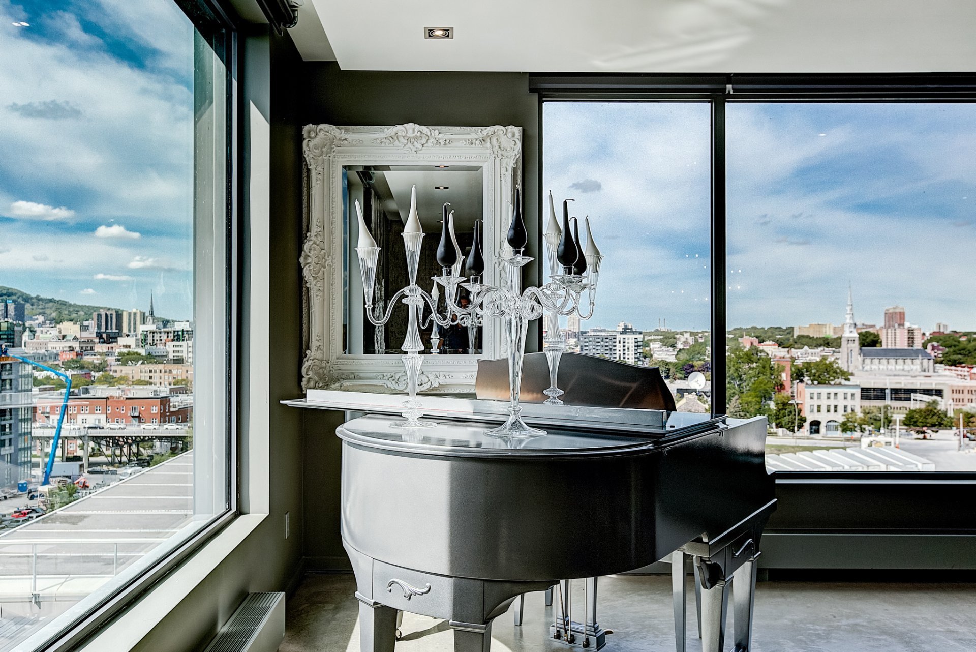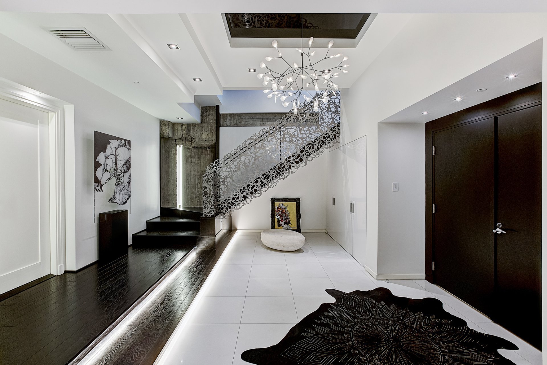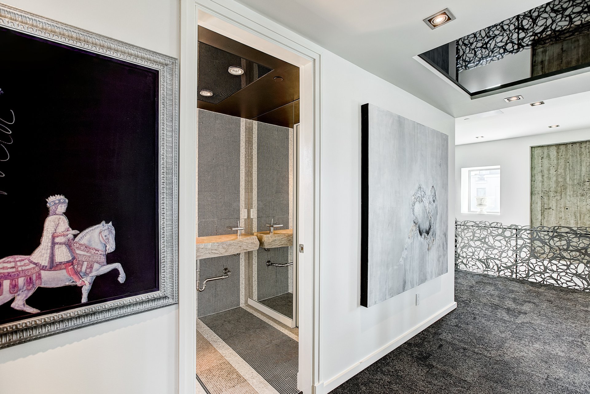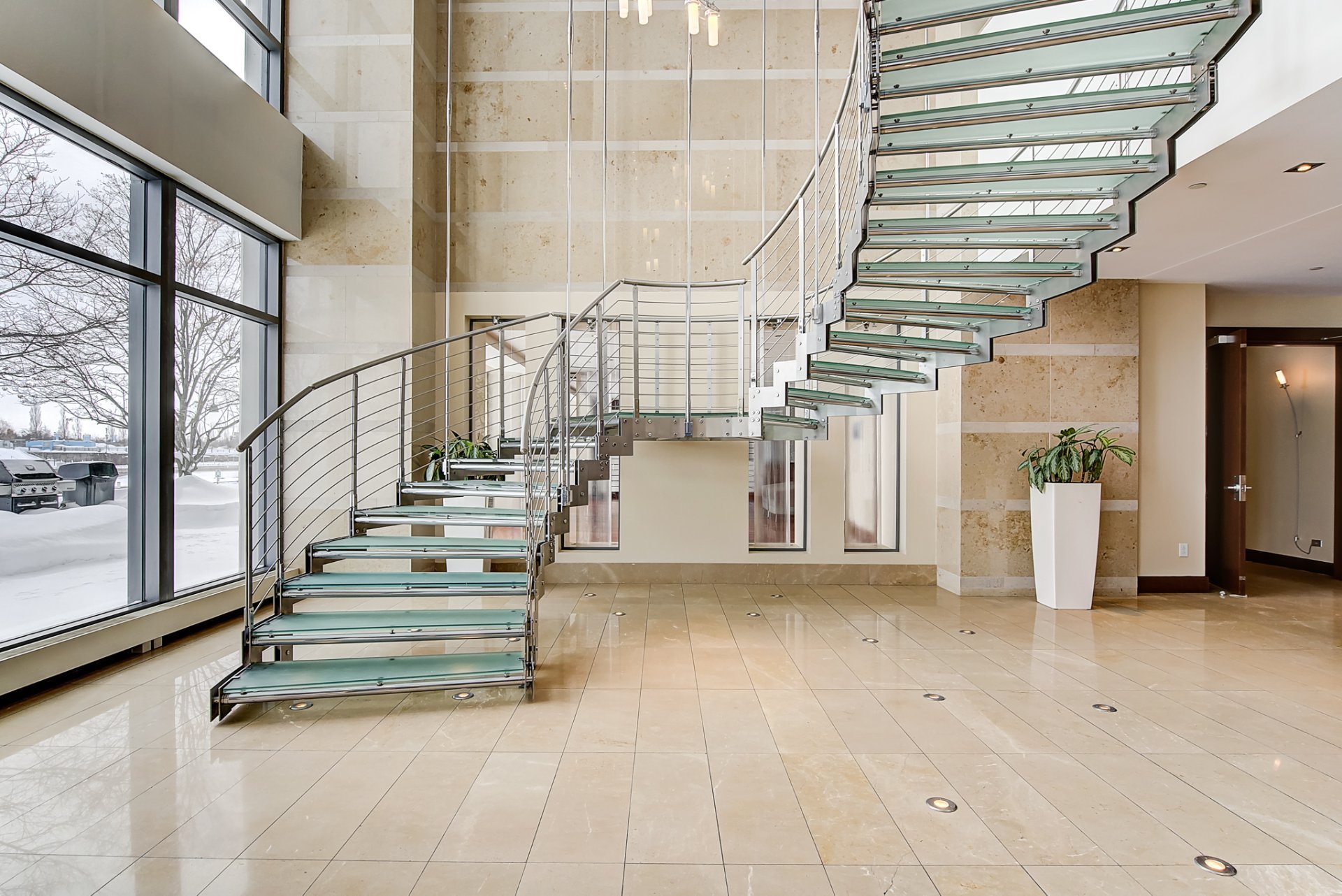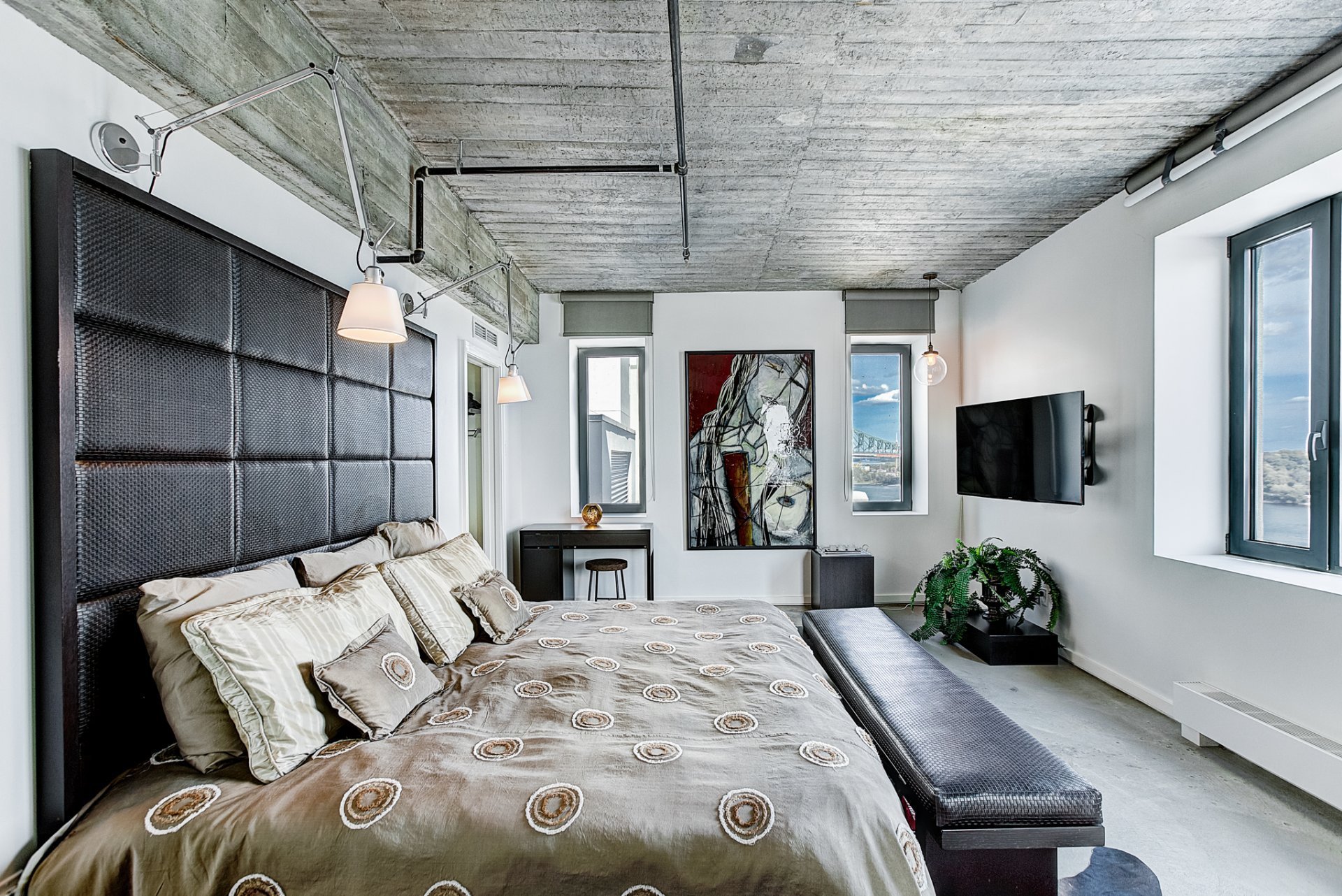 Discover an exceptional penthouse at the top of L'Héritage du Vieux-Port. Spanning five floors with a private elevator, it features a spectacular terrace offering panoramic views of the river, marina, and Mount Royal. The luxurious interior boasts a high-end kitchen and spa-style bathrooms. The property includes two distinct units with private entrances, offering a bi-generational option ideal for teenagers, parents, guests, or staff. Building amenities include a saltwater pool and spa. Ideally located in vibrant Old Montreal, with easy access to the airport.