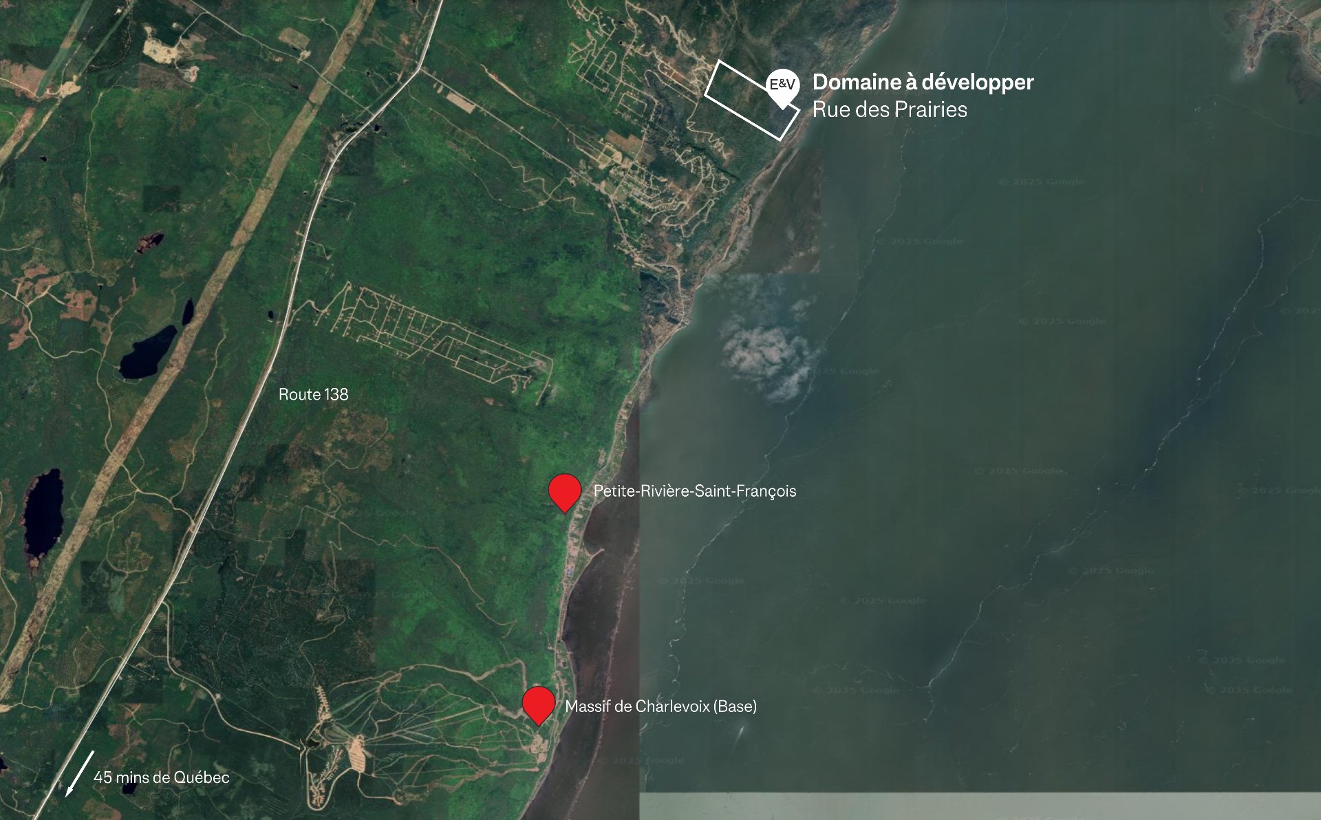 Stunning 9,383,002 sq. ft. property offering an exceptional development opportunity in the heart of Charlevoix's breathtaking nature. The site allows for the creation of 20 exclusive luxury estates designed for a discerning clientele, each offering breathtaking views of the St. Lawrence River and surrounding mountains. Ideally located just minutes from Le Massif de Charlevoix, snowmobile trails, hiking and mountain biking paths. A rare site to realize a signature real estate project in perfect harmony with nature. Development support services available. (Riverside access project underway for future residents.)