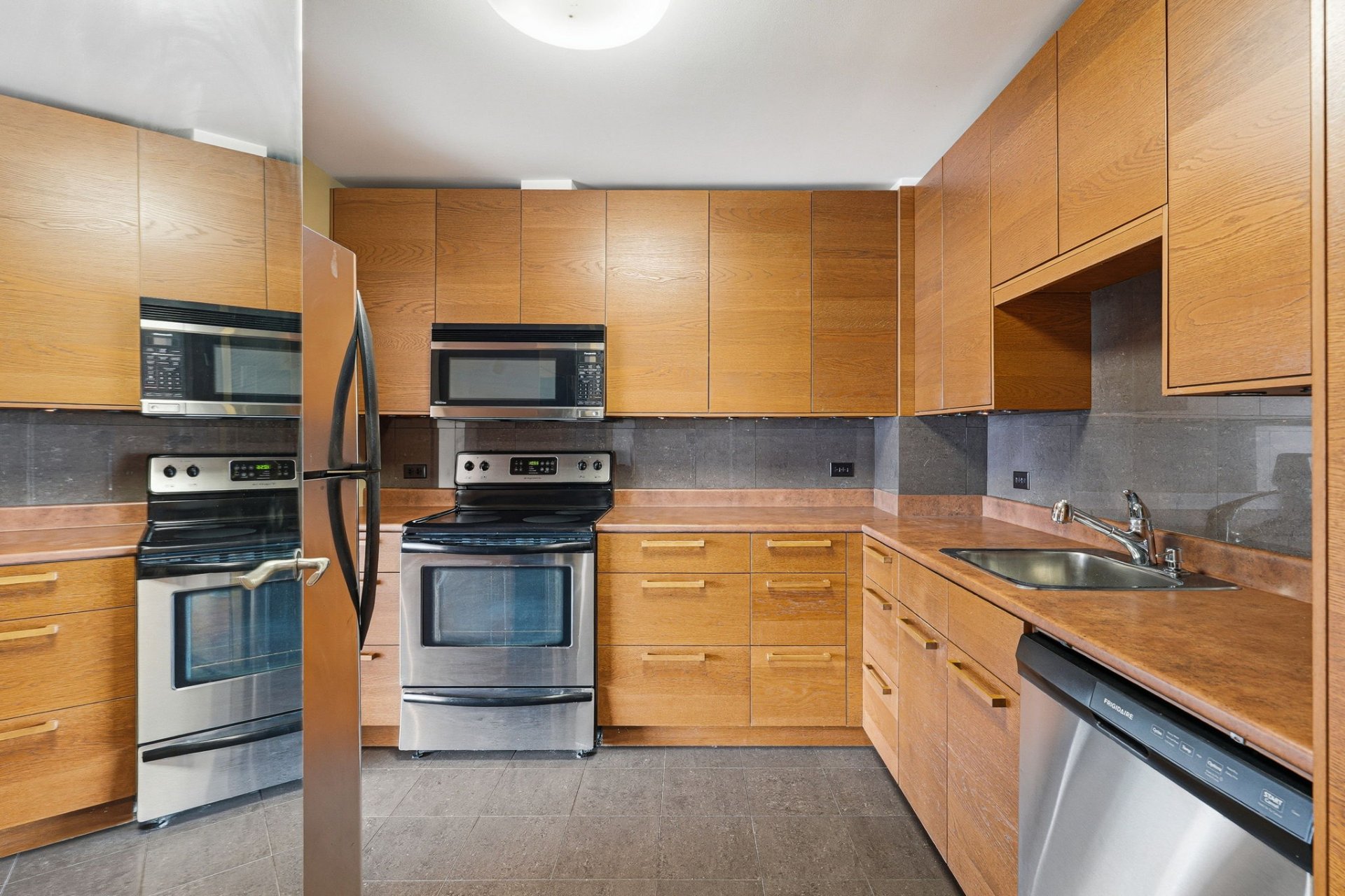 - All light fixtures, all window treatments, Frigidaire refrigerator, stove and dishwasher, microwave.