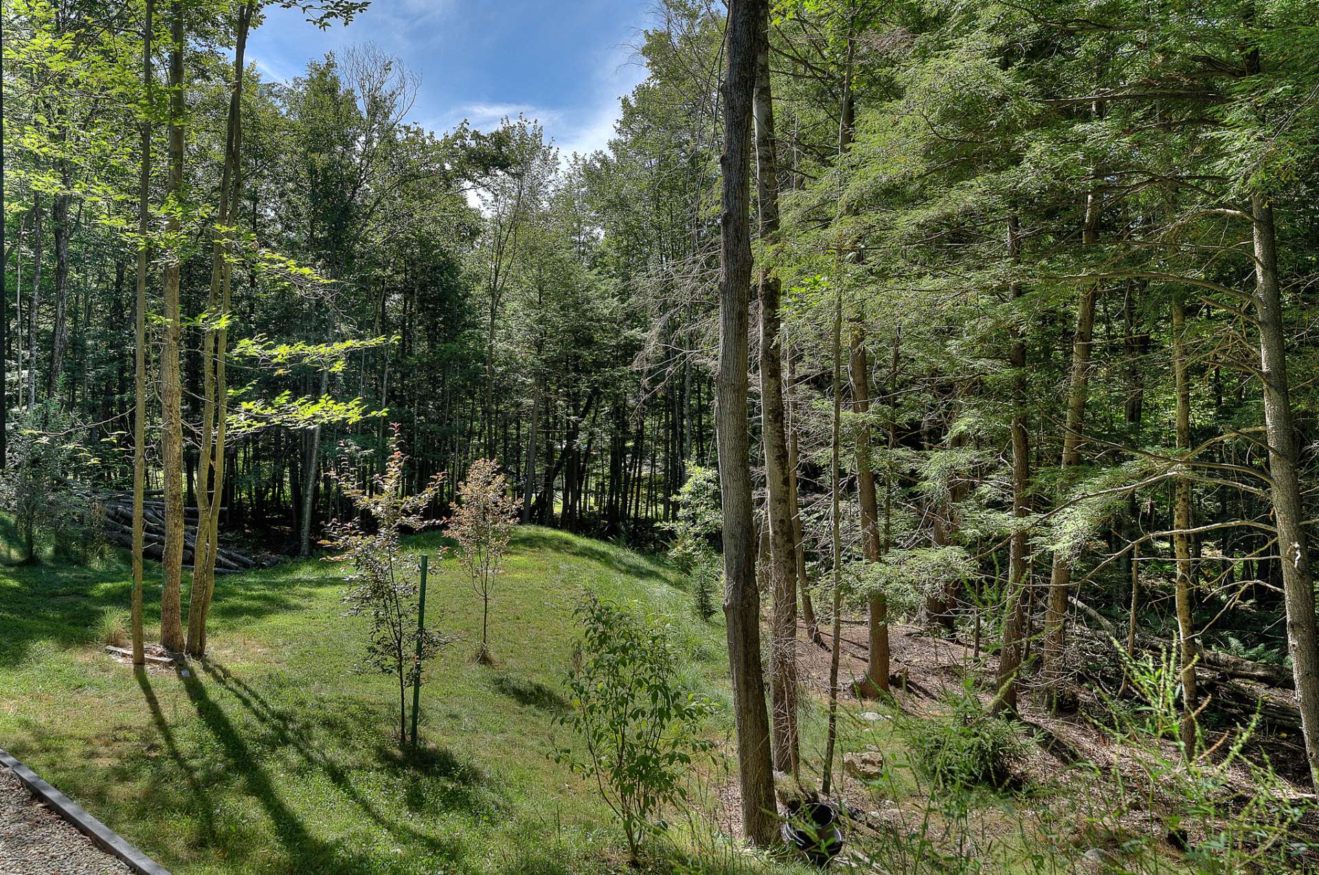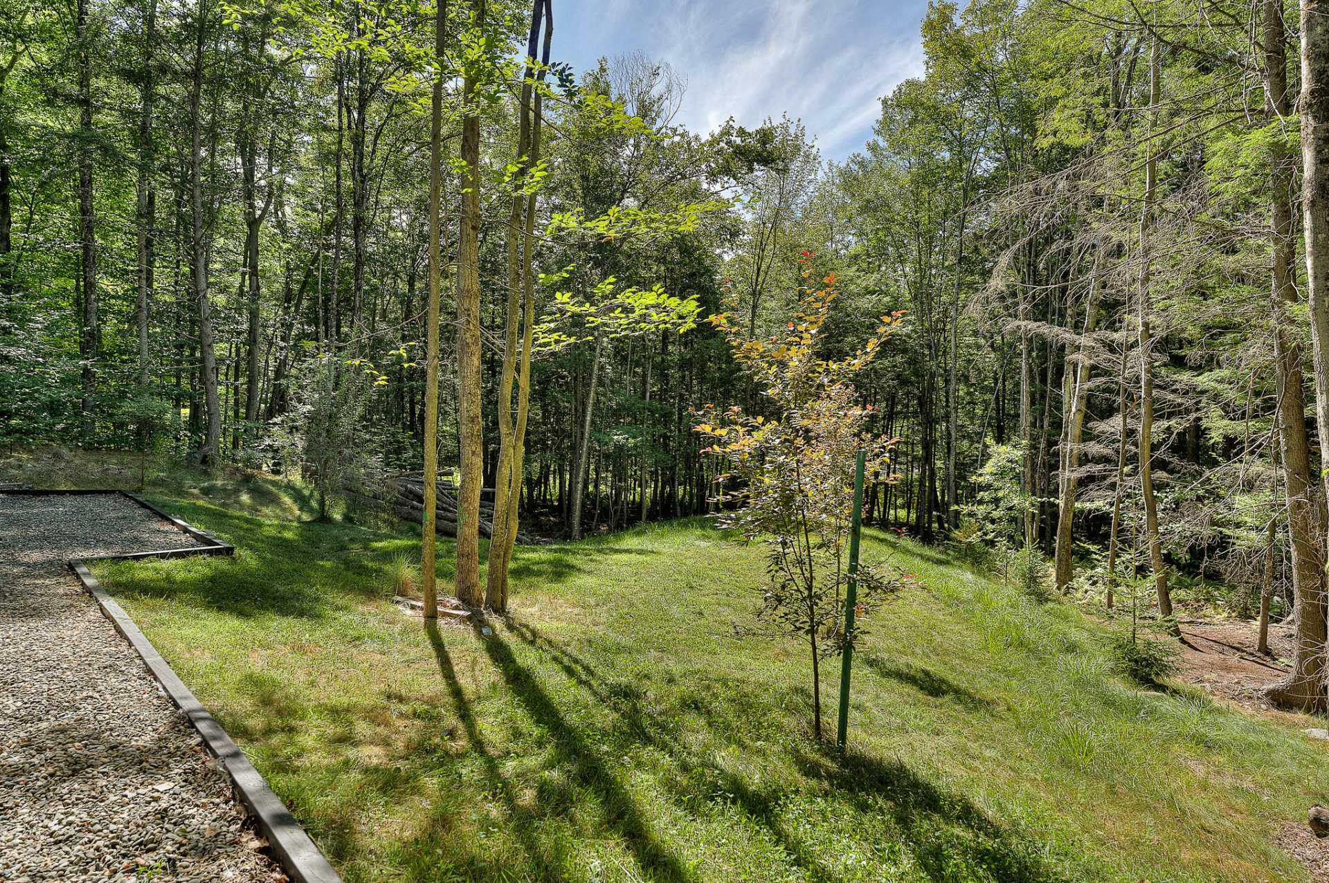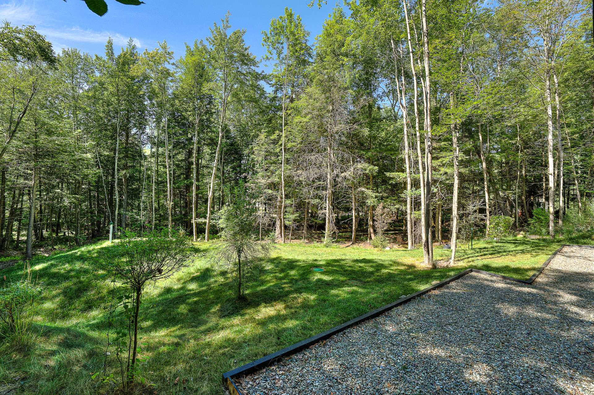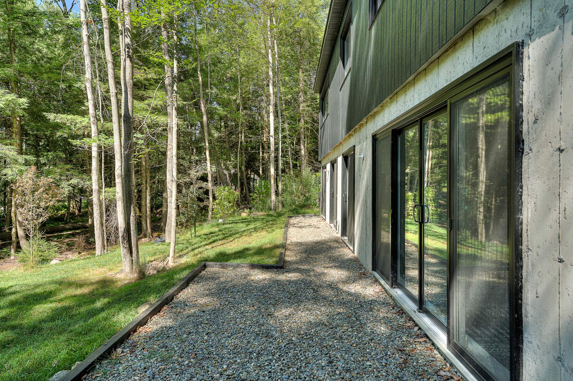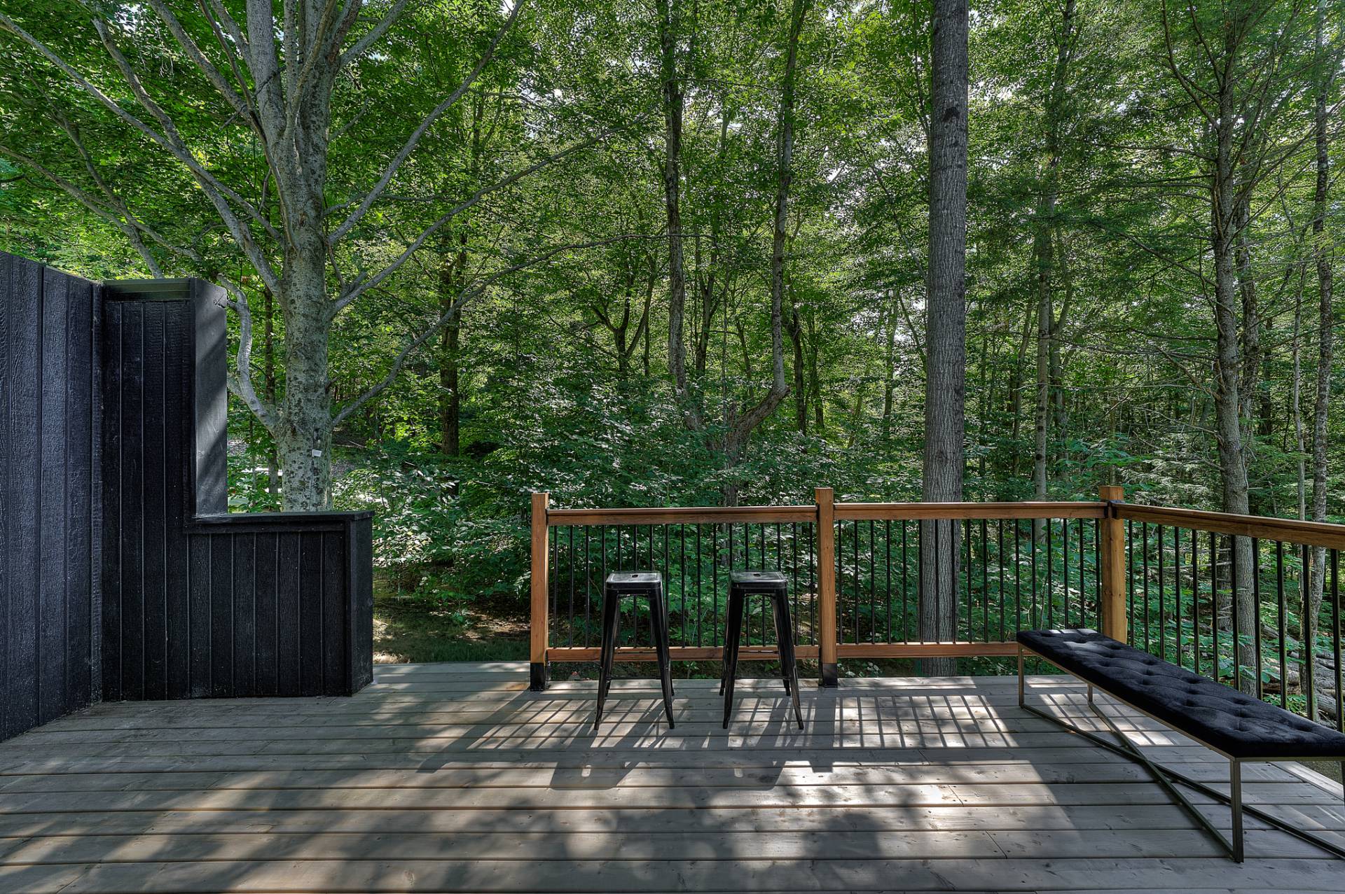 Outdoors, the large wooden deck allows you to fully enjoy the beautiful days, surrounded by greenery and tranquility. The private estate offers its residents a small lake as well as hiking trails, perfect for outdoor enthusiasts.