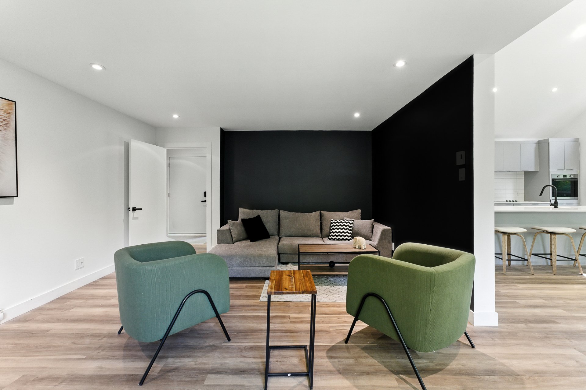 Located in the heart of Domaine Mon-Louis, this elegant Scandinavian home with black siding offers 4 bedrooms, 2 bathrooms, and 1 powder room. Its open concept, large windows, and light-filled garden-level basement create a warm and modern setting. Halfway between the picturesque village of Sutton and the ski mountain, enjoy a sought-after setting with trails and a private lake nearby.