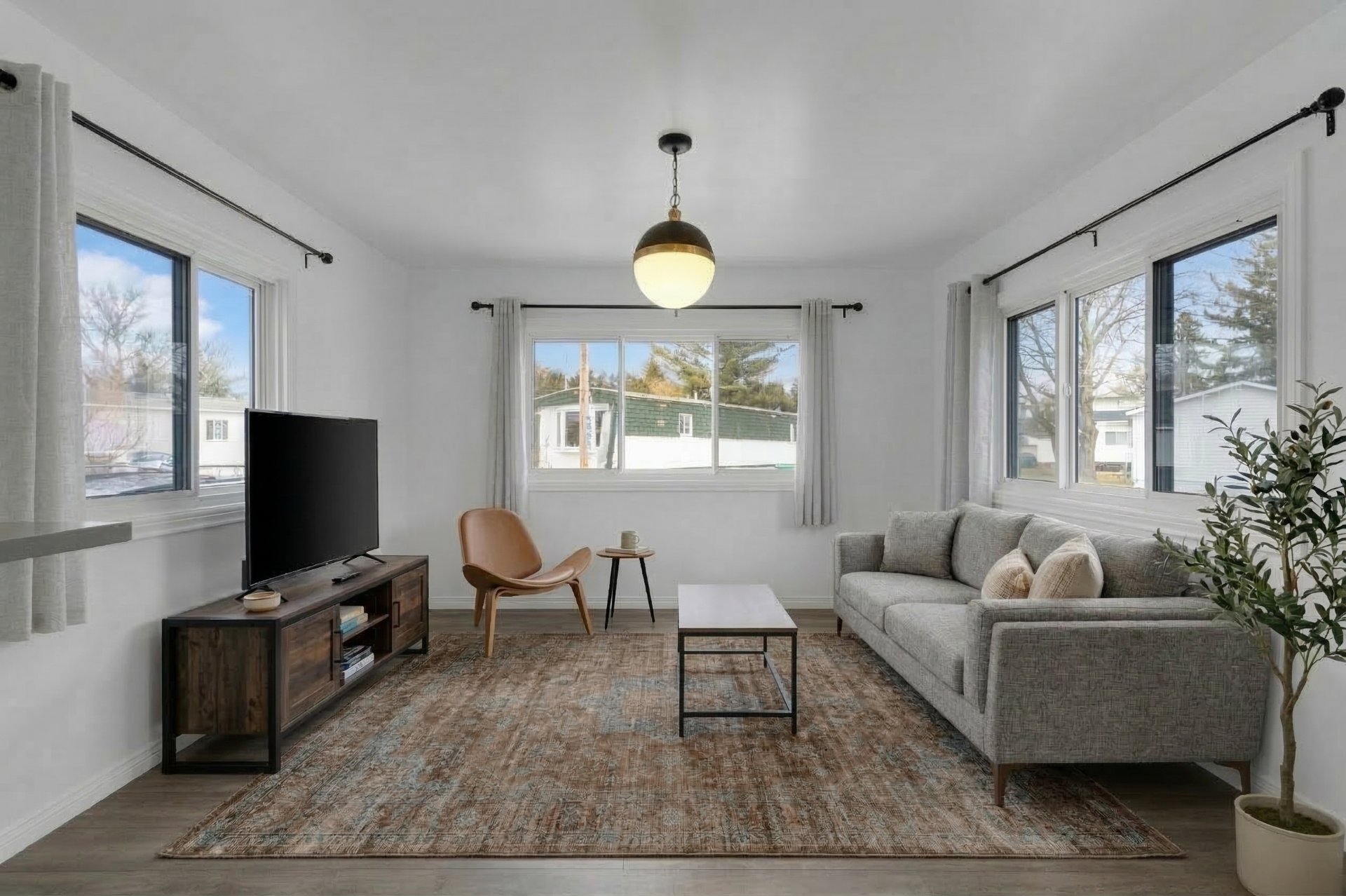 Bright, updated mobile-home featuring an open-concept living/dining/kitchen and abundant natural light. The kitchen boasts white cabinetry and stainless appliances. Enjoy a renovated bathroom, convenient laundry, and a large covered porch. Includes 2 parking spots. Land rent is $398/mo (municipal water/sewer). Offers conditional on landowner credit check and approval. *Please note some photos have been virtually staged*