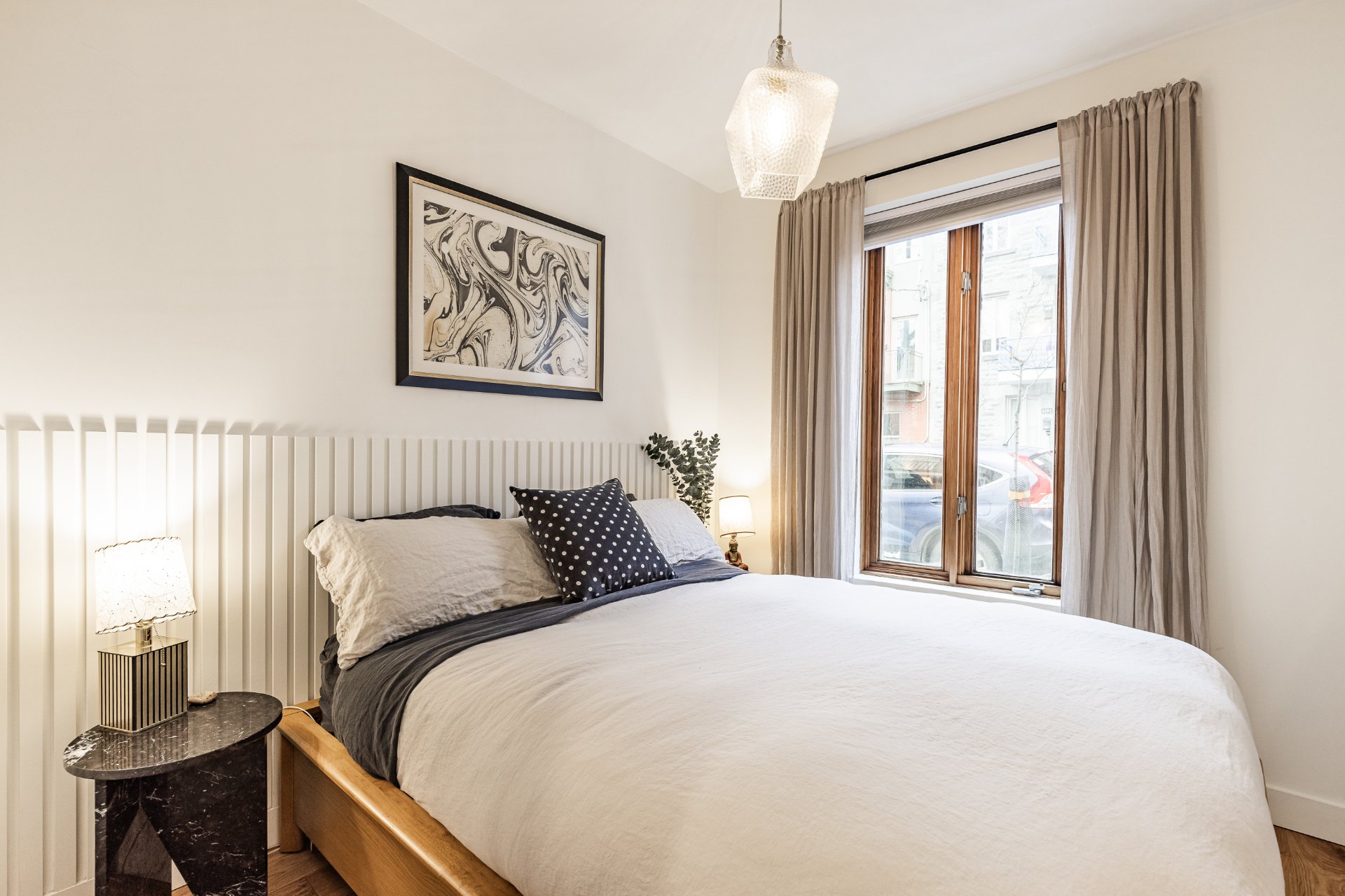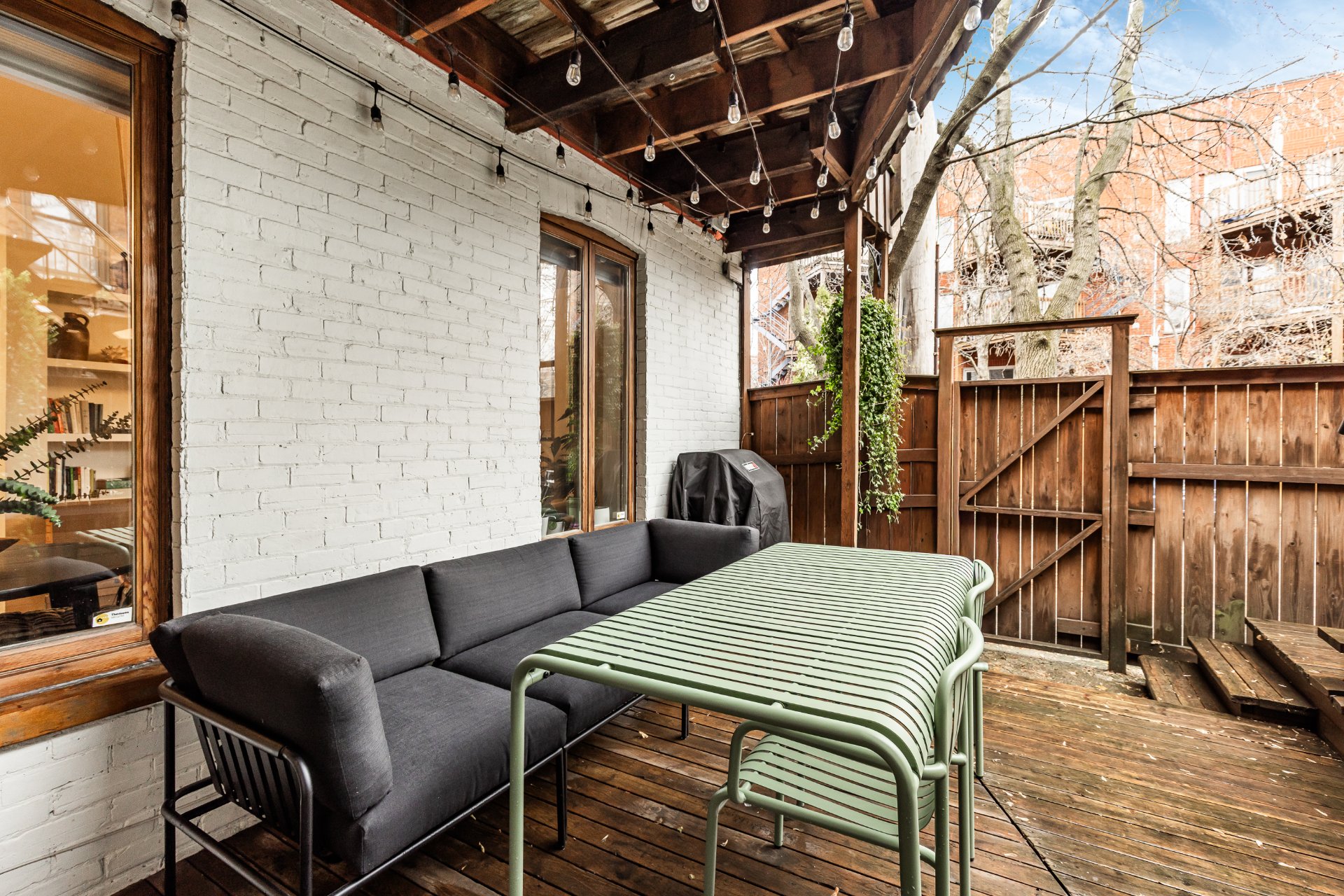 Fully renovated unit with high-end materials, offering 3 closed bedrooms and 2 modern bathrooms. Friendly kitchen with breakfast counter, cozy living room with ethanol fireplace and individually controlled heated floors. Custom storage and bright rooms thanks to large windows. Intimate landscaped backyard to enjoy the outdoors. Exceptional location steps from La Fontaine Park, Mont-Royal metro and lively shops. Ideal for family or urban living.