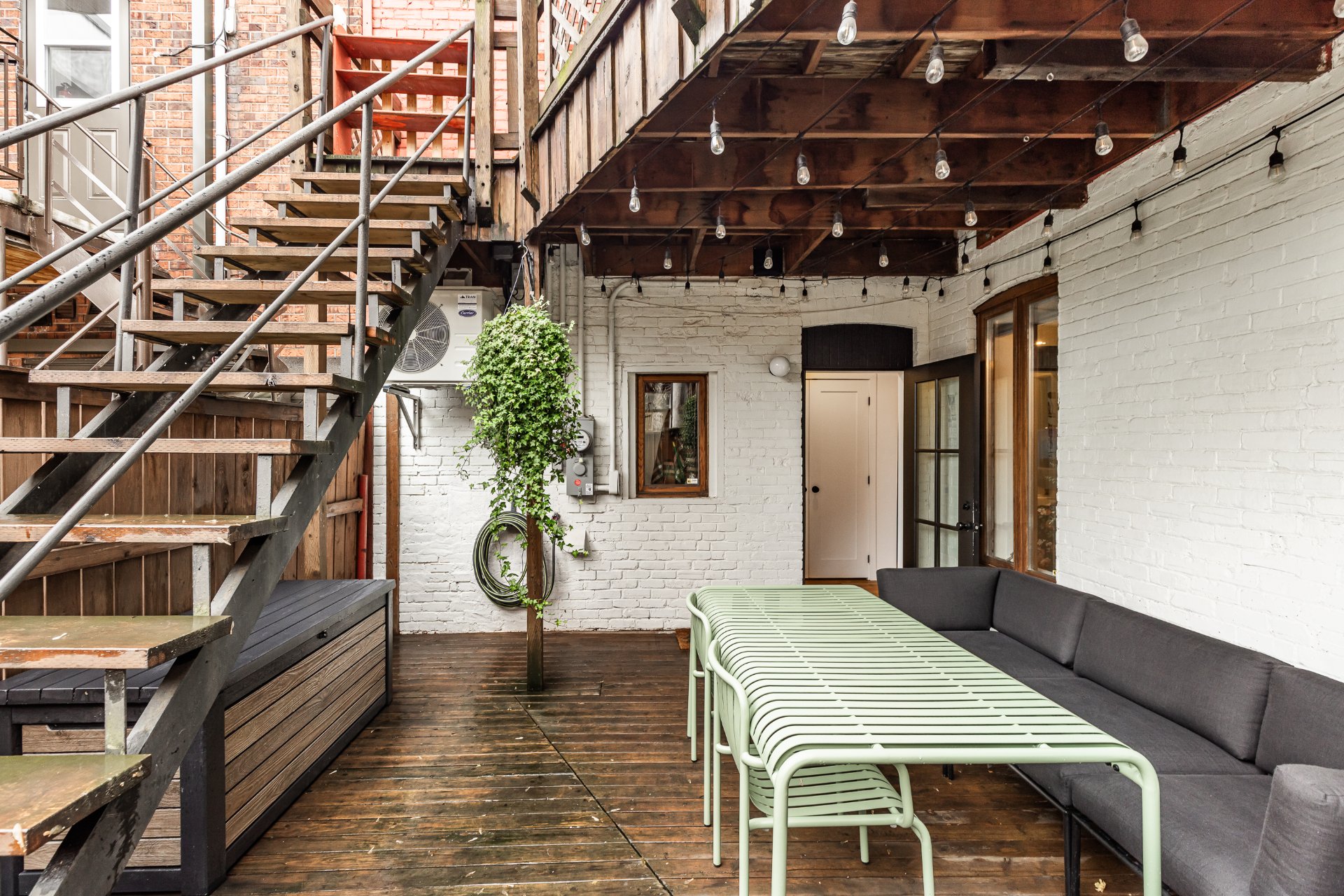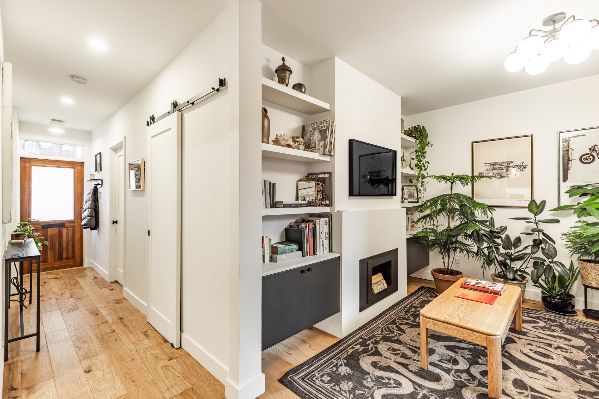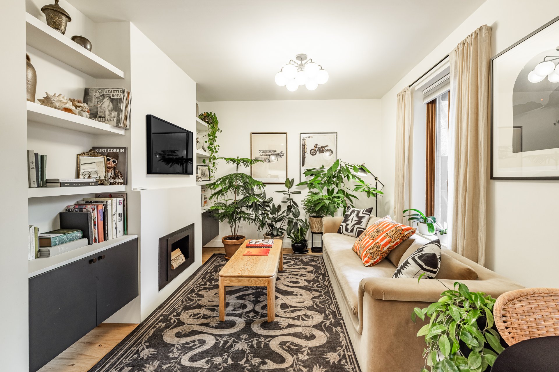 Stunning, fully renovated unit featuring high-end materials, offering exceptional comfort with an ethanol fireplace and smart thermostat-controlled heated floors in every room. The thoughtful layout provides both privacy and functionality, along with plenty of built-in storage. Enjoy a private backyard--perfect for relaxing outdoors.