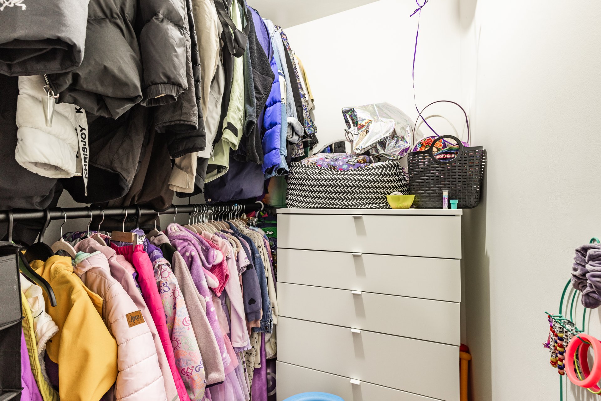 Primary bedroom featuring a spacious closet and a modern ensuite bathroom.