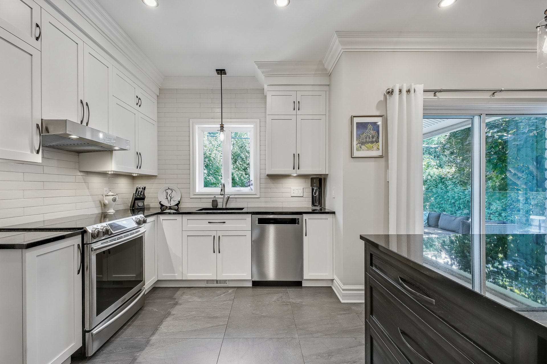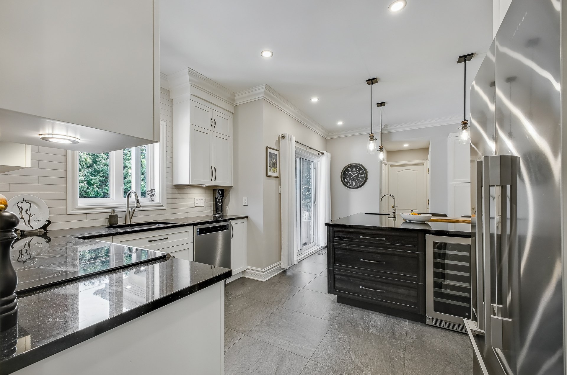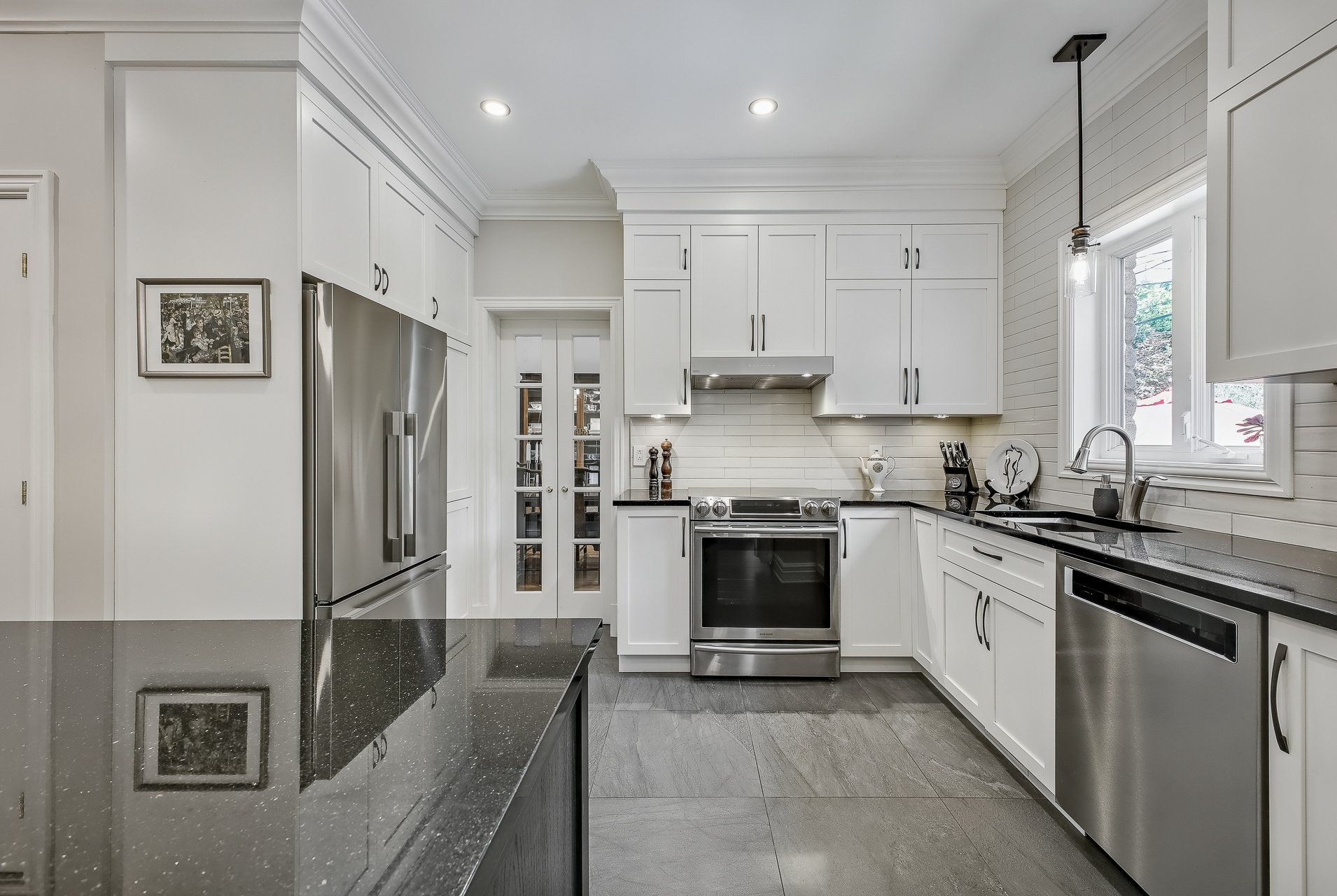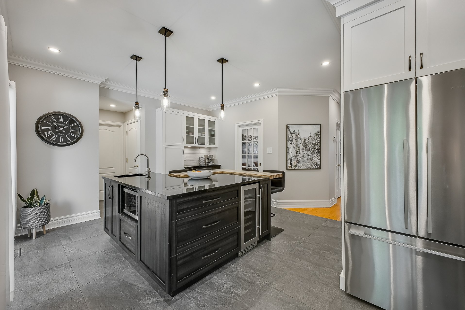 Le rez-de-chaussée à aire ouverte met en valeur deux salons accueillants, un foyer au gaz chaleureux, ainsi qu'une cuisine moderne et élégante, repensée avec des matériaux haut de gamme, incluant un comptoir de granit et des armoires offrant beaucoup de rangement. Le sous-sol aménagé procure un espace supplémentaire idéal pour une salle familiale, un bureau ou une aire de jeux. Partout dans la maison, la qualité des matériaux et l'attention portée aux détails assurent un confort durable et une esthétique intemporelle.