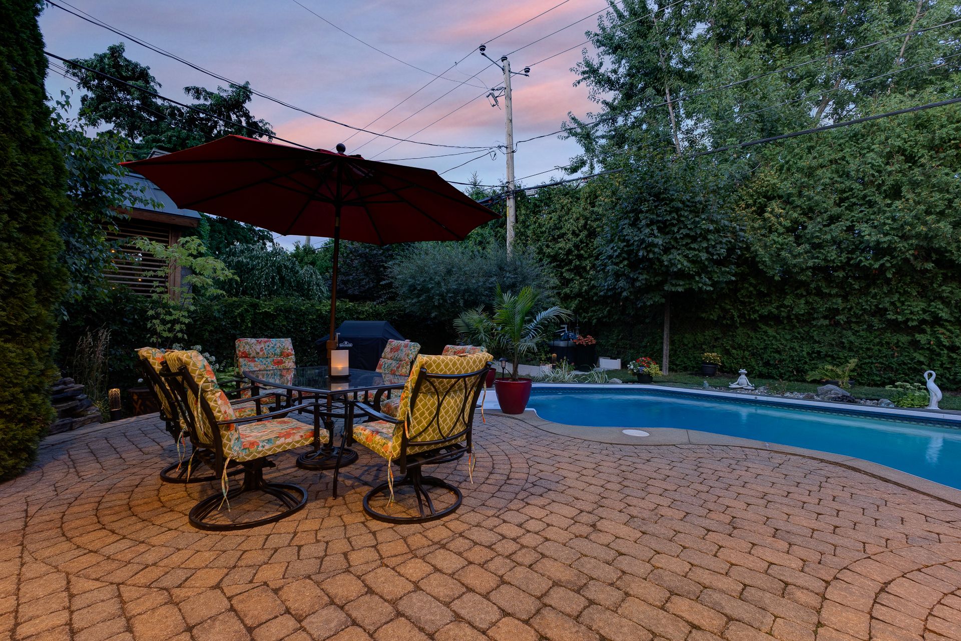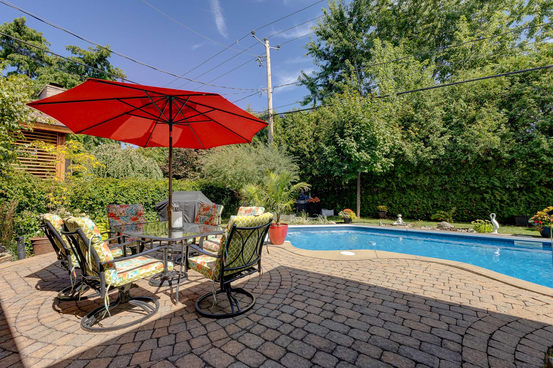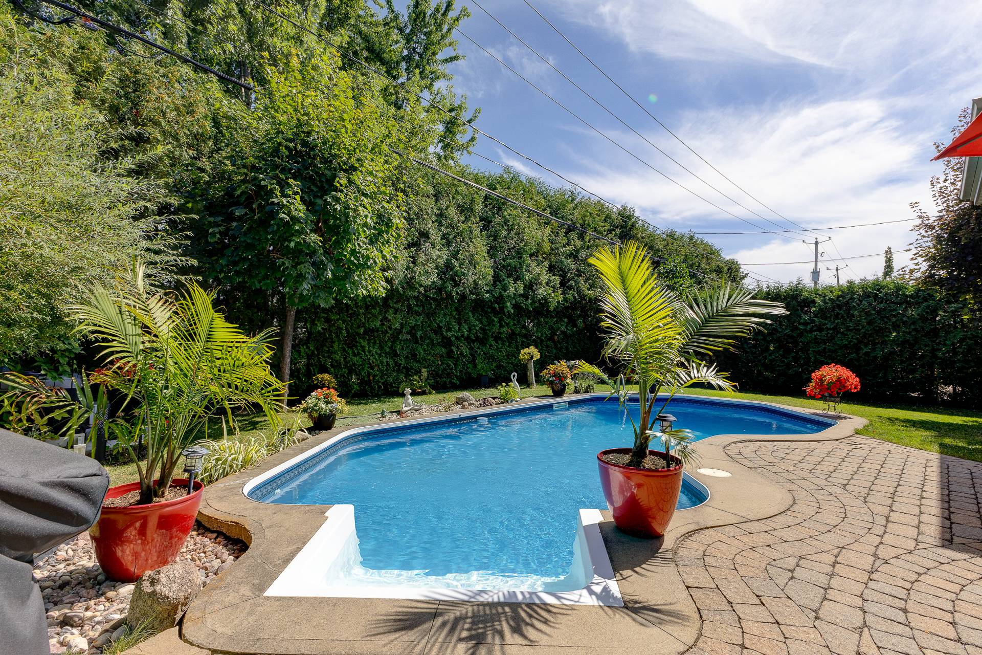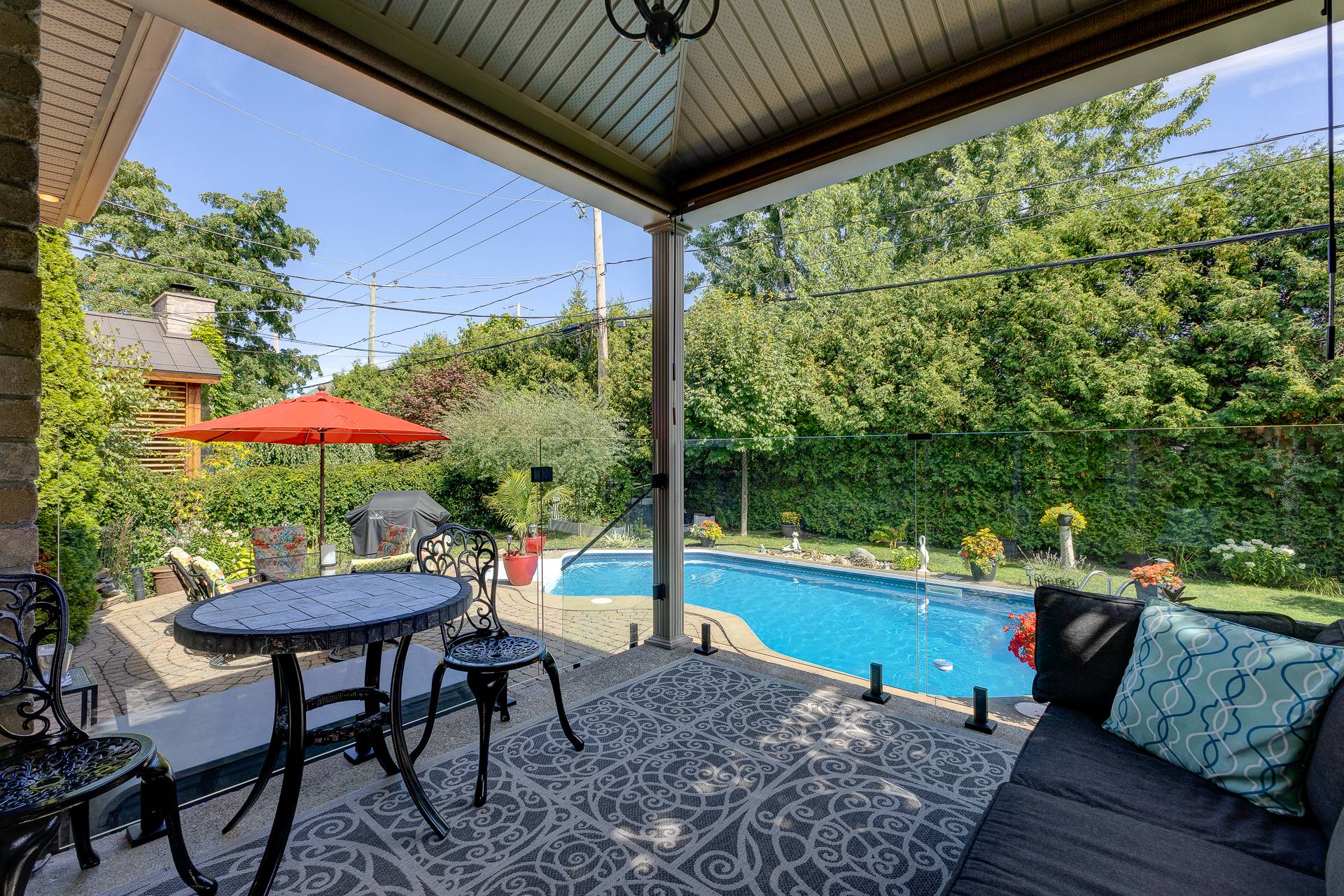 À l'extérieur, la cour arrière est un véritable atout. Avec sa terrasse couverte, son pavé uni, sa piscine creusée avec équipements récents et son aménagement paysager soigné, elle invite à la détente et aux rassemblements en toute convivialité.