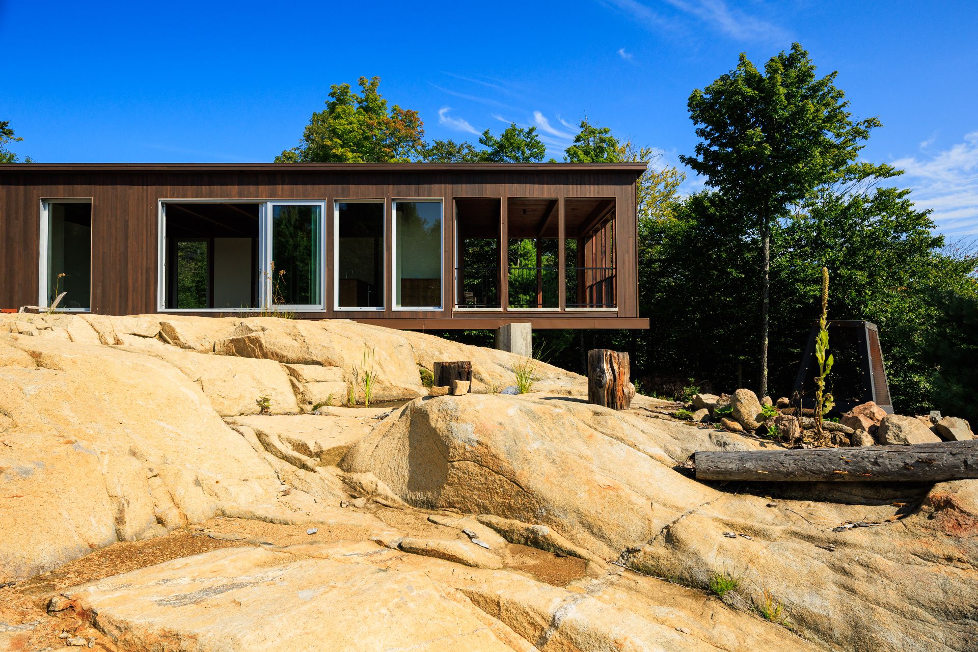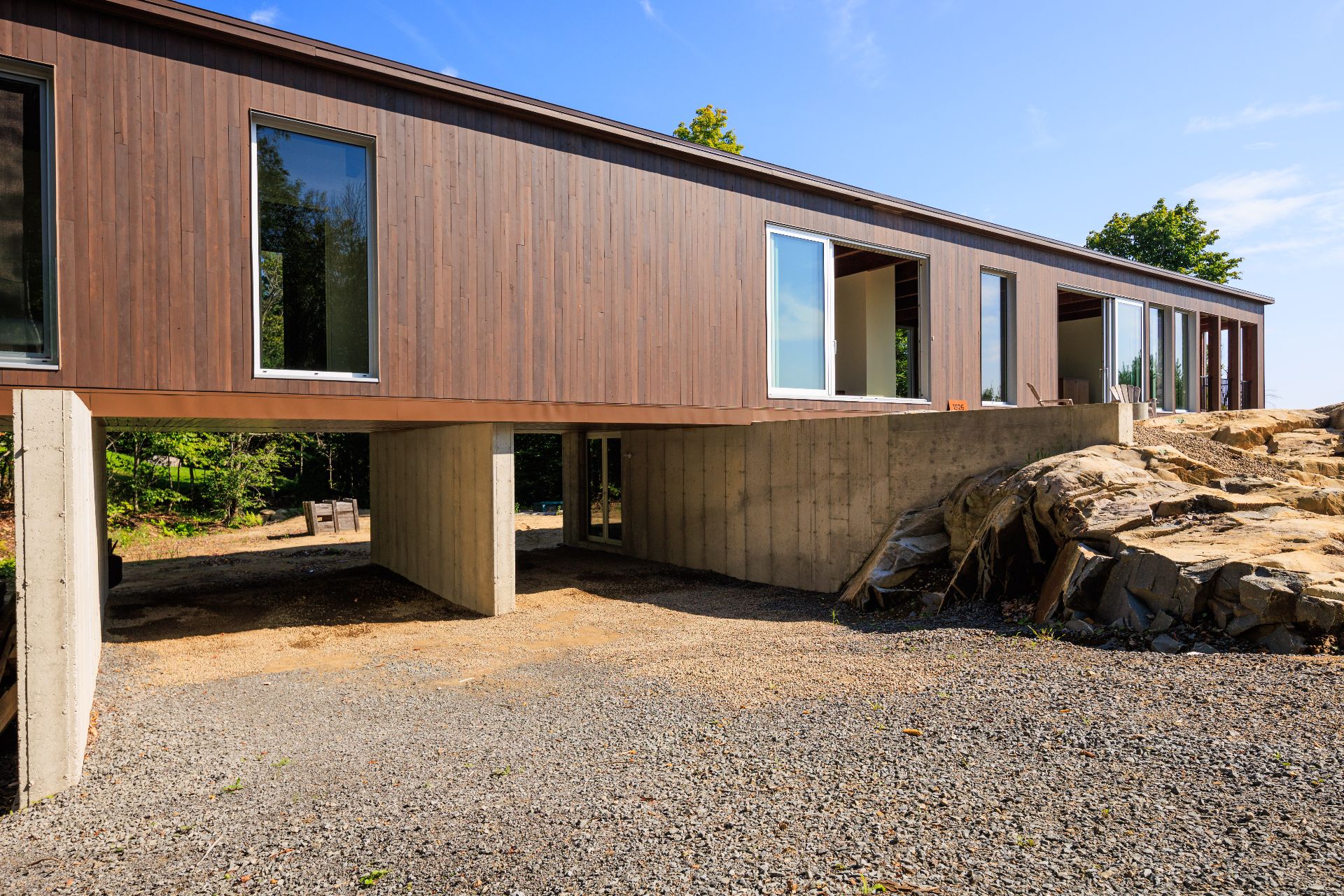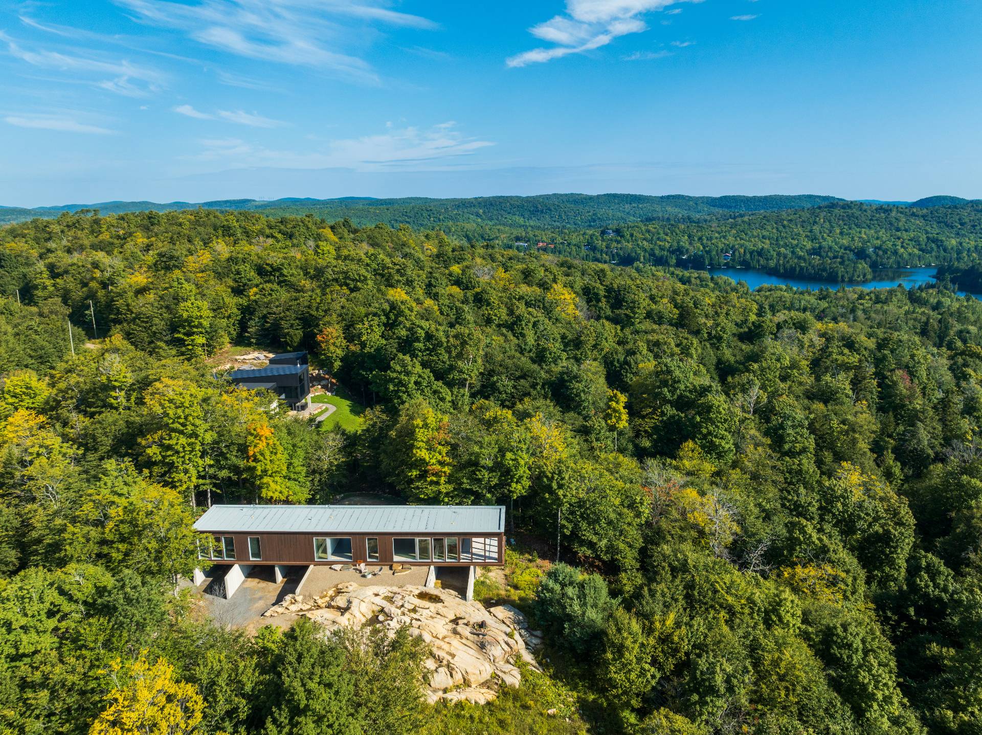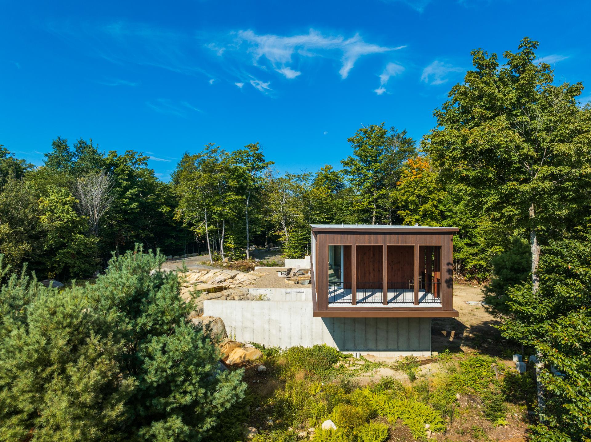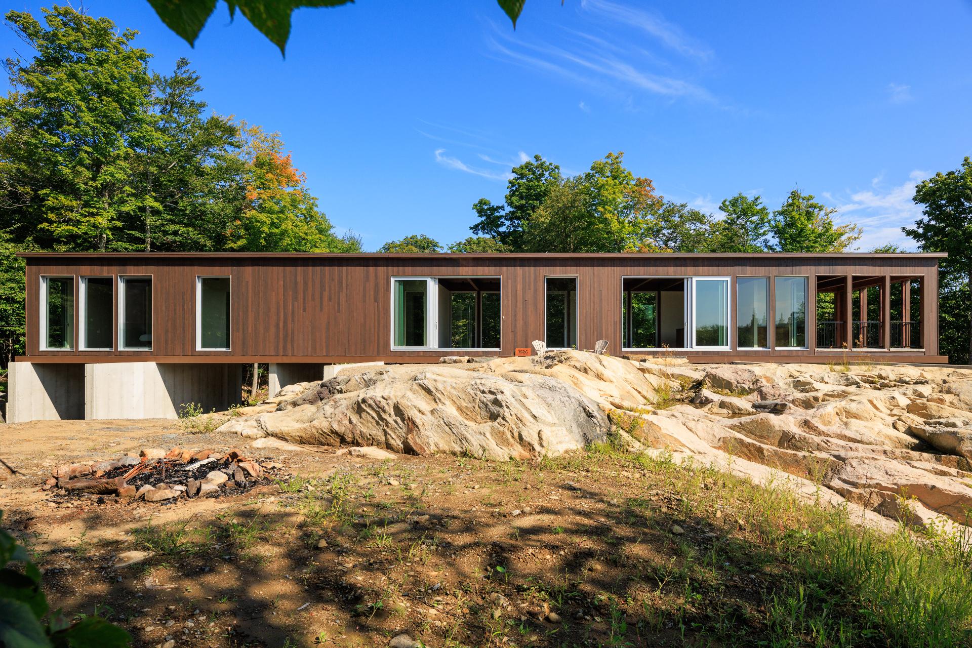 Projet architectural d'exception signé Alain Carle (Atelier Carle) avec OVI Construction, cette résidence contemporaine s'intègre harmonieusement à un cap rocheux en montagne. Offrant des vues dégagées et une lumière naturelle évolutive, elle propose un vaste séjour ouvert sur l'extérieur grâce à de grandes baies coulissantes. Volumes maîtrisés, matériaux nobles et lignes épurées créent une ambiance à la fois puissante et apaisante. Accès au lac Notre-Dame avec quais, sentiers directement sur le terrain. À 1h30 de Montréal et 20 min de Morin-Heights, un équilibre rare entre nature et accessibilité.