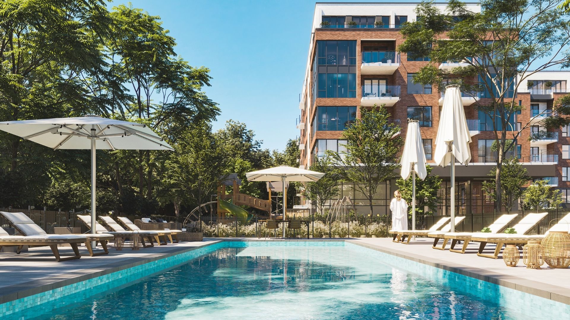 Le Quartier Dalia offre également des espaces communs conviviaux, tels qu'un lobby lumineux, un gym moderne, des espaces de télétravail, une salle de réception et une grande terrasse extérieure. La cour intérieure verdoyante, véritable coeur du projet, invite à la détente et aux rencontres sociales. Les installations extérieures comprennent piscine, aire de jeux pour enfants, parc à chiens, sentiers et jardins communautaires, favorisant un mode de vie actif et enrichissant.