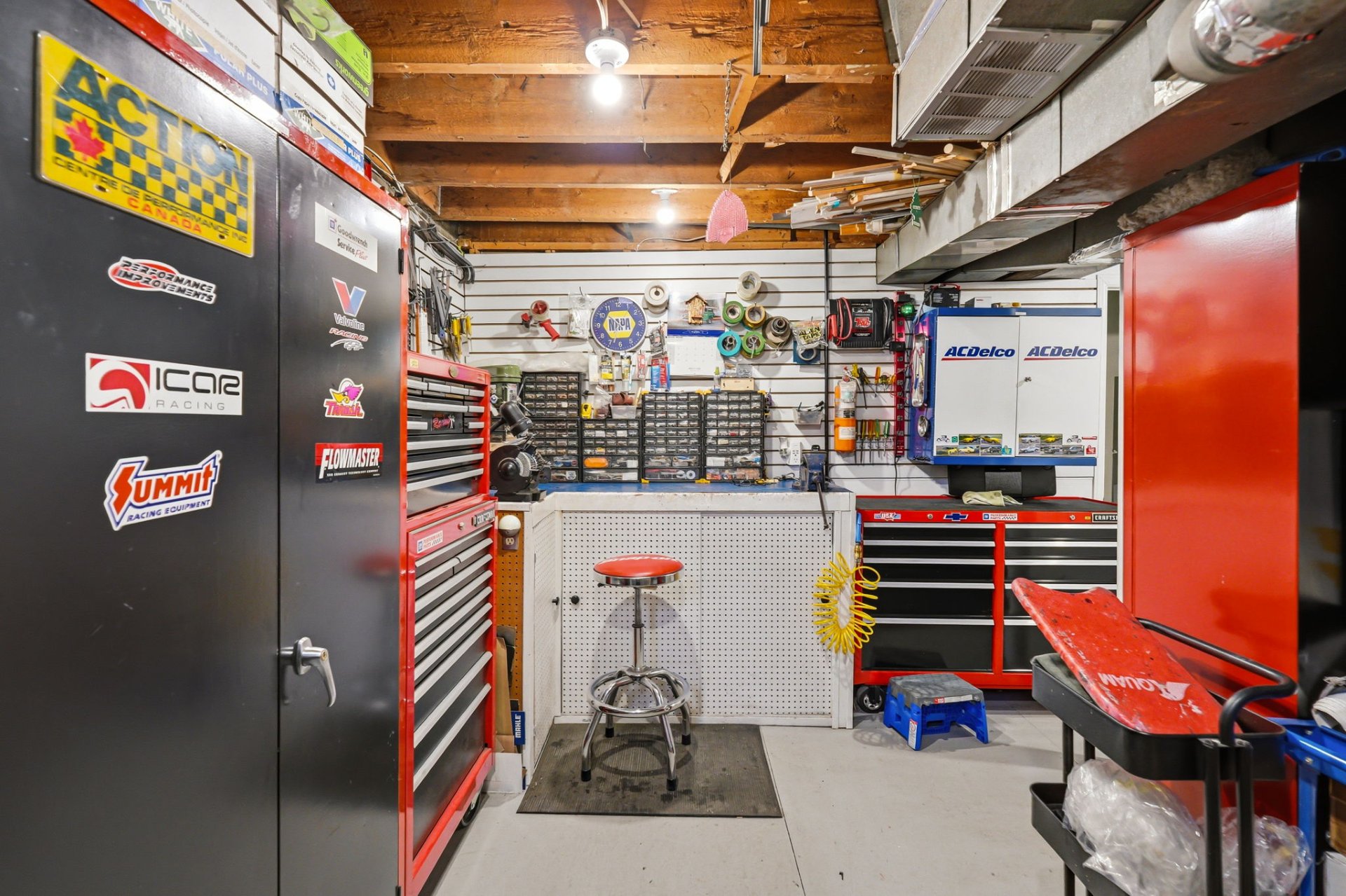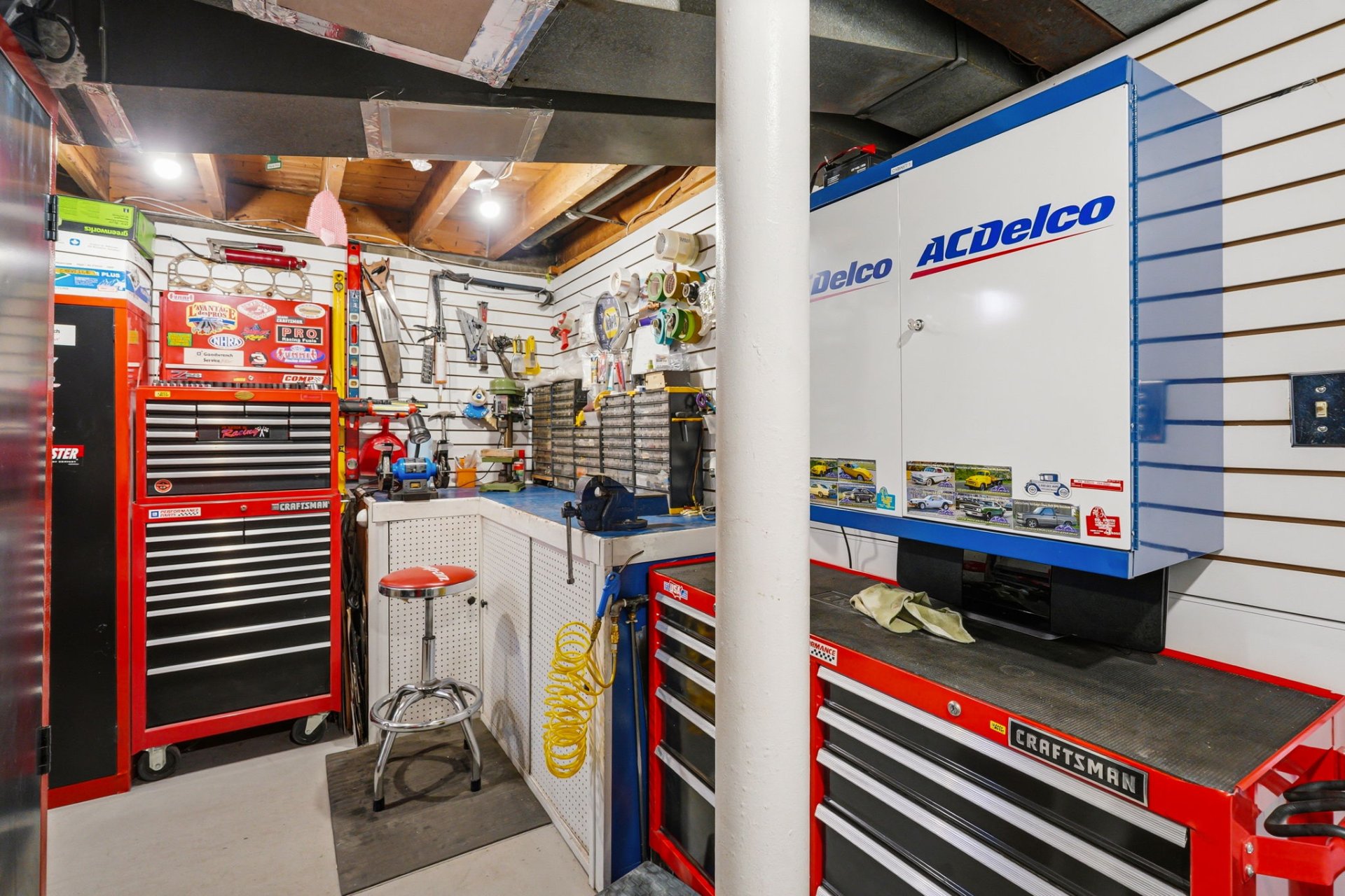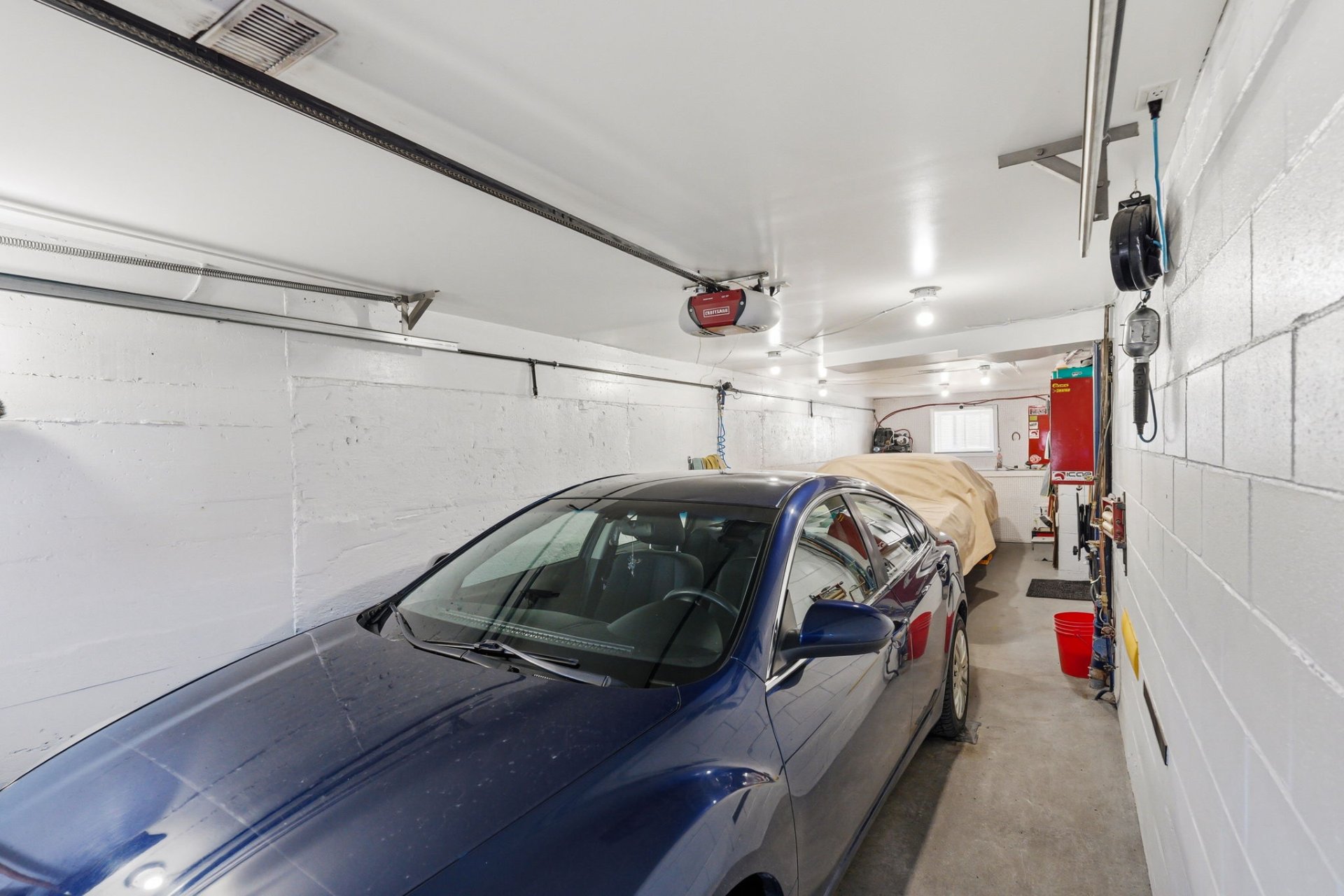 La propriété dispose d'un garage intégré pouvant accueillir deux voitures, avec un espace atelier au garage ainsi qu'un deuxième espace atelier, idéal pour les bricoleurs ou projets personnels.