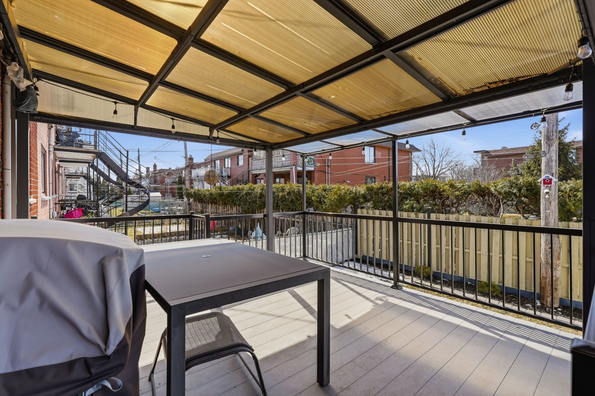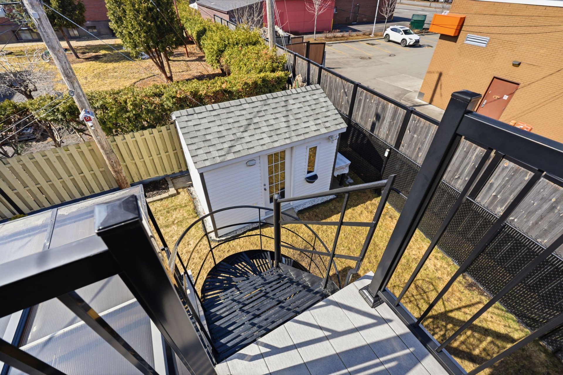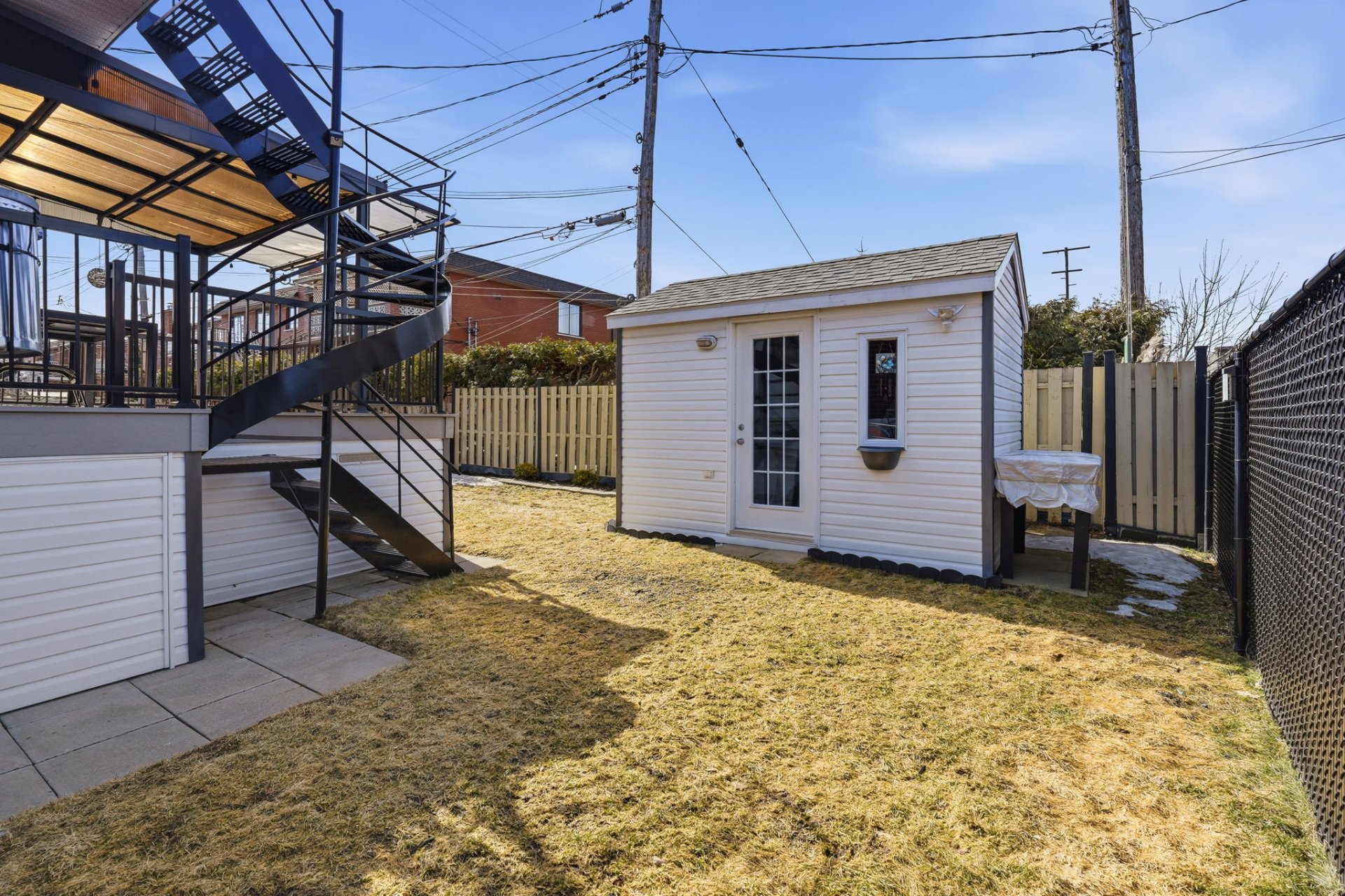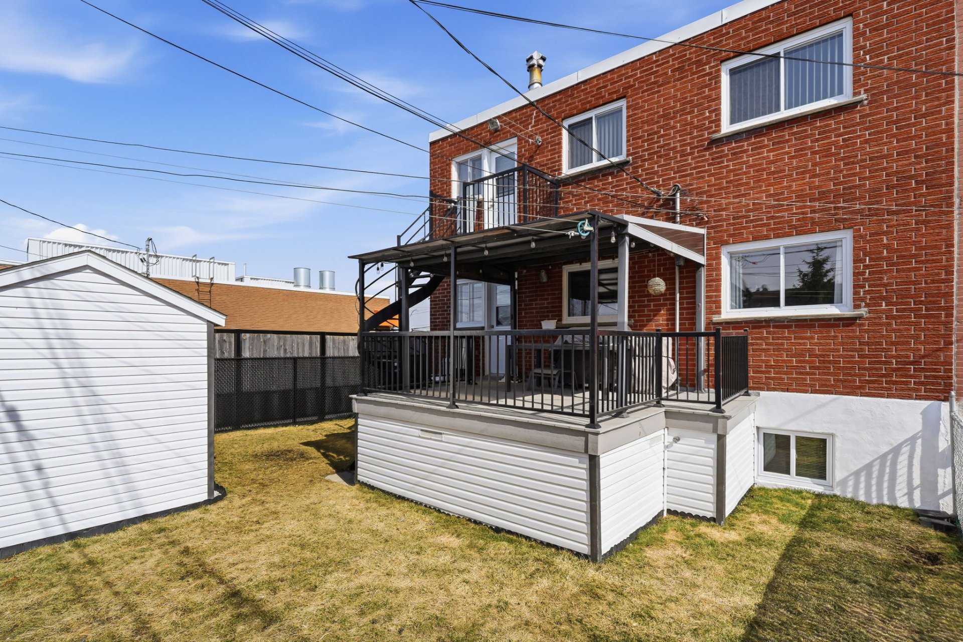 À l'extérieur, profitez d'une cour aménagée avec terrasse et cabanon, parfaite pour les beaux jours.