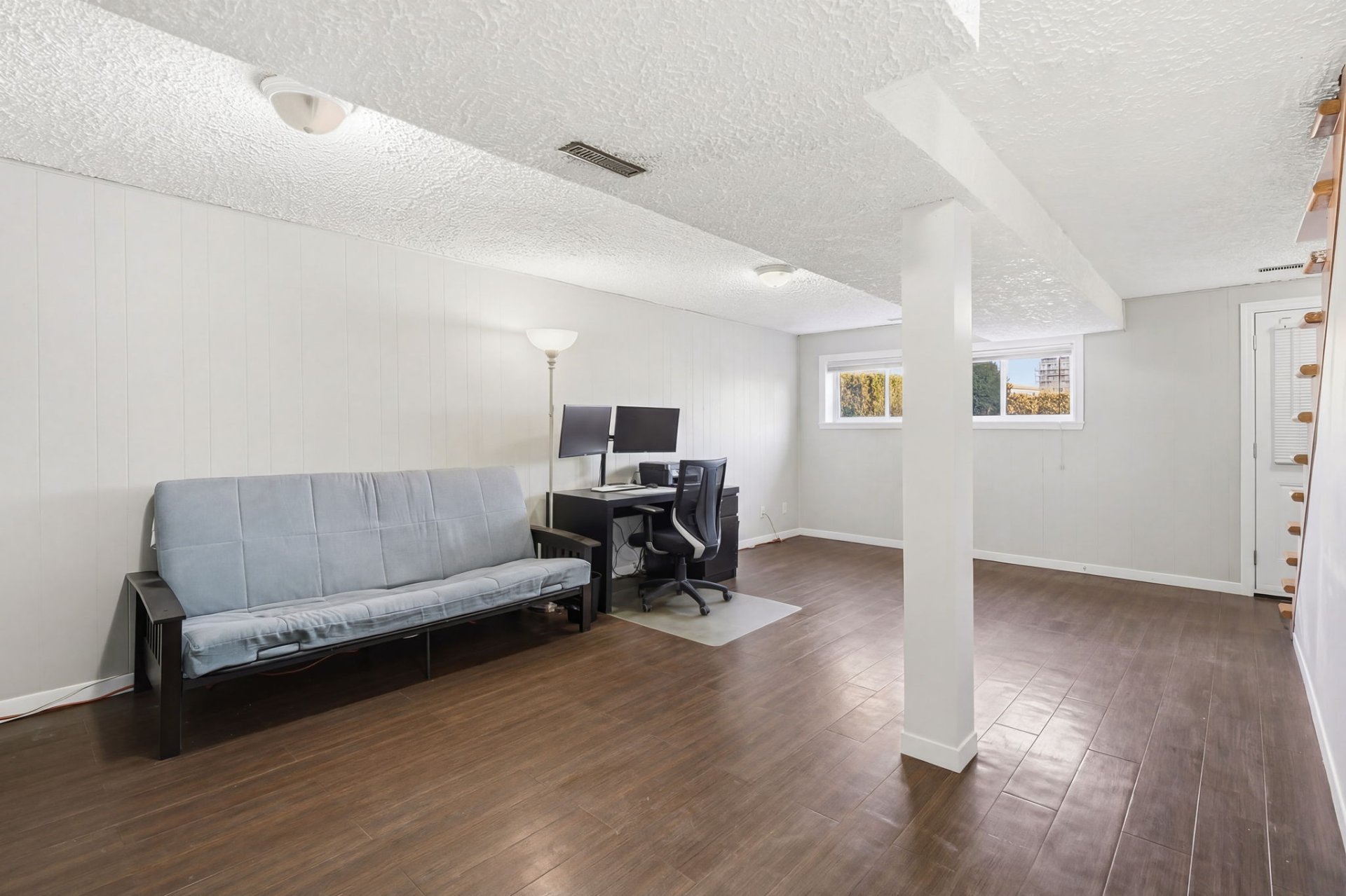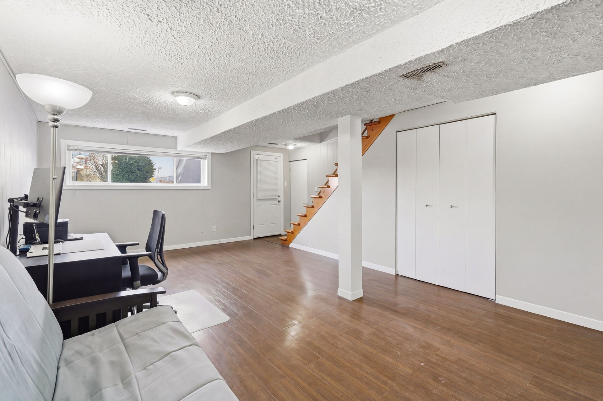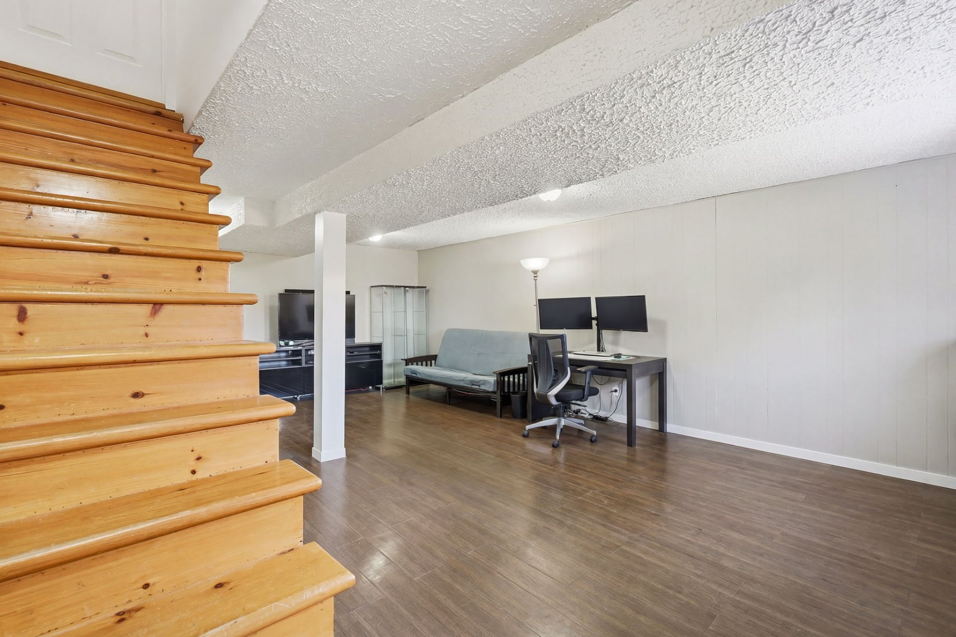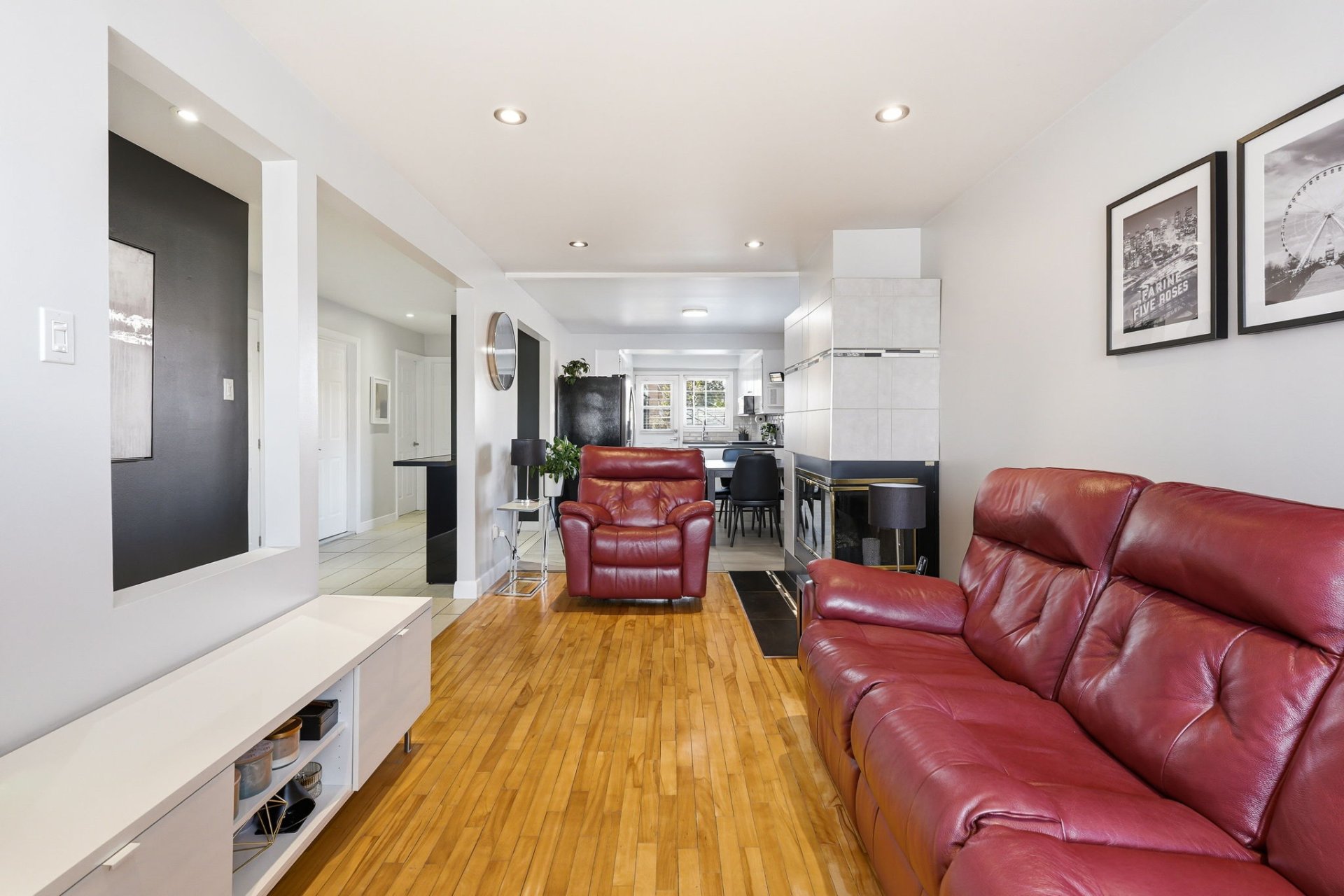 Le rez-de-chaussée, entièrement rénové au goût du jour, propose un espace de vie ouvert, moderne et baigné de lumière naturelle. Vous y trouverez 3 chambres à coucher ainsi qu'une salle de bains élégante. Le sous-sol ajoute une valeur appréciable avec un vaste espace polyvalent, incluant atelier, chambre froide et rangement.