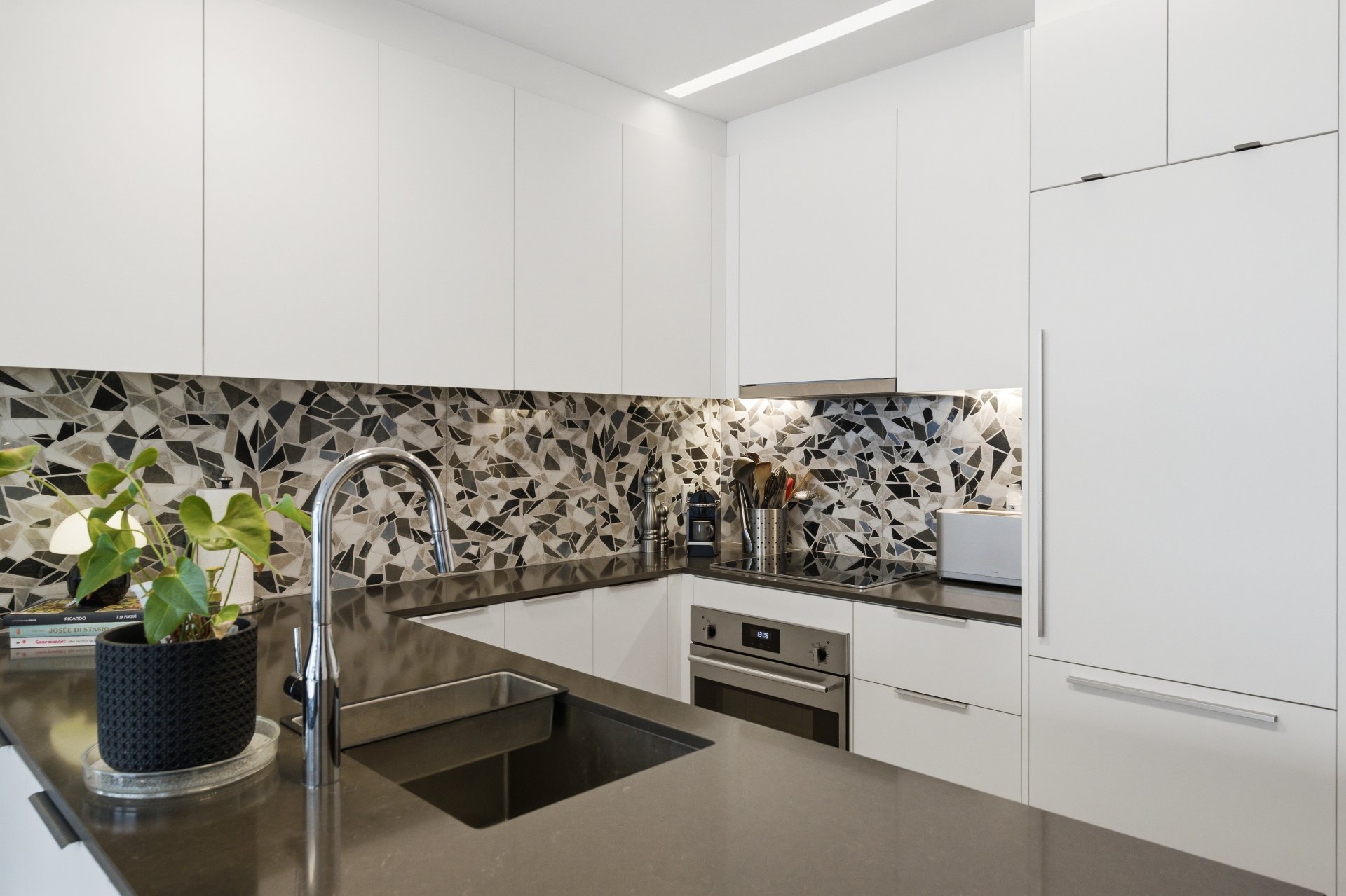 - Réfrigérateur, plaque de cuisson, four encastré, lave-vaisselle, laveuse, sécheuse