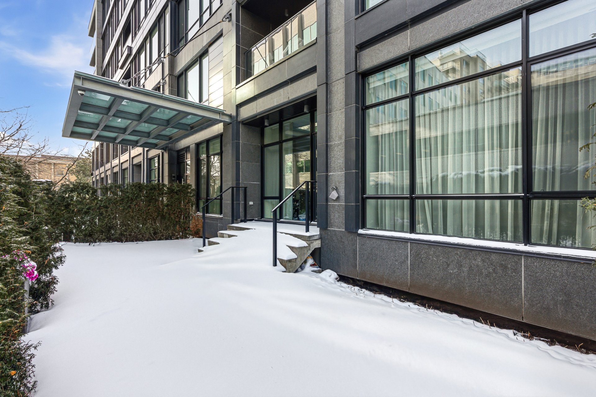 Bienvenue au 215 Redfern, un complexe résidentiel exquis niché sur une rue paisible à Westmount. Cette unité à aire ouverte offre 2 chambres et 2 salles de bain, dont une grande chambre principale avec salle de bain attenante, ainsi que plus de 1400pc d'espace de vie luxueux. Profitez de l'élégance des hauts plafonds, des planchers en bois franc et des fenêtres pleine hauteur qui remplissent le condo de lumière naturelle. L'unité dispose également d'un bureau et d'une terrasse privée, idéale pour se détendre et recevoir. Construit avec une insonorisation supérieure et une isolation murale de qualité, le 215 Redfern offre un refuge paisible en ville. Bénéficiez de services exceptionnels, notamment un service de portier et concierge 24/7, une piscine sur le toit de 40 pieds avec filtre UV, une salle de sport entièrement équipée, et un toit vert avec terrasses communes. À quelques pas des restaurants, magasins, parcs, écoles et transports en commun, le 215 Redfern offre un style de vie urbain raffiné.