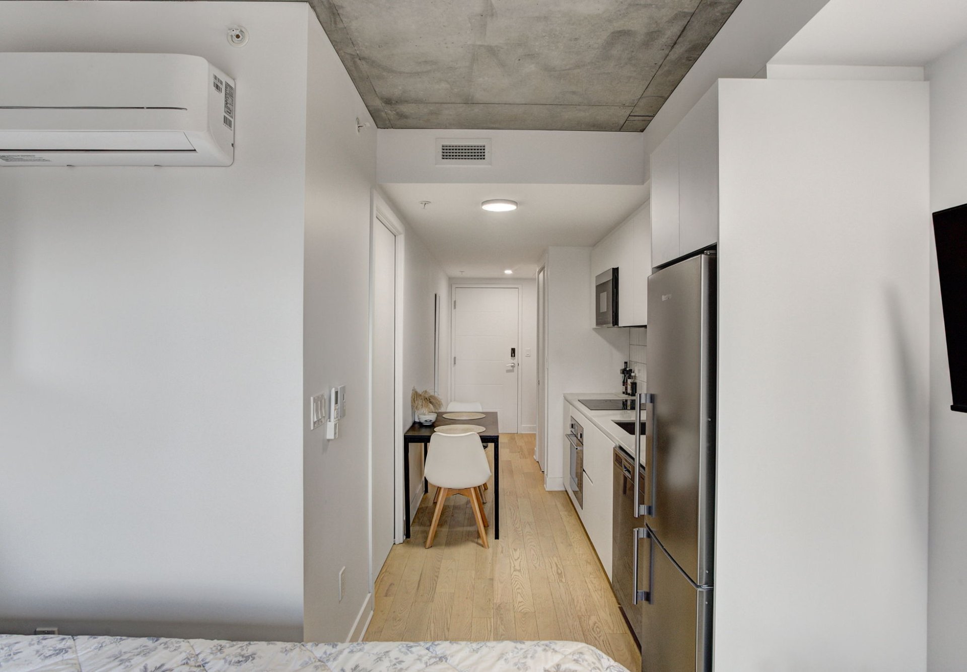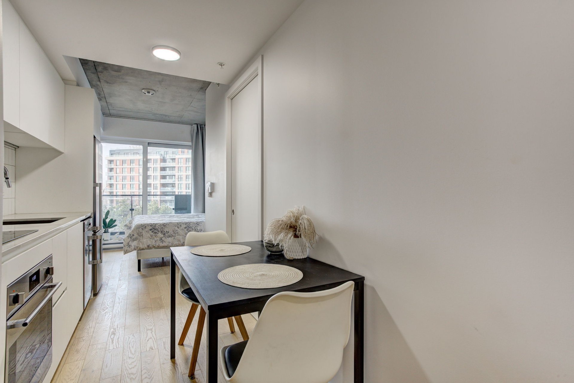 Studio inspiré d'un hôtel dans WELLINGTON Sur Le Bassin, où la sérénité de la nature se marie harmonieusement avec l'énergie vibrante de la ville.Espace soigneusement conçu,baigné de lumière naturelle,porte vitrée du sol au plafond s'ouvrant sur balcon privé offrant vues jardin,eau & ville.Cuisine entièrement équipée+rangement,espace CAC/Salon suff. spacieux pour bureau,grande SDB avec douche en verre + buanderie.Commodités haut de gamme comprennent terrasse sur le toit,lounge&table de billard,BBQs,piscine extérieure et vue panoramique,salle d´éxercise ultramoderne,sécurité 24h/24.Au coeur de Griffintown,quartier recherché à deux pas de tout!