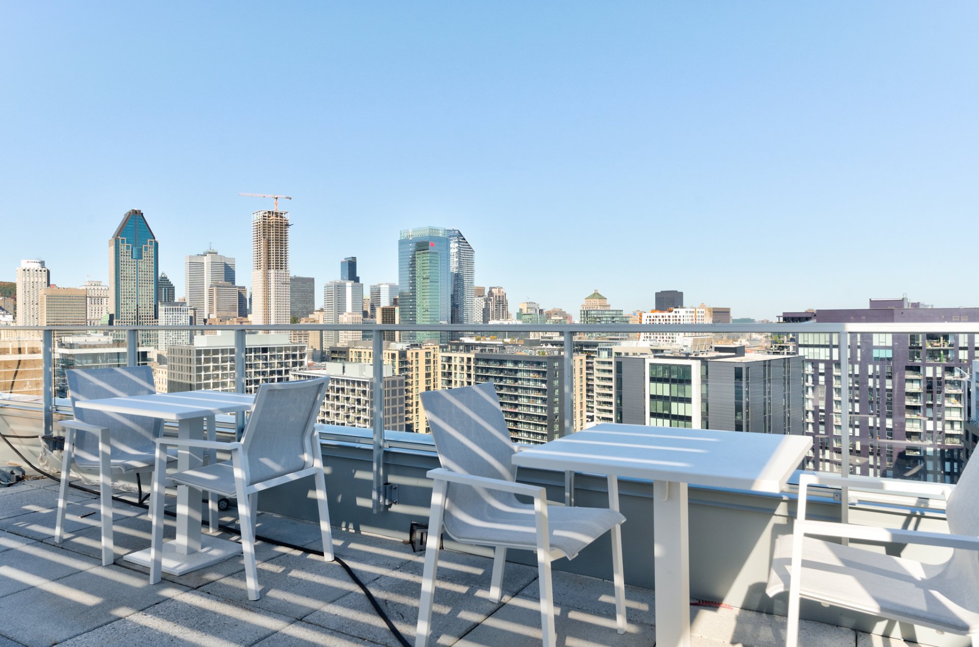 * Les résidents ont accès à une fabuleuse piscine sur le toit, un chalet urbain, une cuisine extérieure, un coin salon avec barbecues, cheminée et pergola, et une terrasse luxueusement meublée avec vue panoramique sur le canal, la ville et les montagnes.
