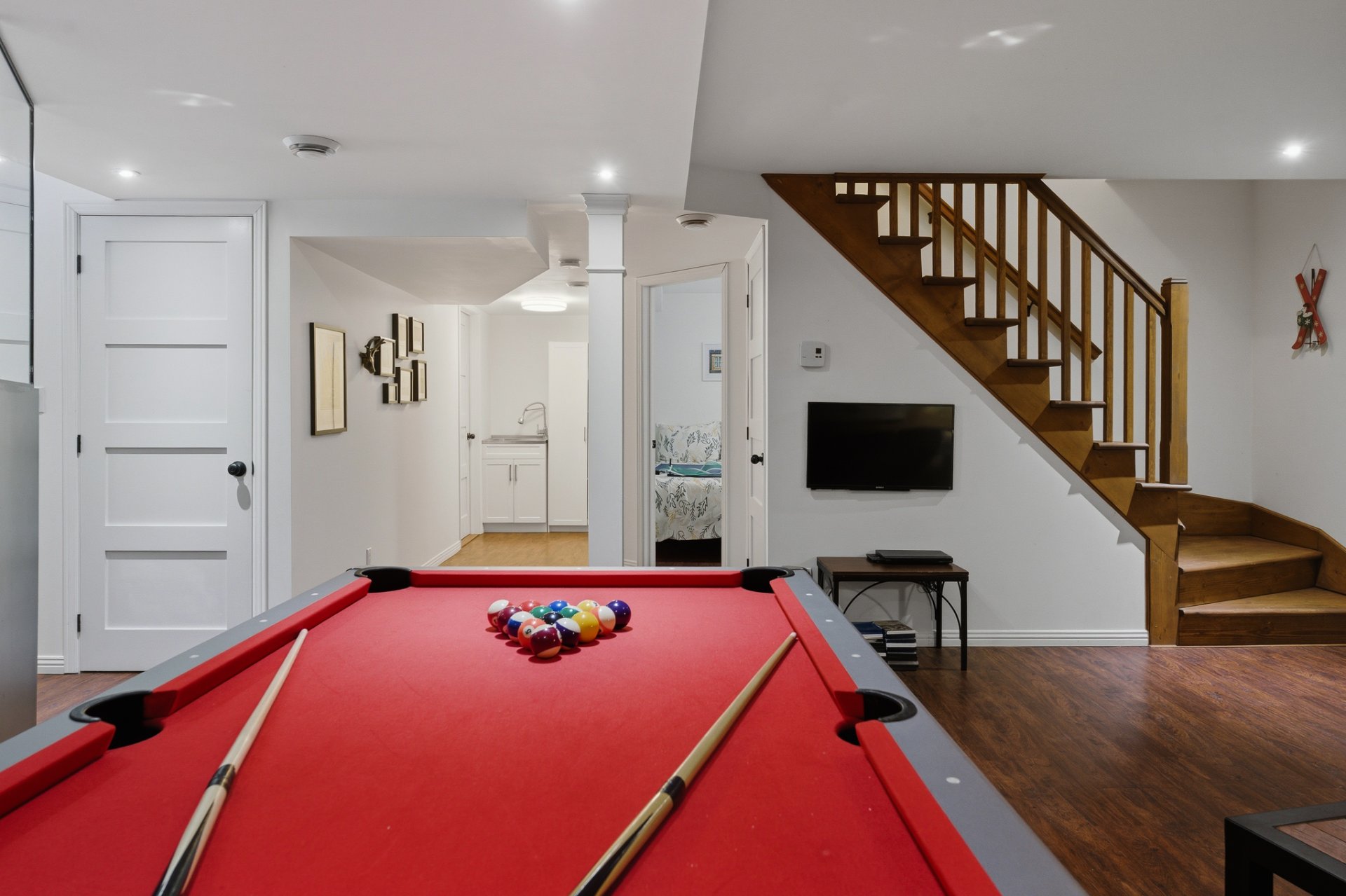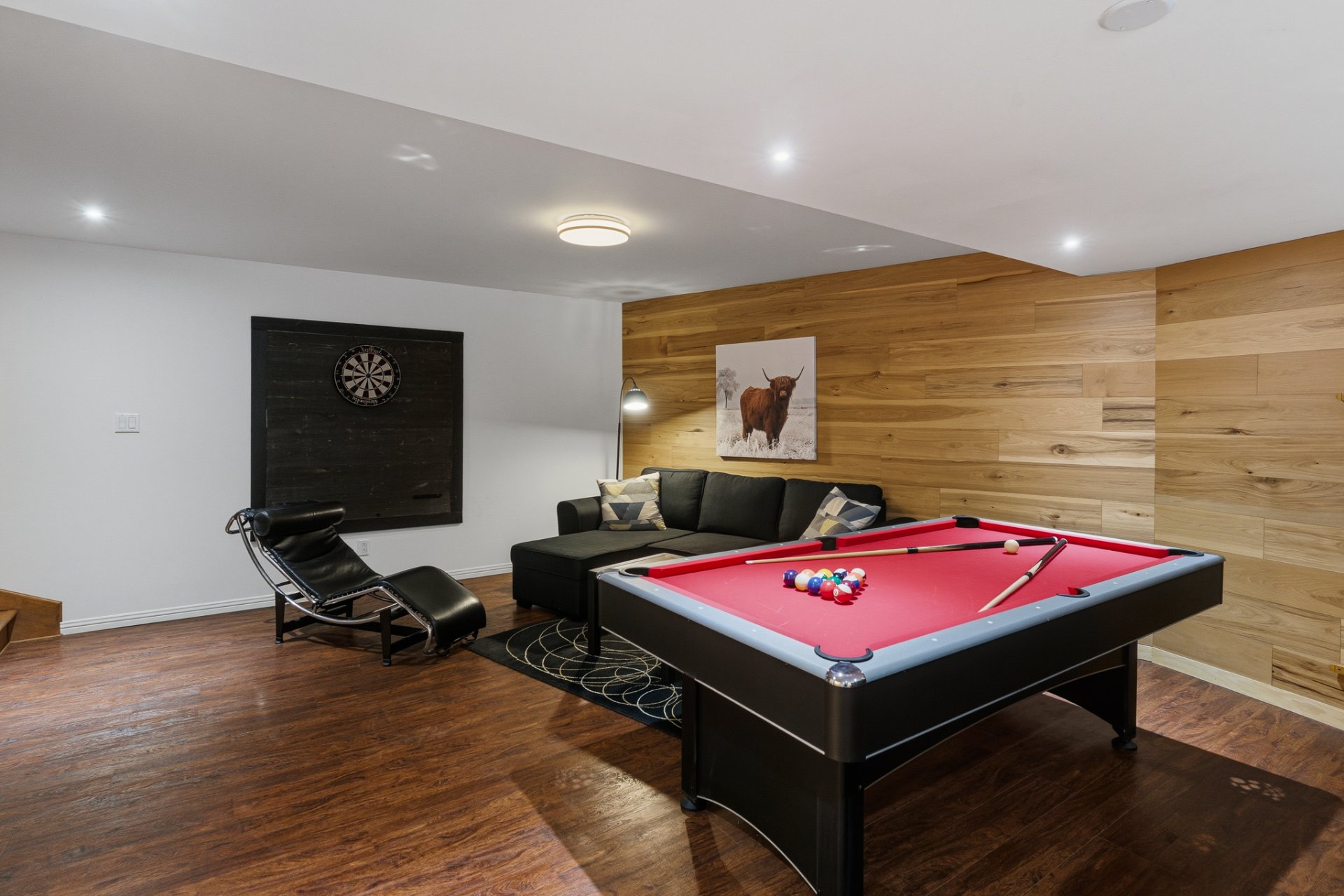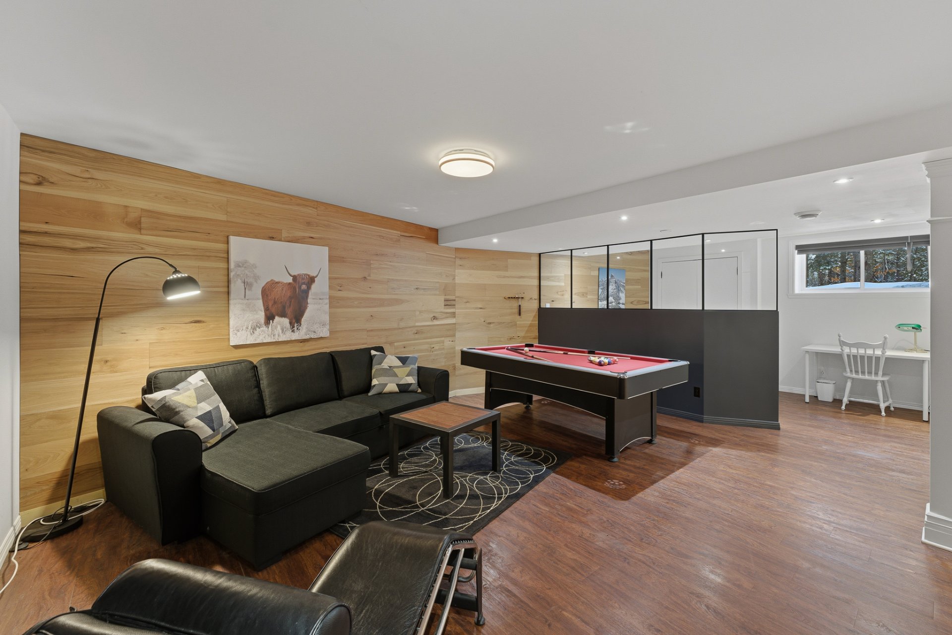 Le sous-sol entièrement aménagé ajoute un espace familial confortable, propice aux moments partagés, avec salle de jeux, chambres supplémentaires et salle de bain complète.