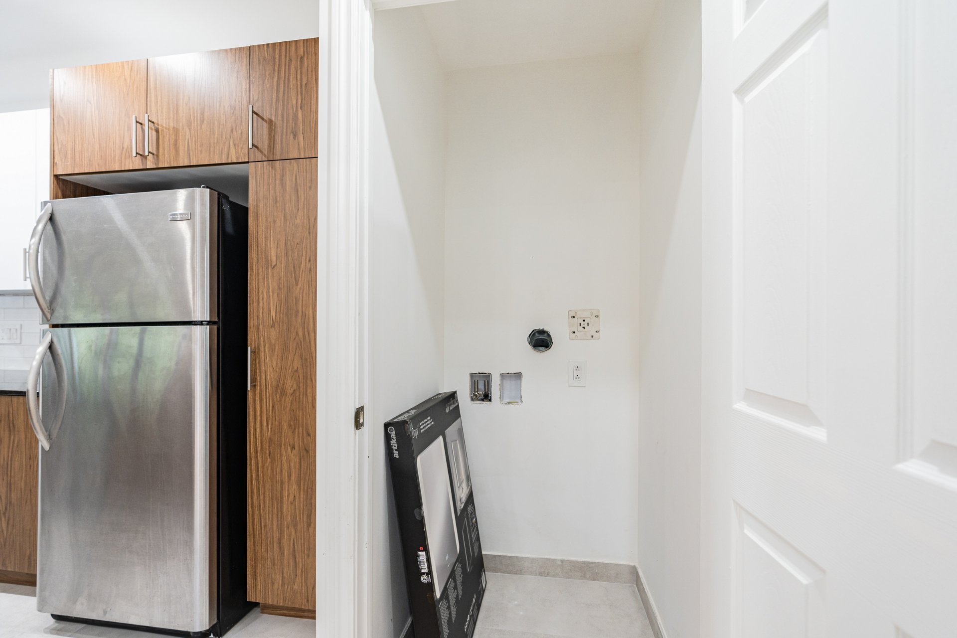 - Réfrigérateur, cuisinière, lave-vaisselle, laveuse/sécheuse, climatisation murale, stores.